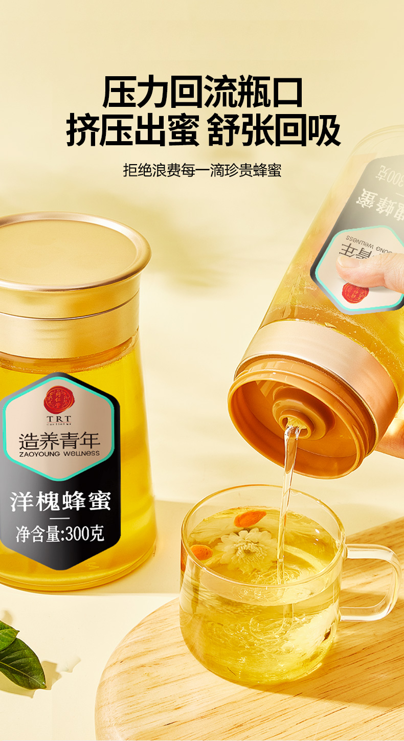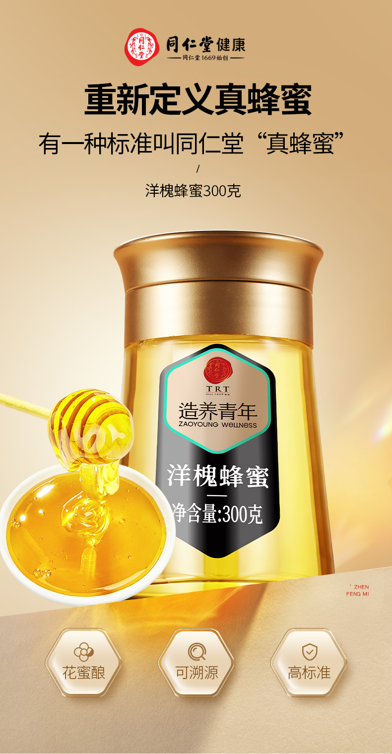【正宗同仁堂品牌】北京同仁堂 洋槐蜂蜜300克 漏斗型瓶装 原料纯粹 拒绝添加 便携易使用SY