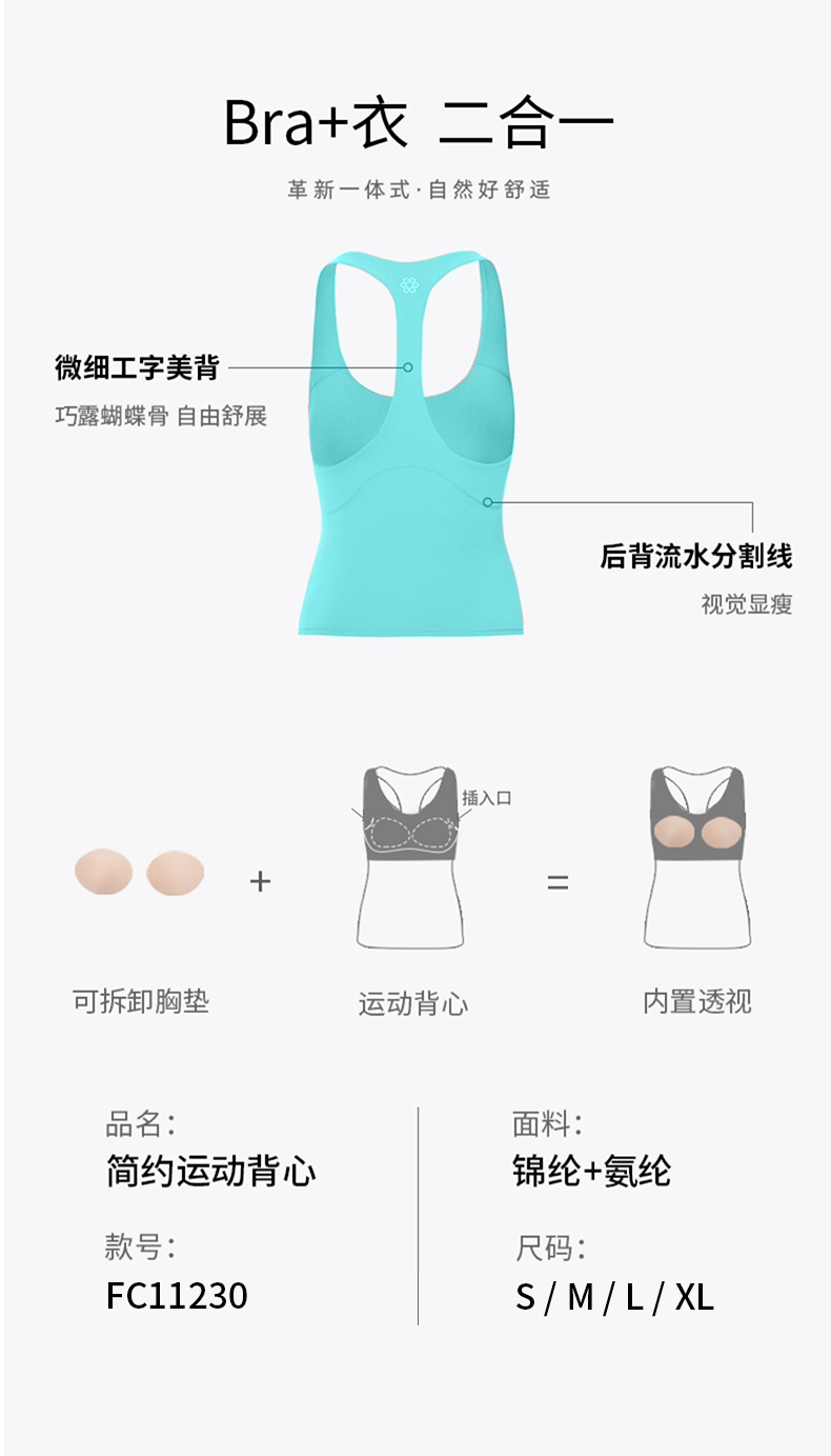 凡圣瑜伽裸感弹力紧身吊带文胸防震健身运动背心 FC11230