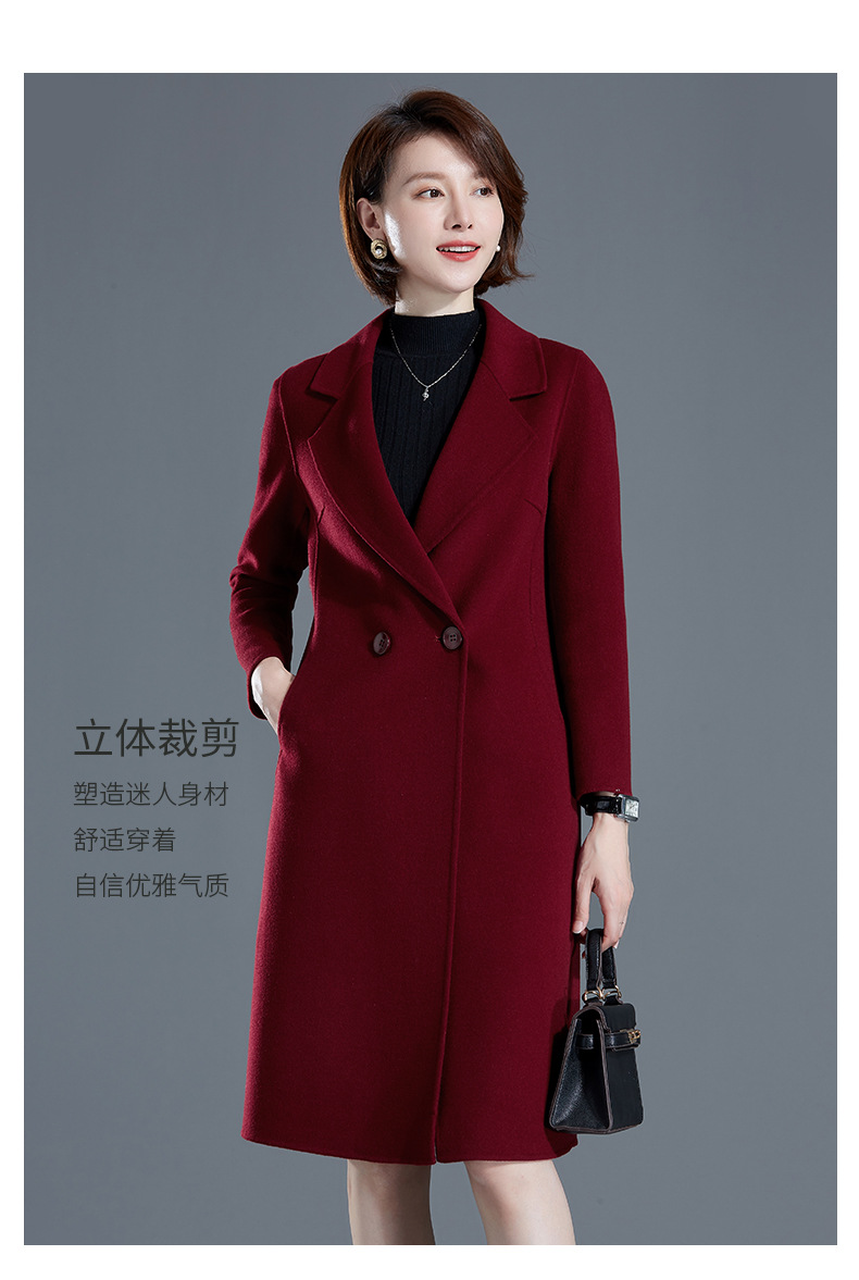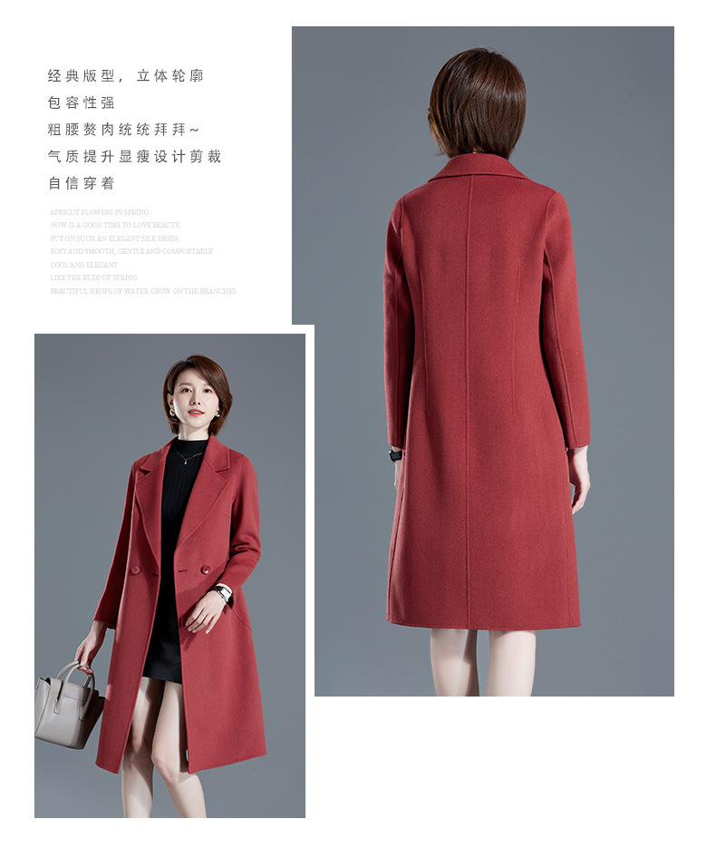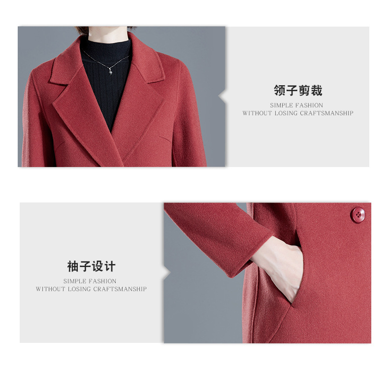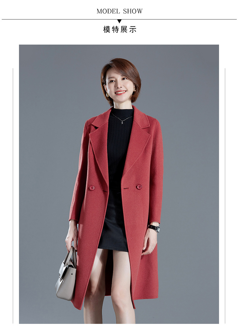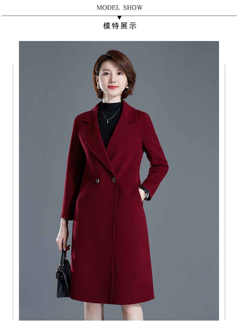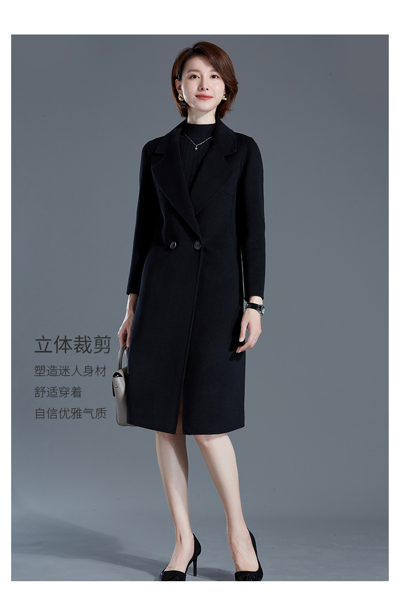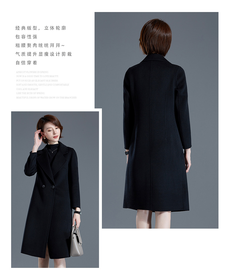 秋冬西装式呢大衣双面羊绒中长款气质毛呢外套KQ-215105