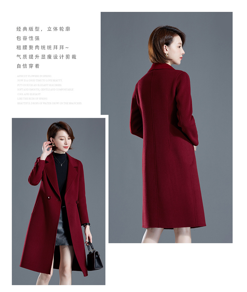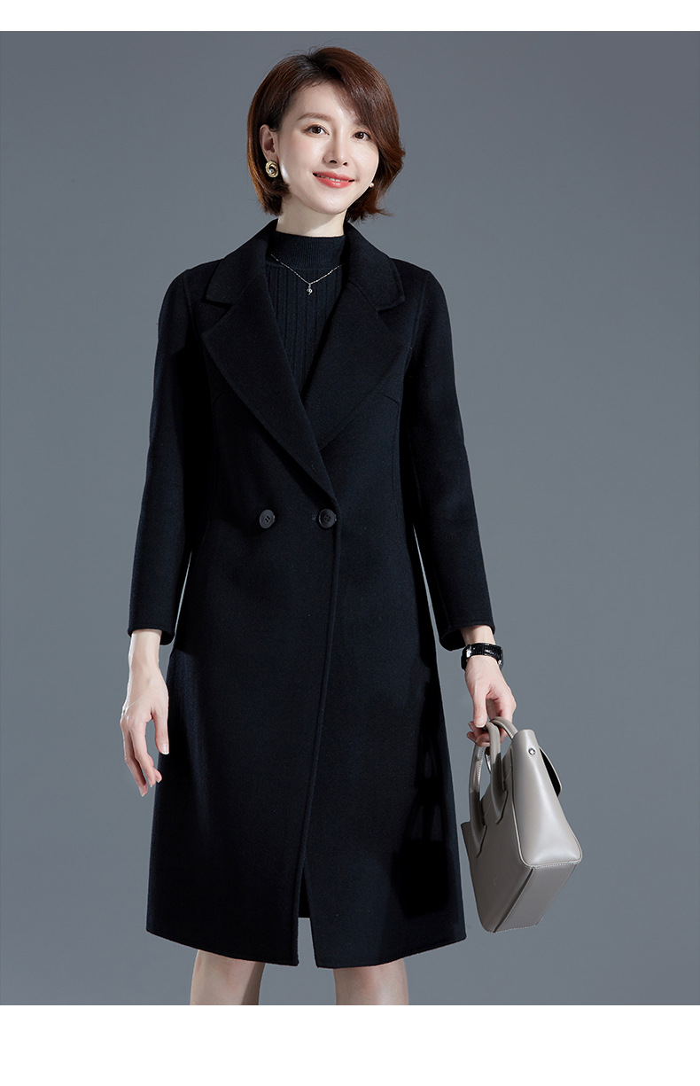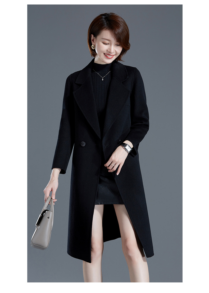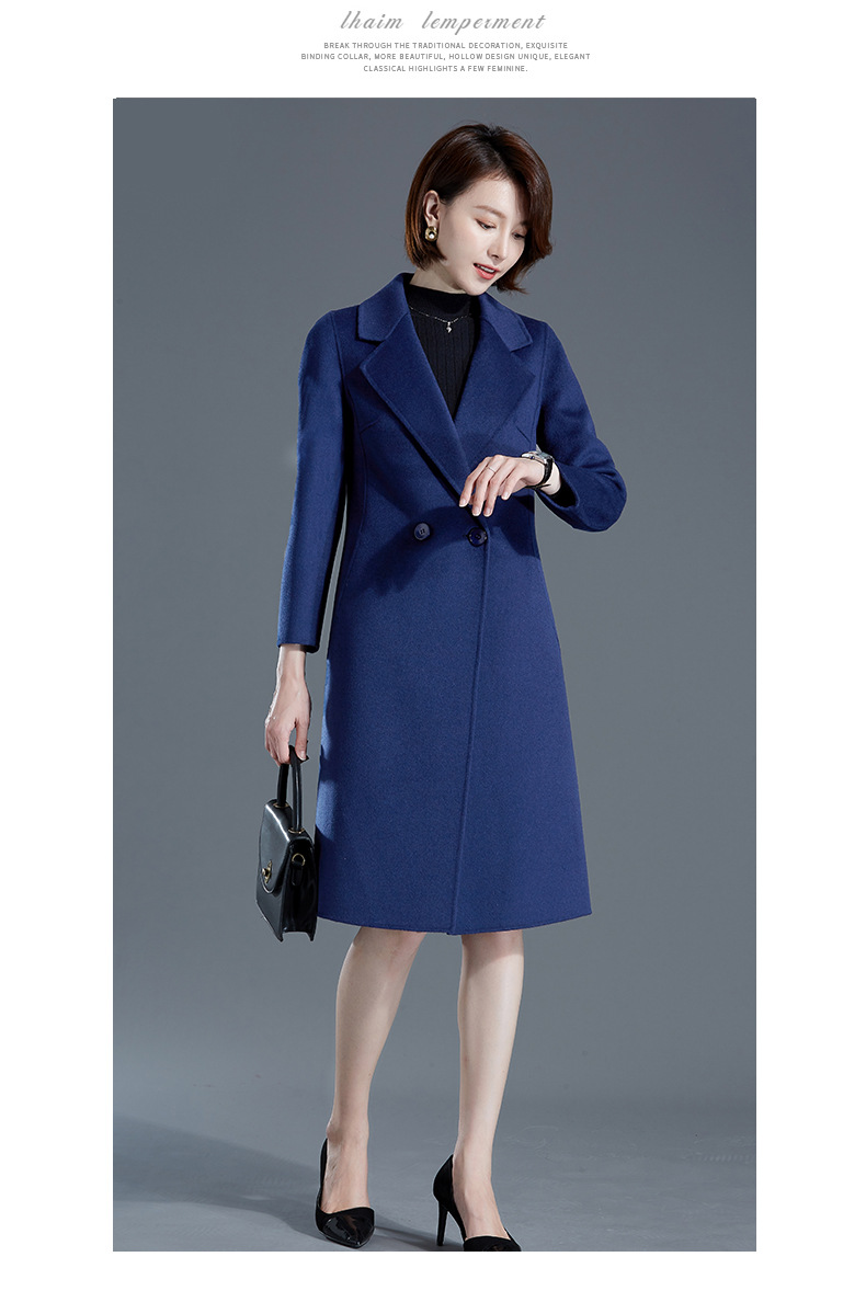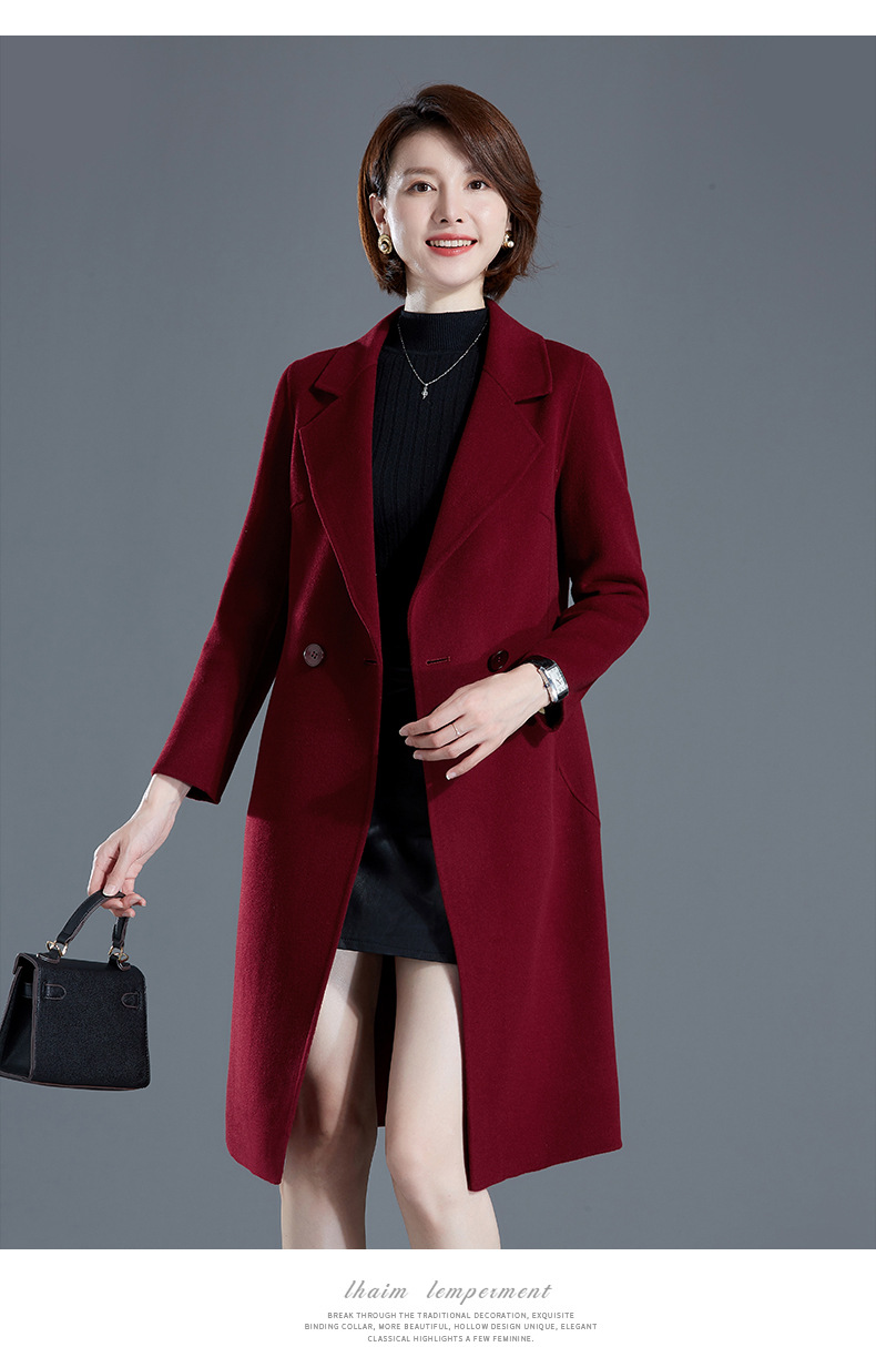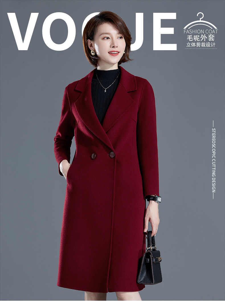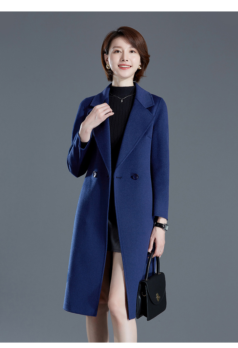秋冬西装式呢大衣双面羊绒中长款气质毛呢外套KQ-215105