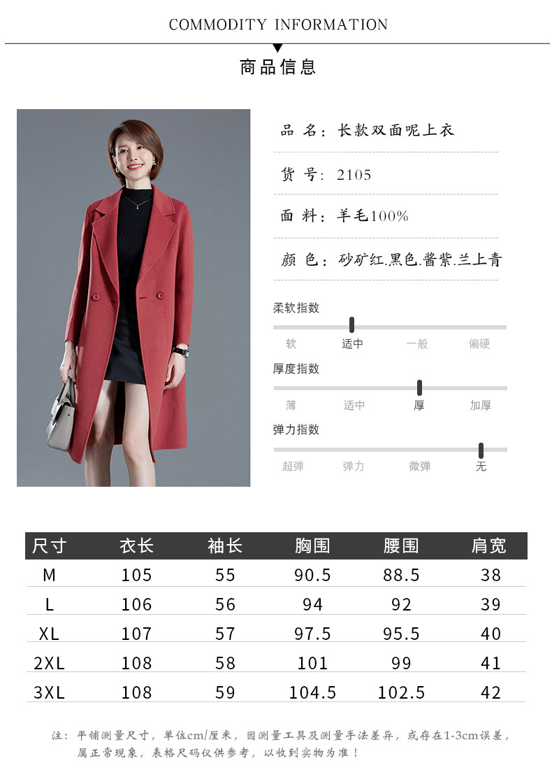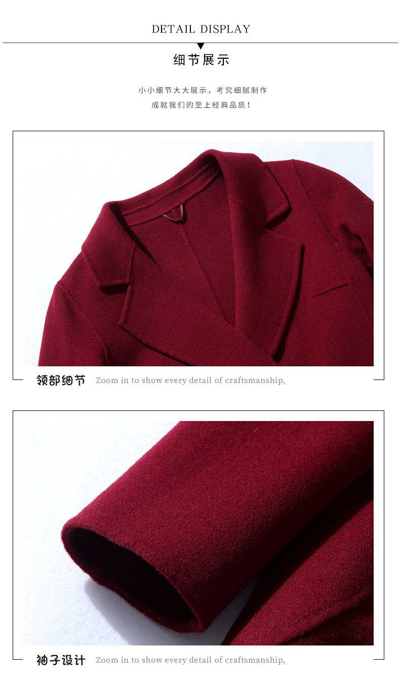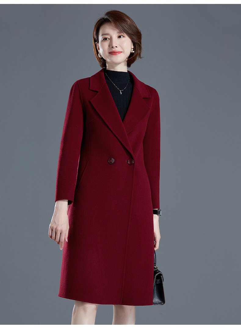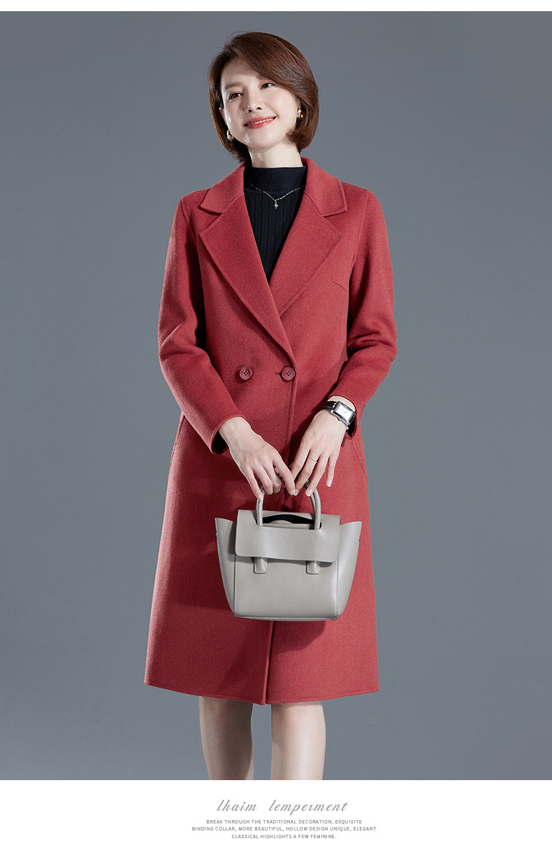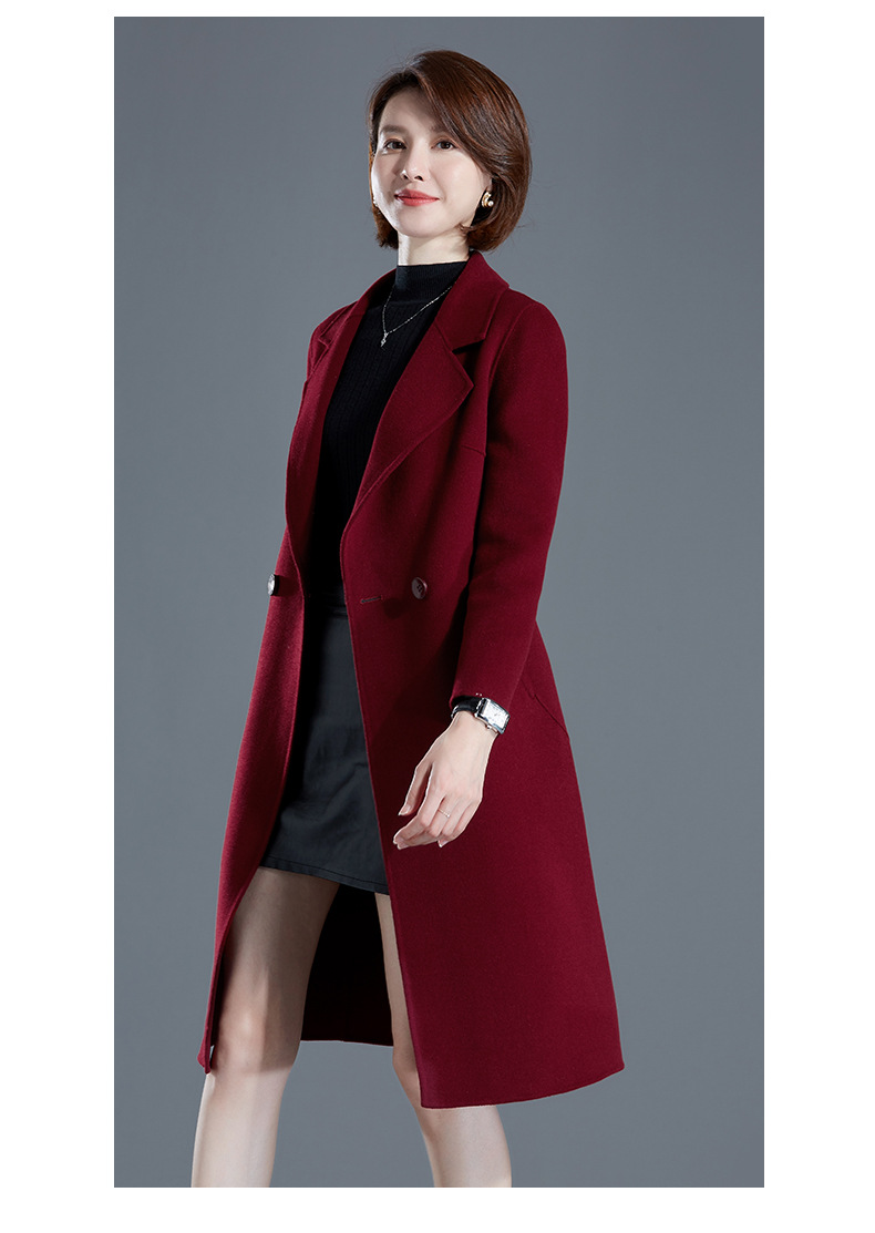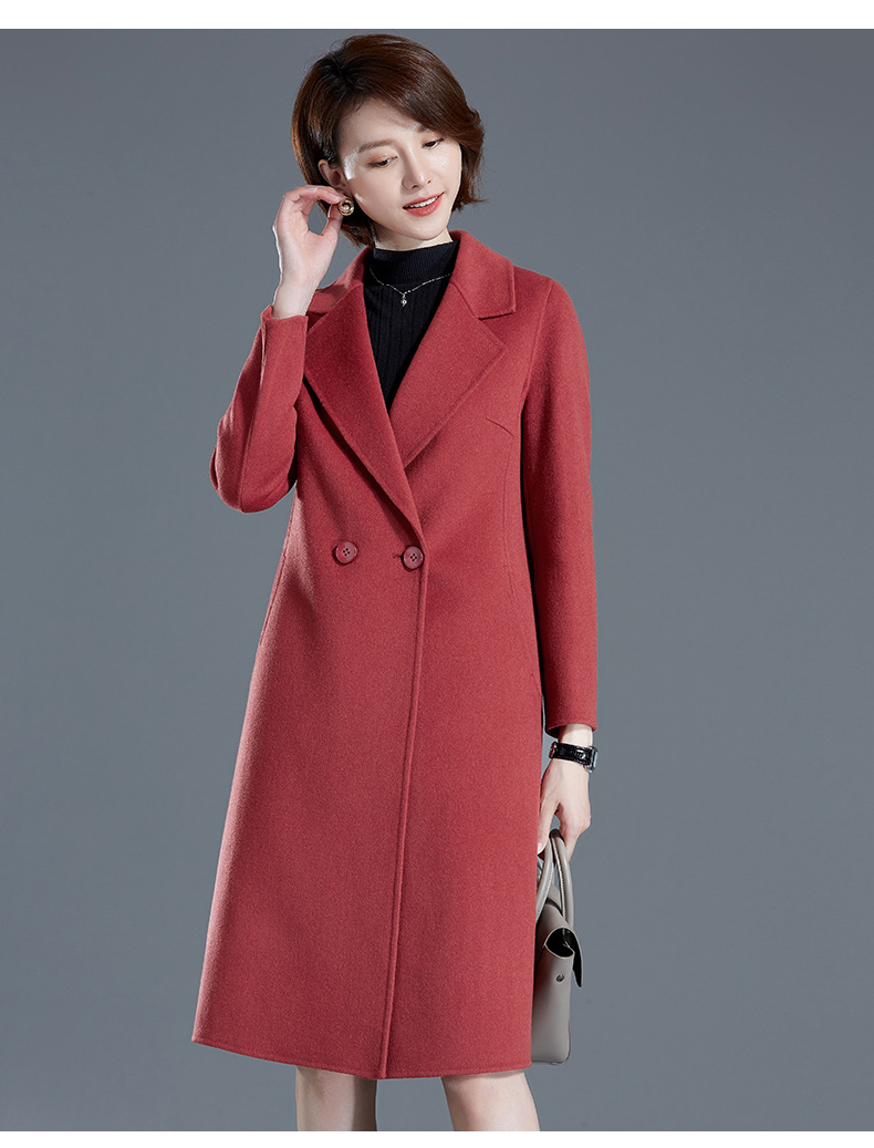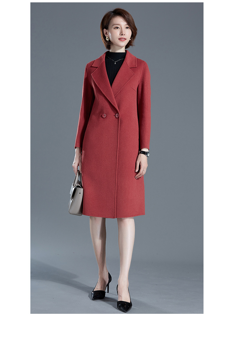 秋冬西装式呢大衣双面羊绒中长款气质毛呢外套KQ-215105