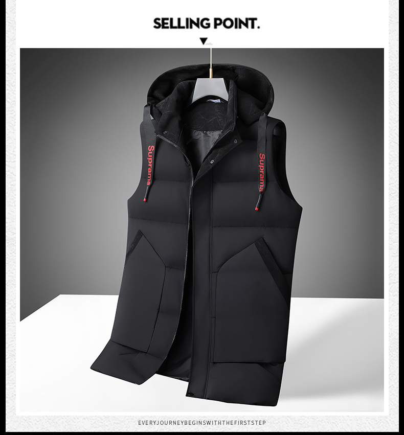 【可拆卸帽】【新款DB】大依优型大码男装连帽棉服马甲中长款棉衣外套棉加肥加大上衣男士背心