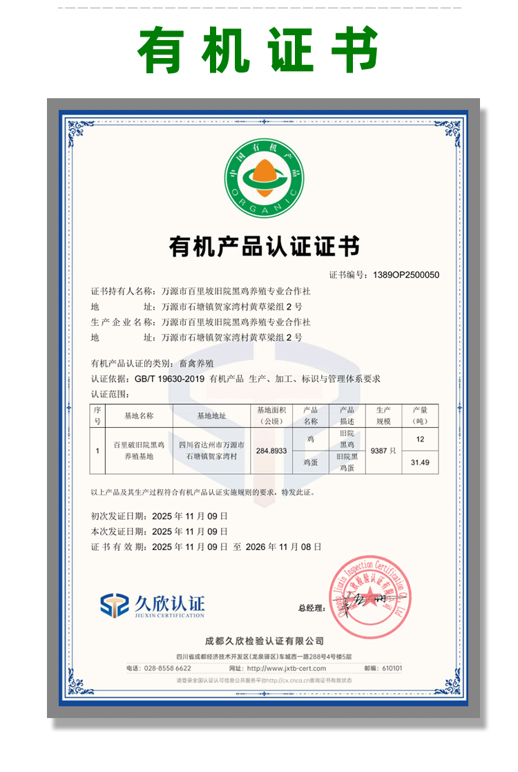 主要经营:富硒旧院黑鸡、富硒旧院黑鸡蛋、富硒土特产(蜂蜜、茶叶、岩豆、野生菌类等)。本店为自产自销,没有中间商赚差价,自己拥有12000亩放养基地,正宗纯粮青草饲喂,产品通过国家有机产品认证。