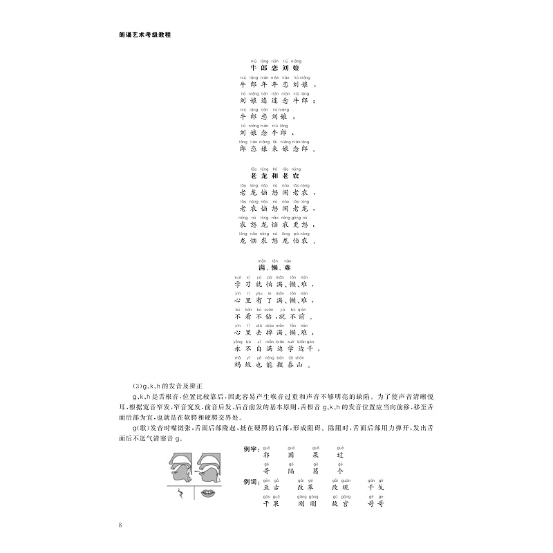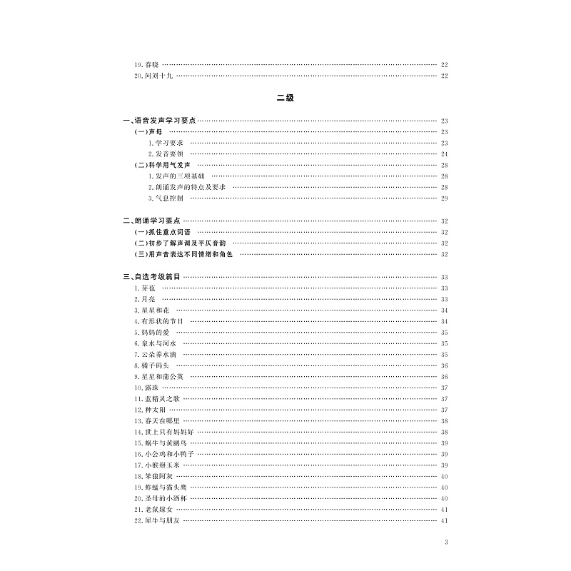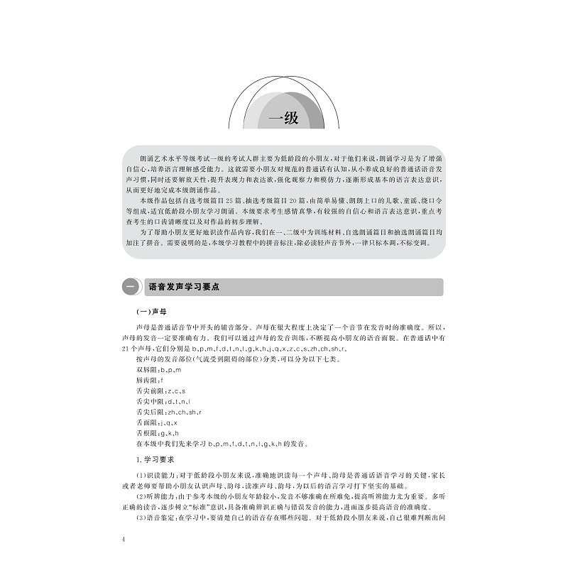 《朗诵艺术水平等级考试专用教材》是由浙江省朗诵协会牵头,汇集浙江省内语言艺术专业院校师资及省广电名师名嘴,从教育的视角出发建立的一套权威、实用、科学的朗诵审美体系,是一套规范标准、言浅意深的朗诵艺术考级教材。全书主要包括“大纲”“语音发声学习要点”“朗诵学习要点”和“自选考级篇目”“抽选考级篇目”五部分内容。其中,“考级篇目”中的200篇古代诗文和250篇现代诗文,由浅入深、循序渐进地站在艺术规律的高度,对推广普通话、普及朗诵艺术做出实践探索,并针对浙江方言发音方面存在的问题进行了梳理和解答。