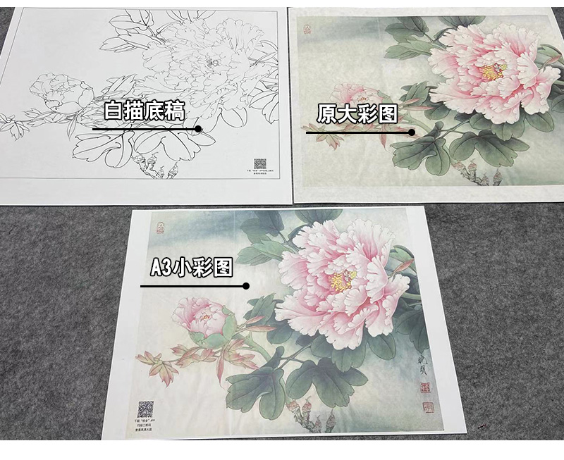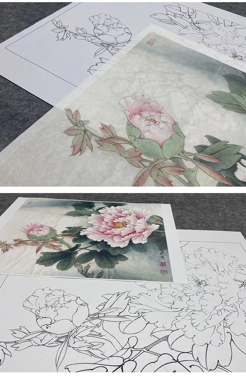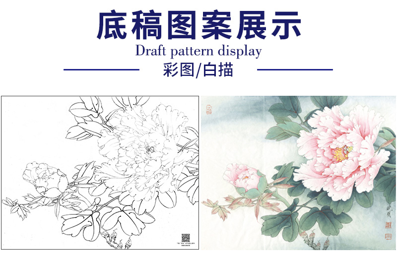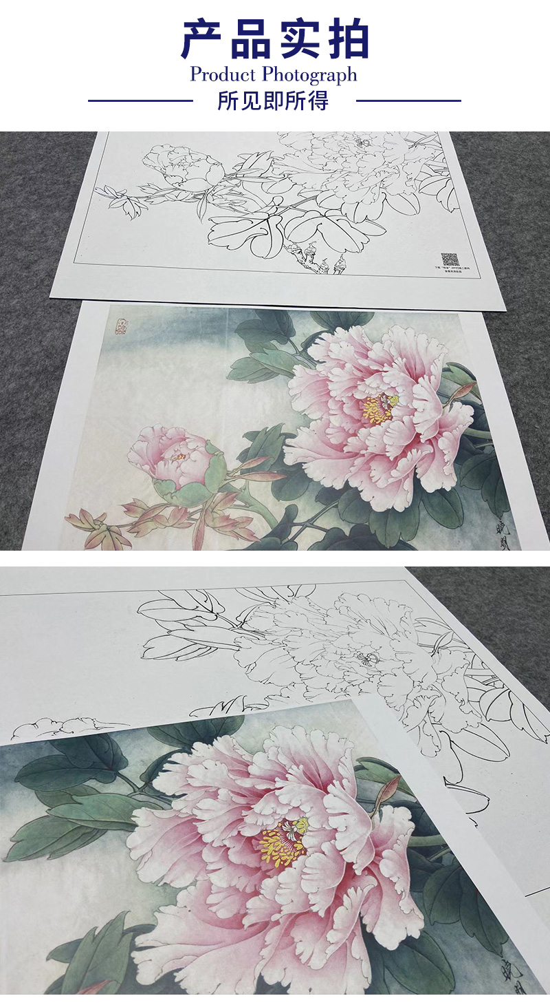 【大彩图】李晓明工笔画白描底稿小品《重绘赵粉》牡丹花鸟线稿K024