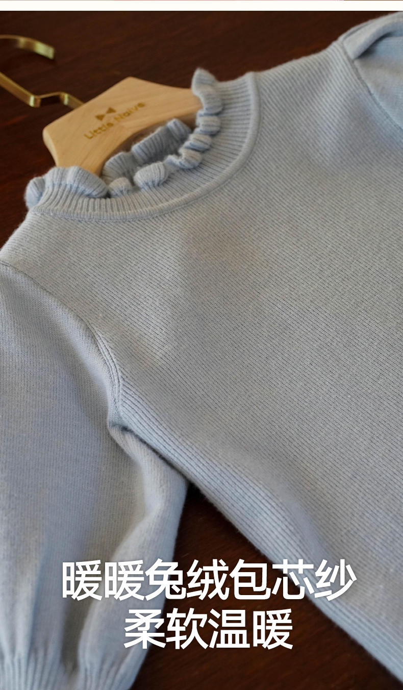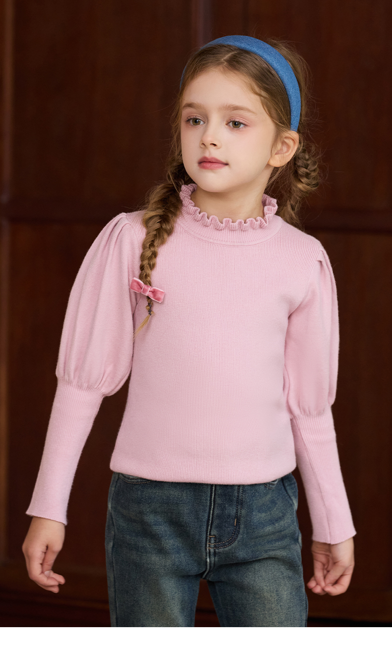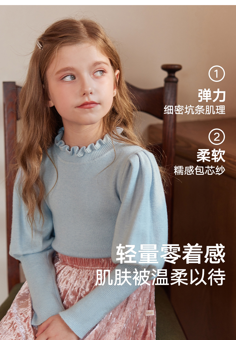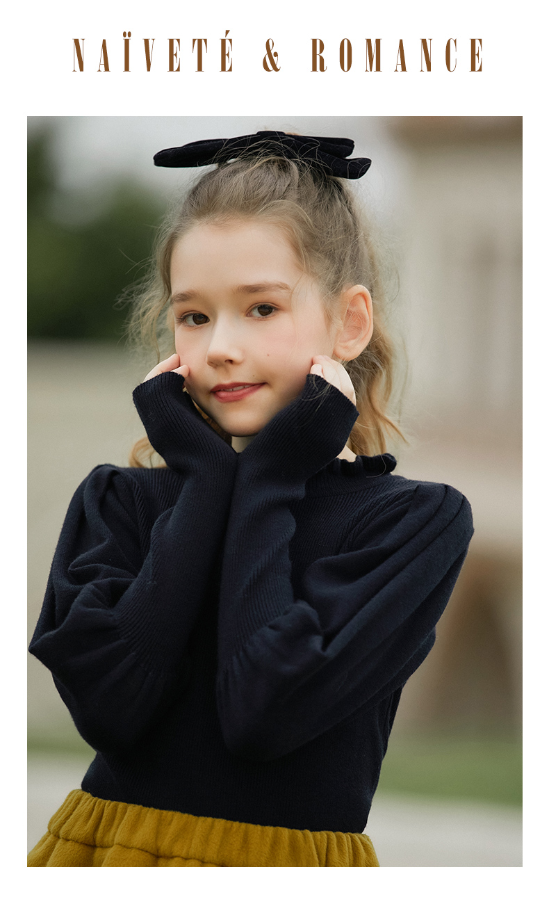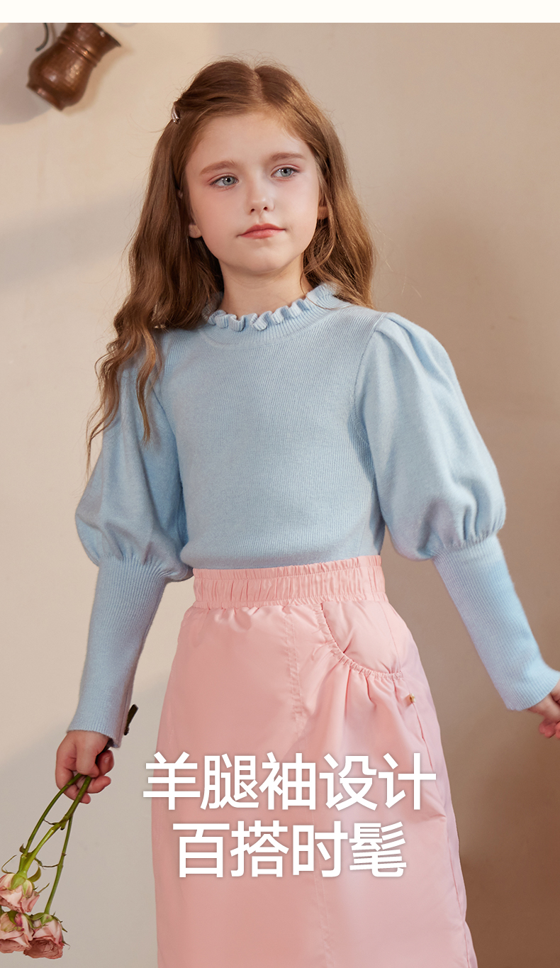 LittleNaive女童泡泡袖打底针织衫儿童甜美时髦中大童毛衣秋冬季