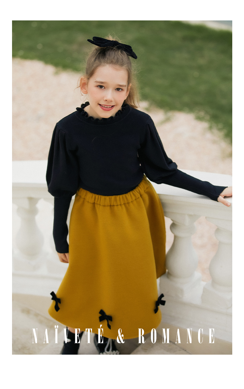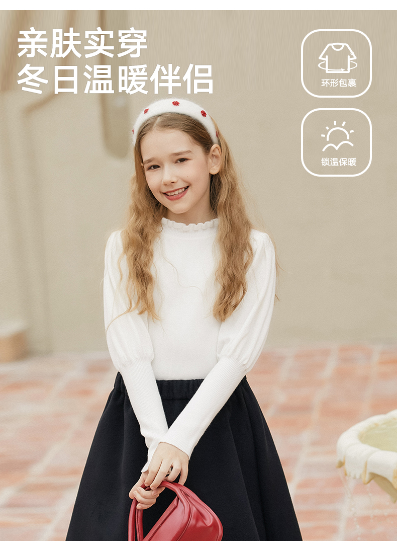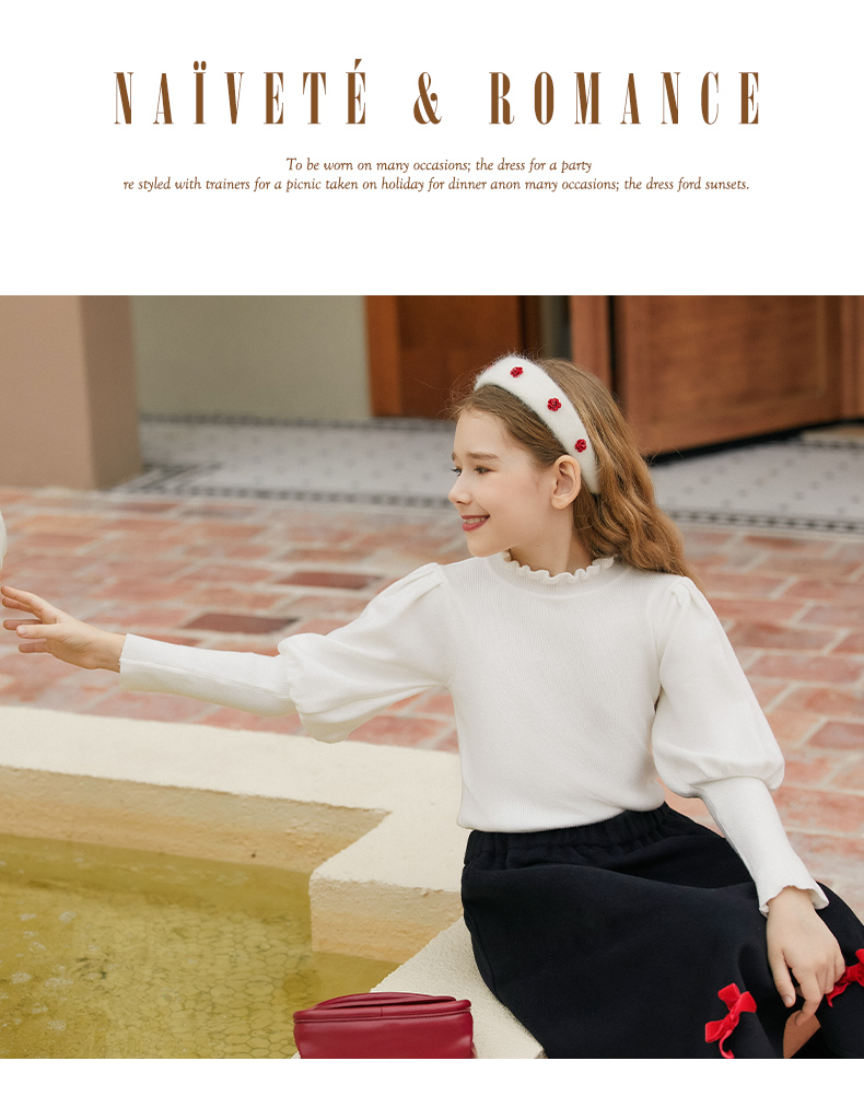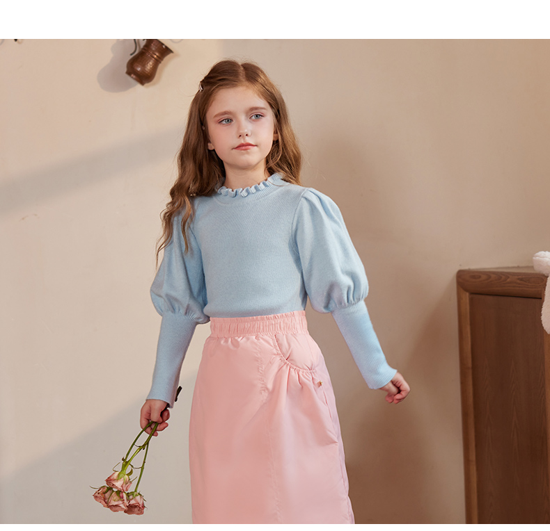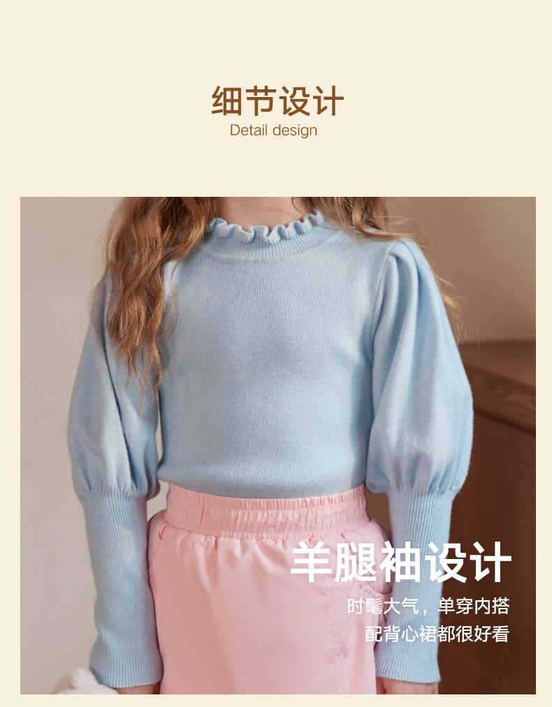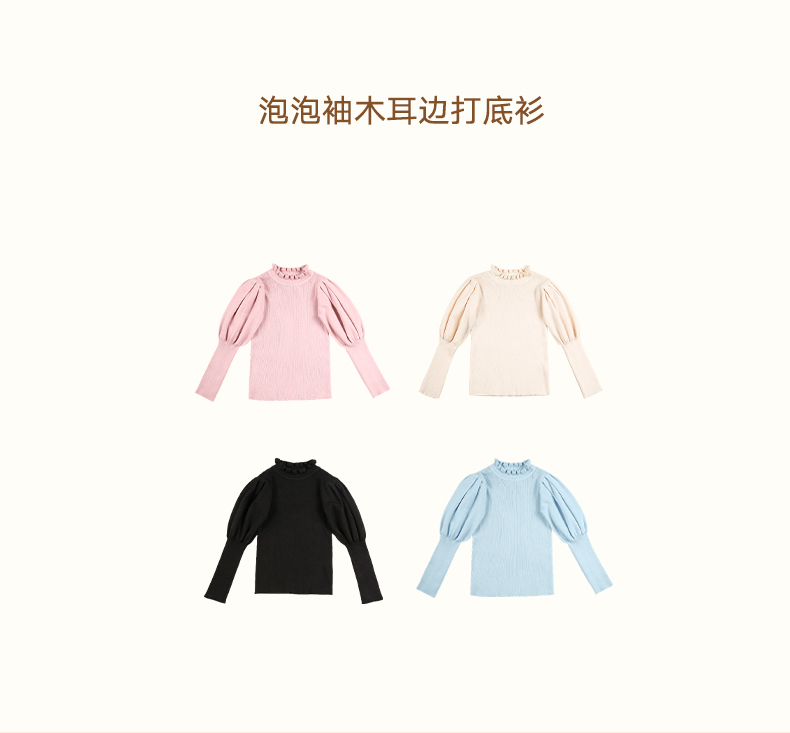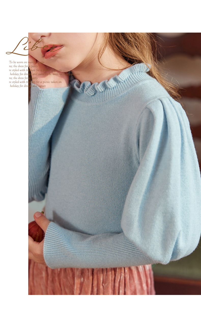 LittleNaive女童泡泡袖打底针织衫儿童甜美时髦中大童毛衣秋冬季