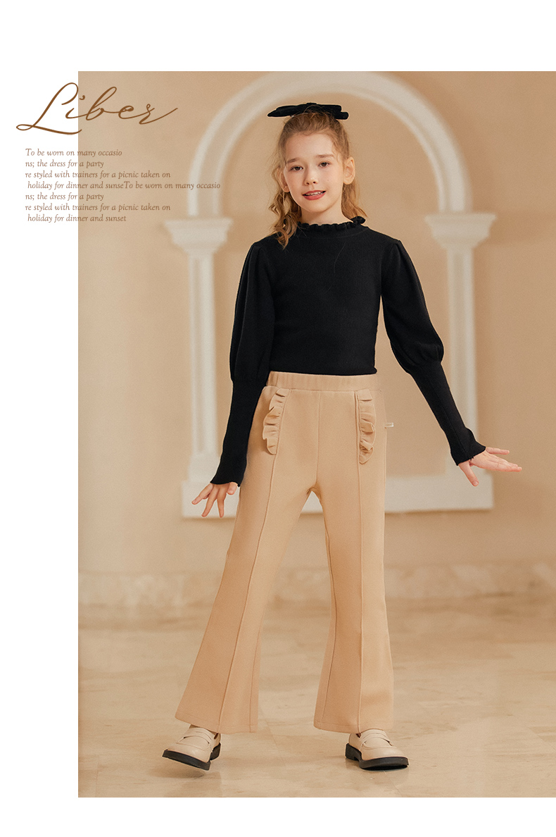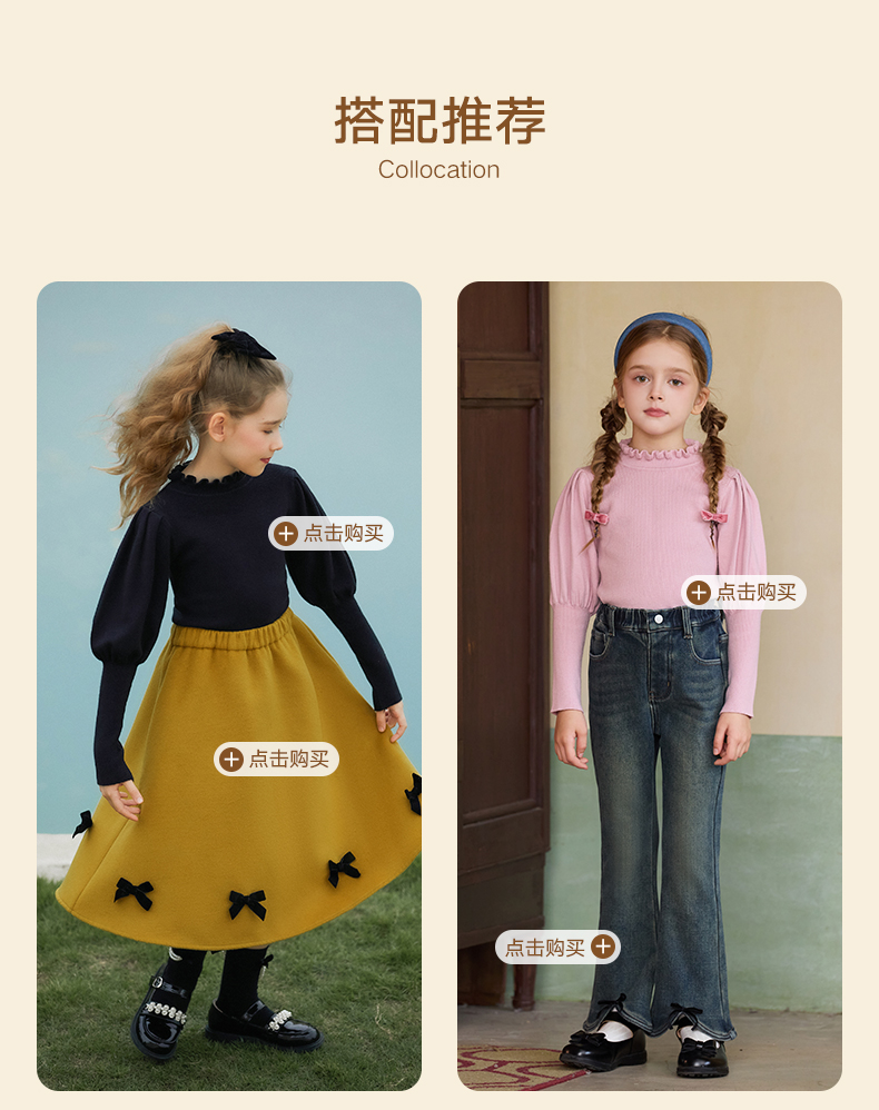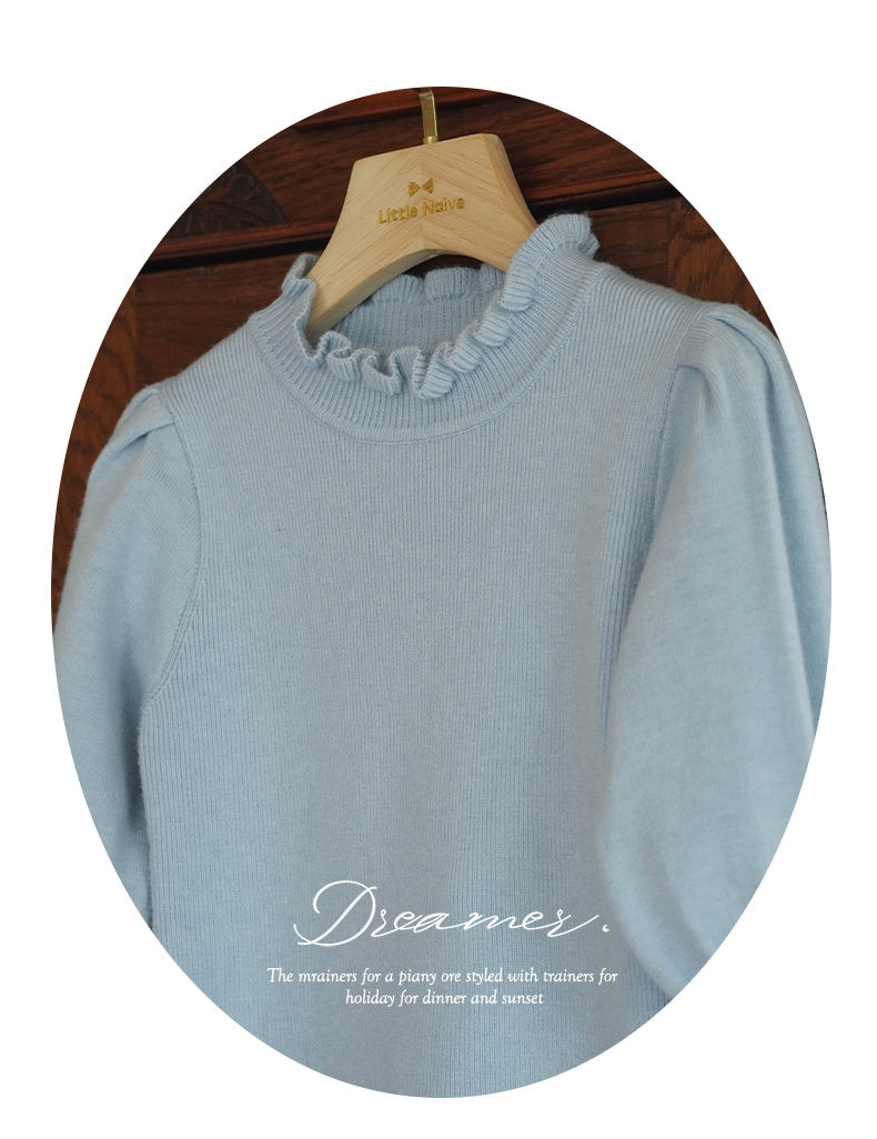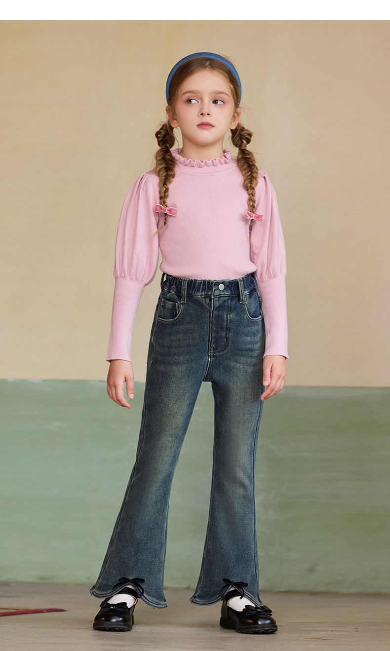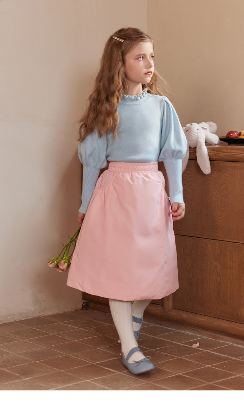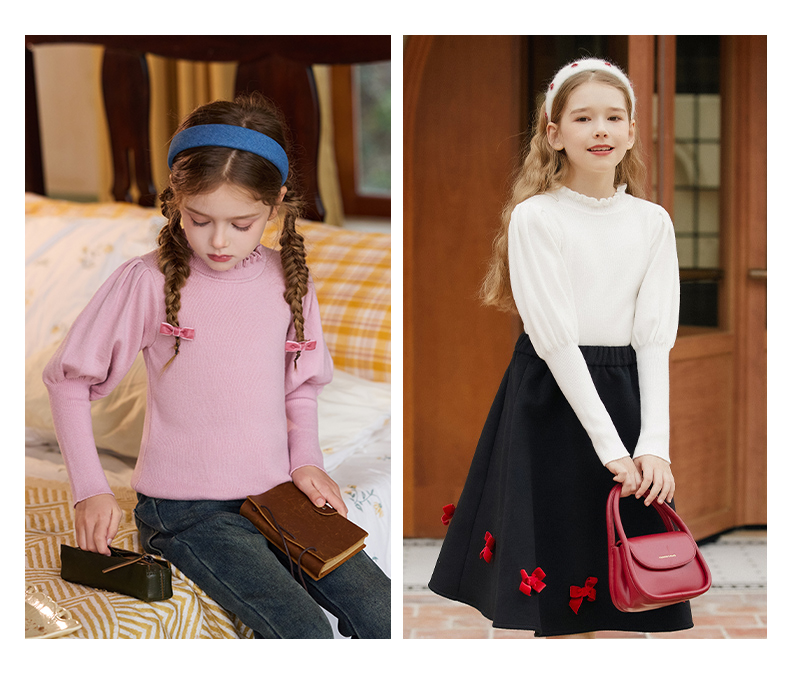 LittleNaive女童泡泡袖打底针织衫儿童甜美时髦中大童毛衣秋冬季