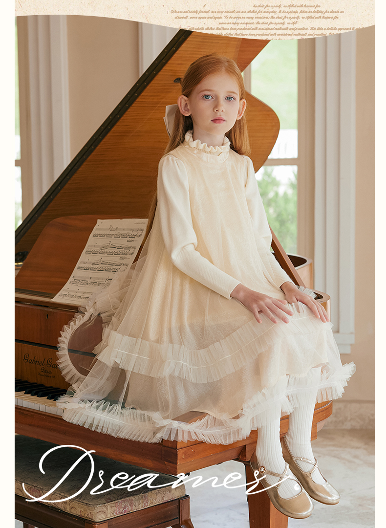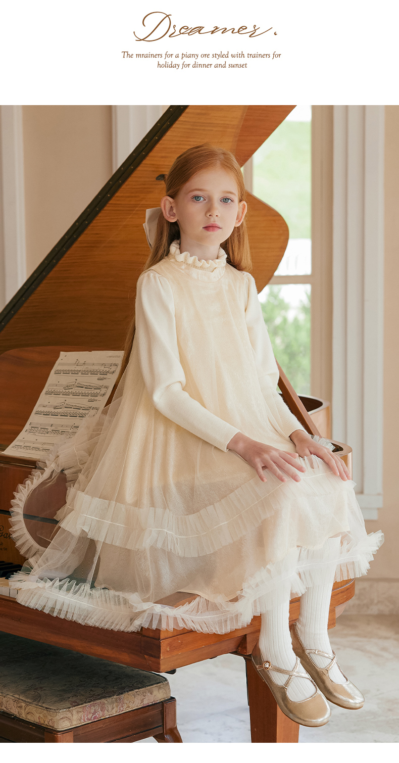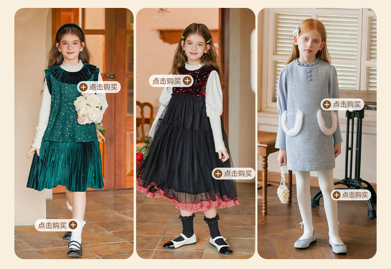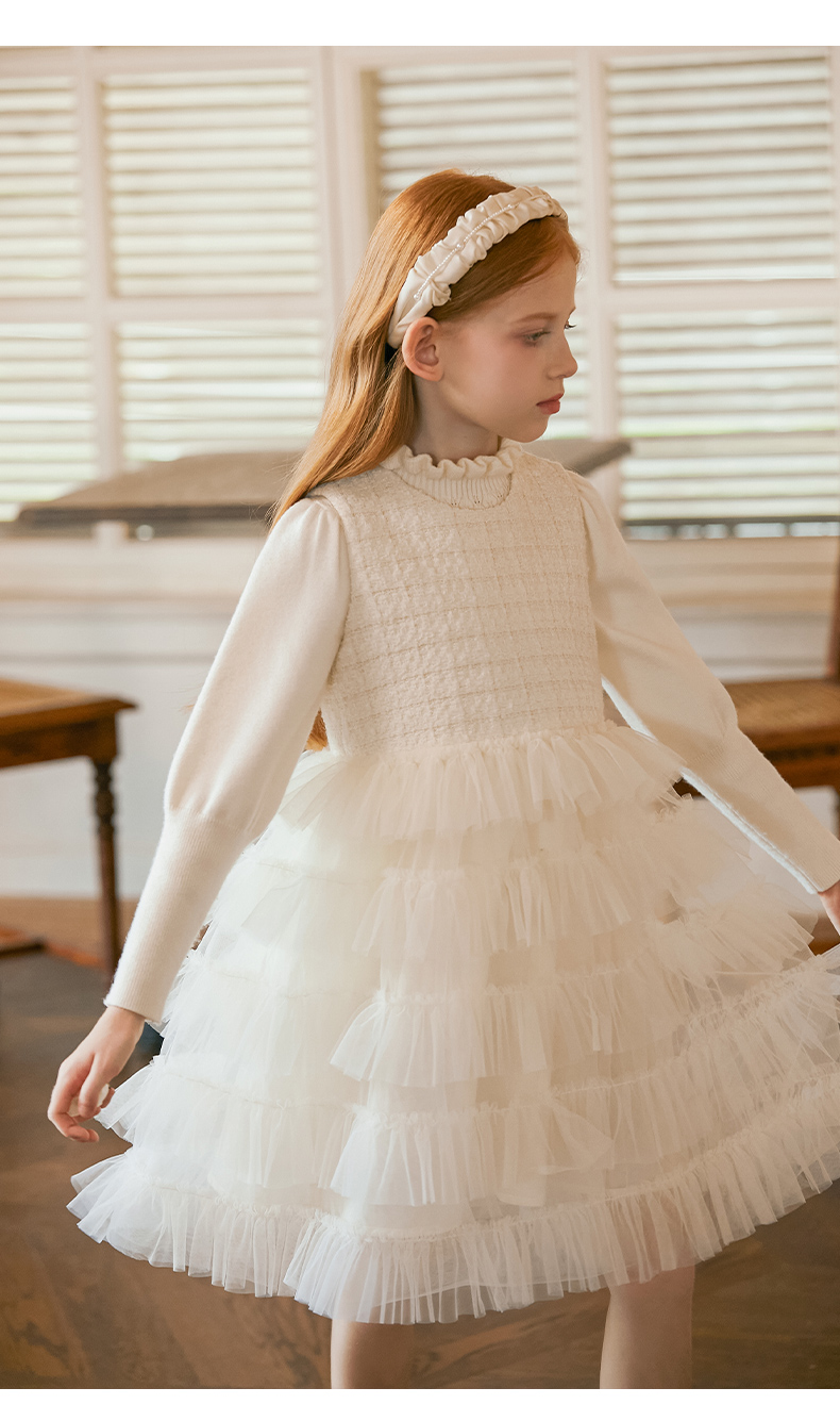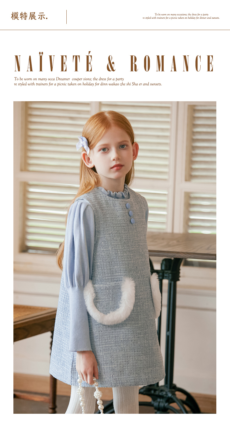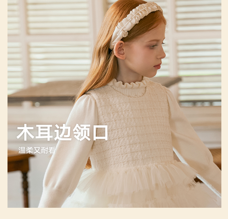 LittleNaive女童泡泡袖打底针织衫儿童甜美时髦中大童毛衣秋冬季