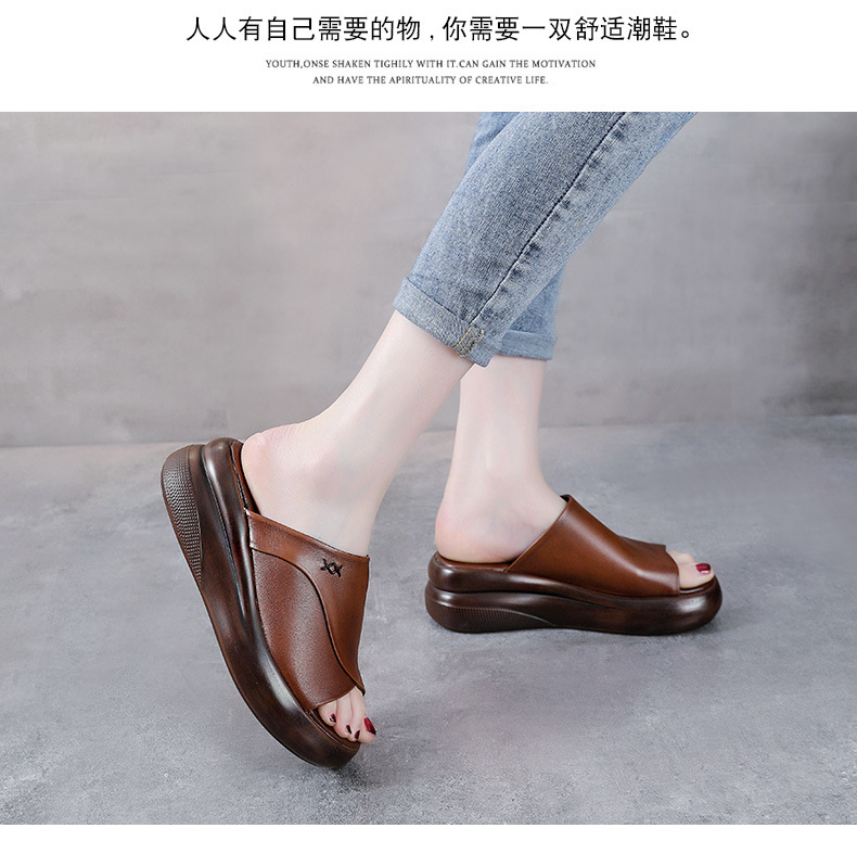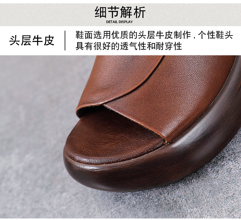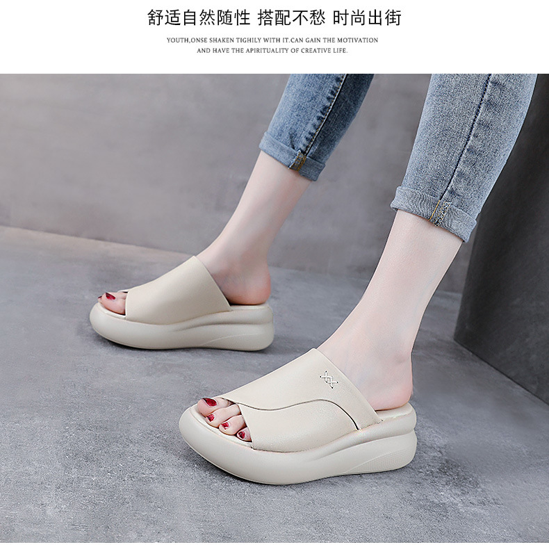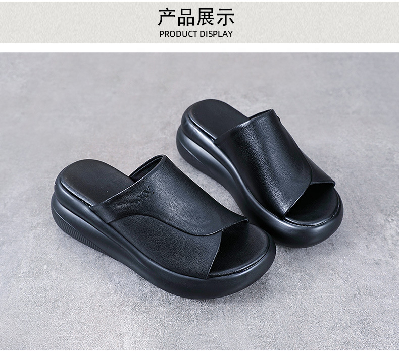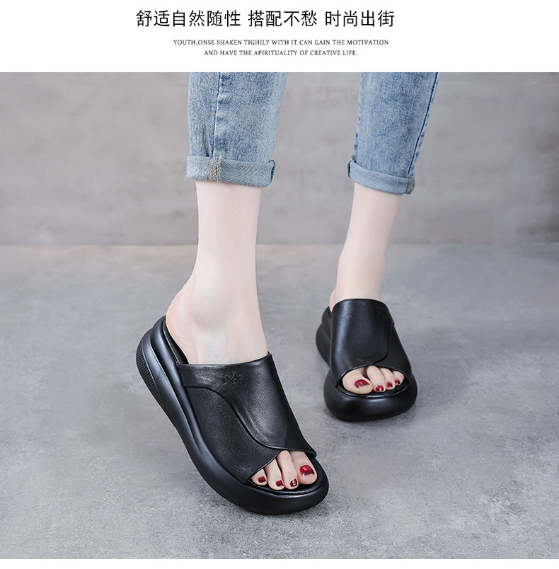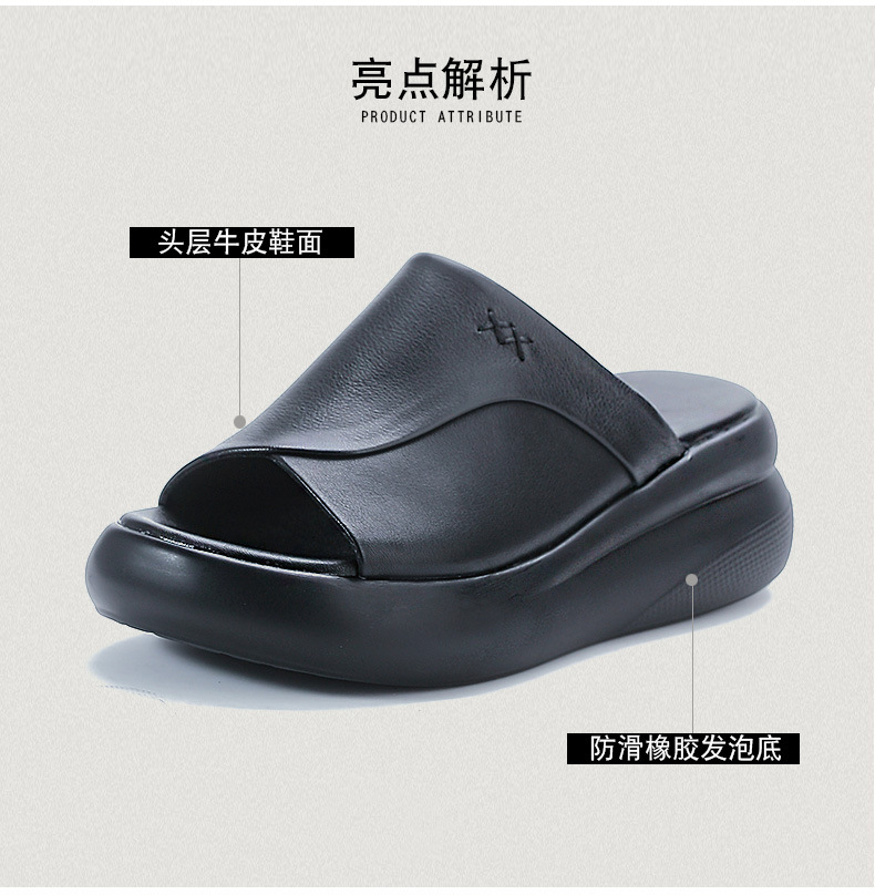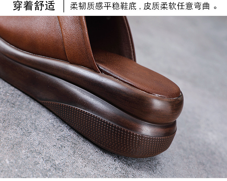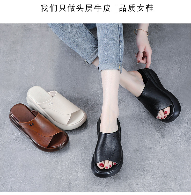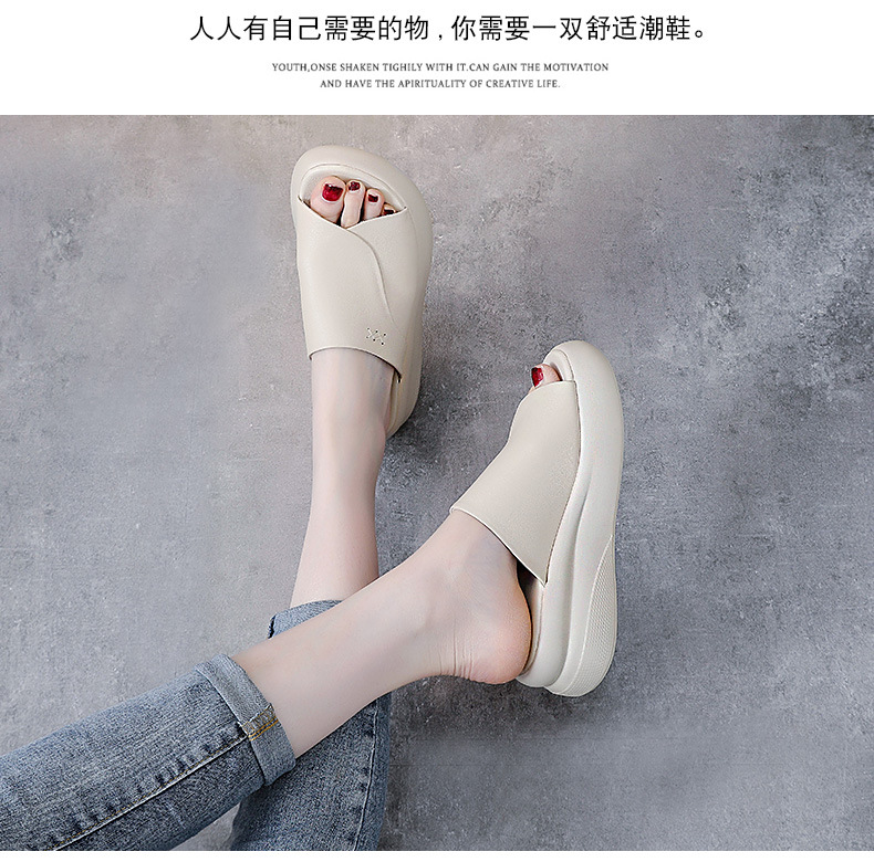 YR 1239头层牛皮休闲厚底拖鞋鱼嘴妈妈