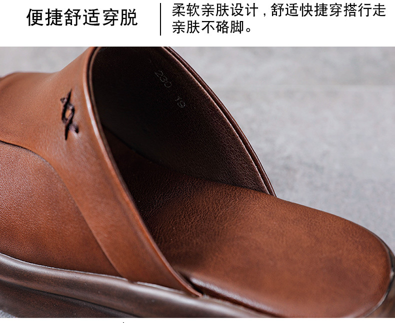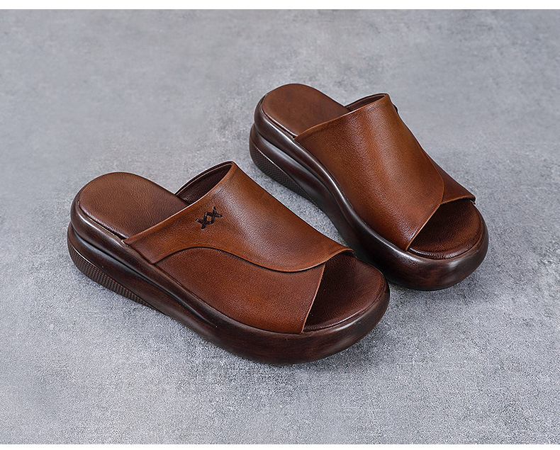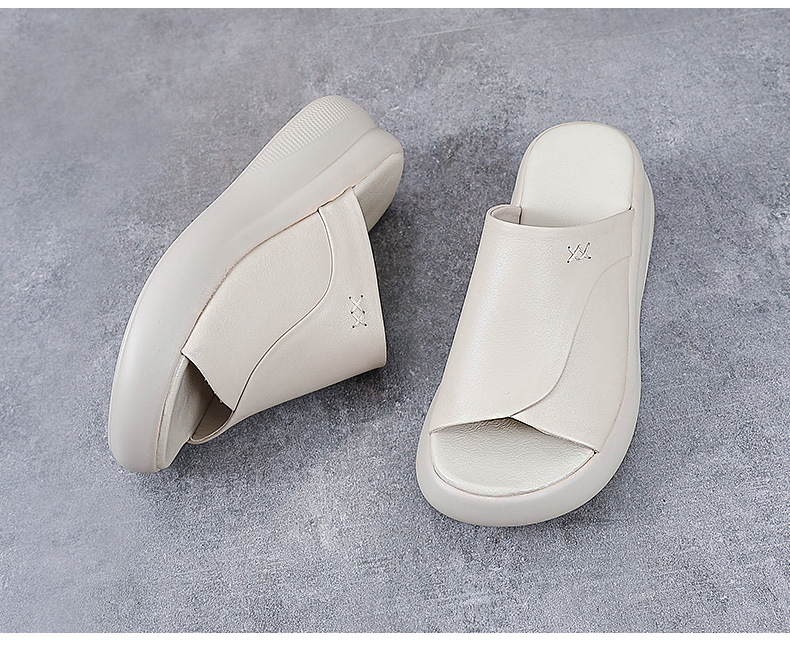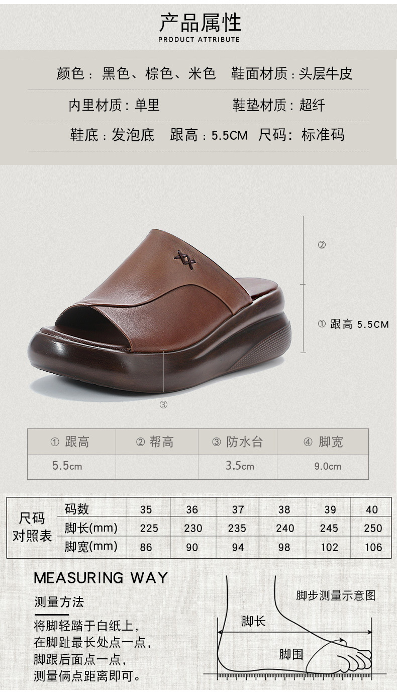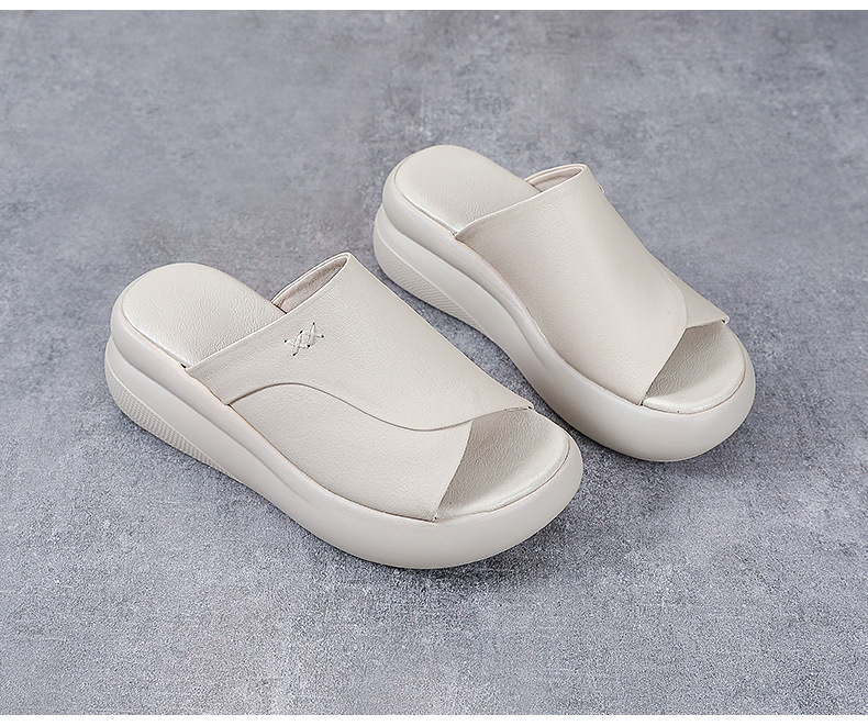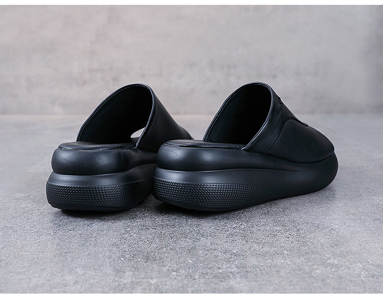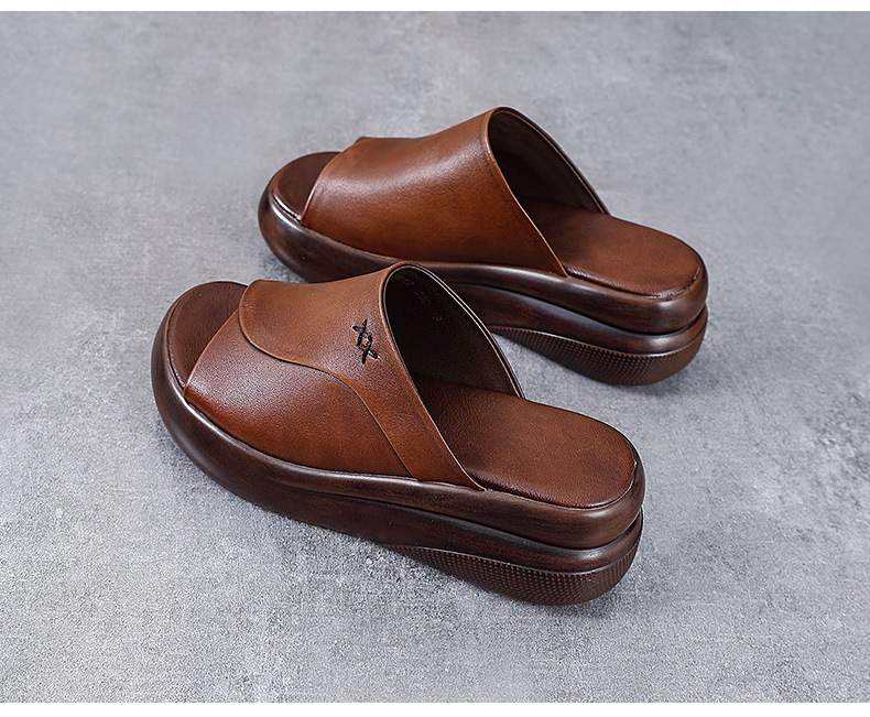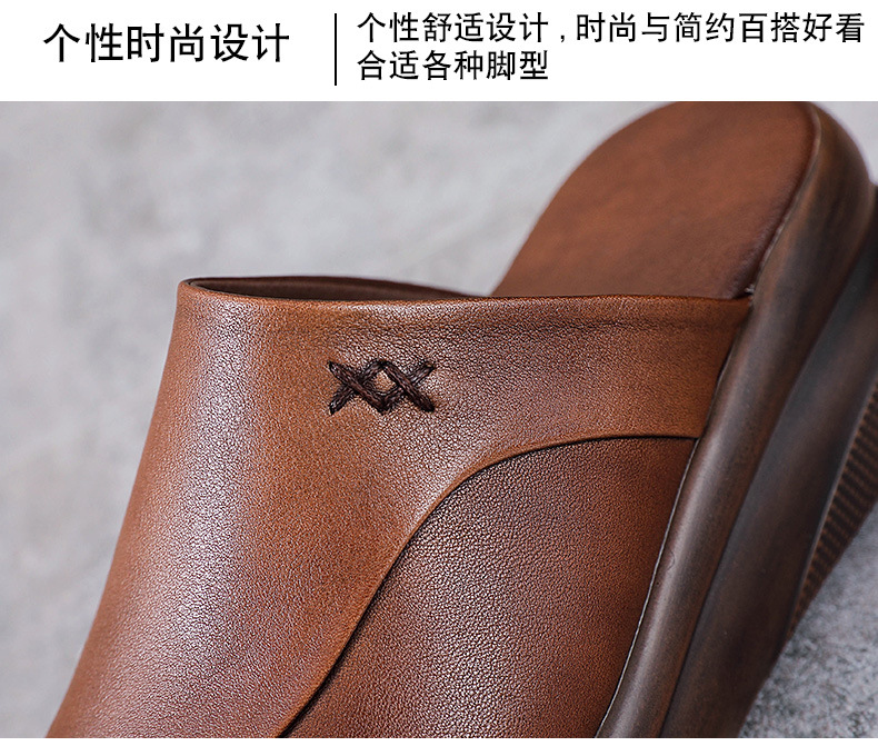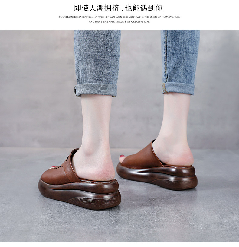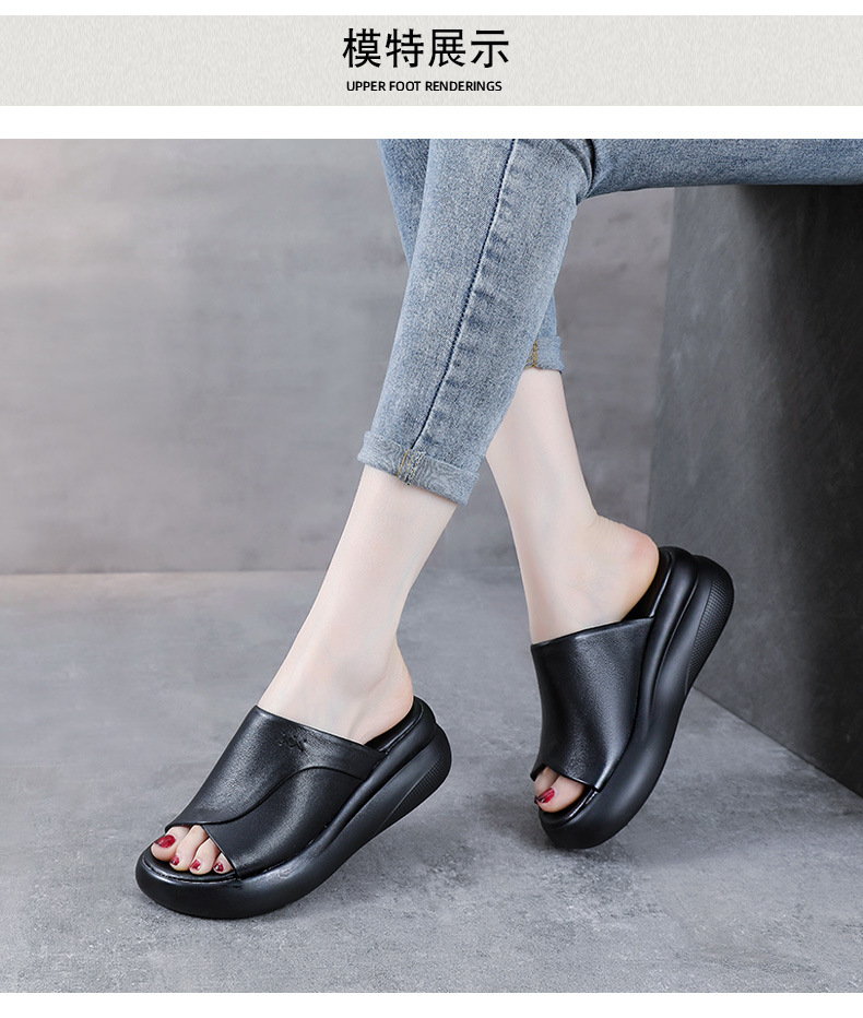 YR 1239头层牛皮休闲厚底拖鞋鱼嘴妈妈