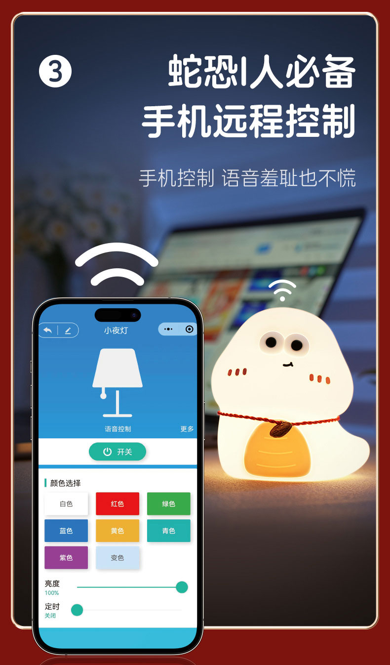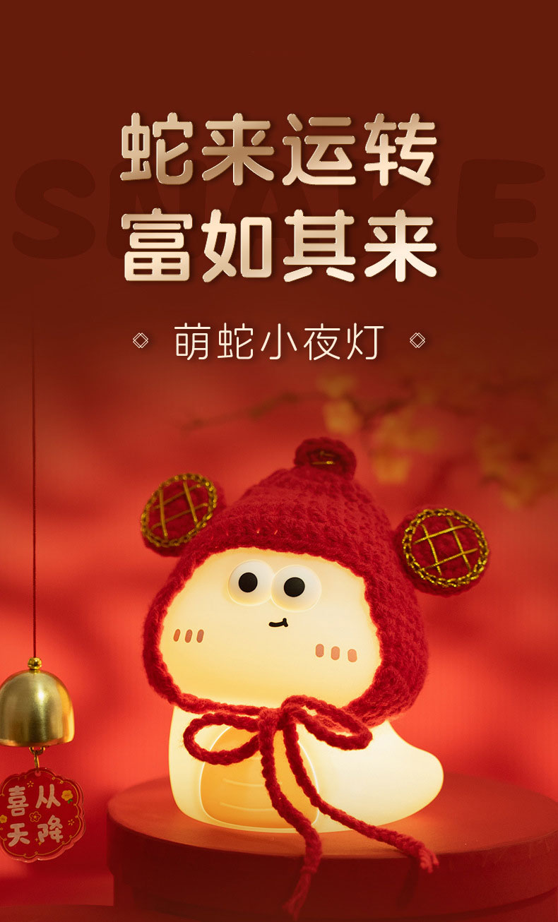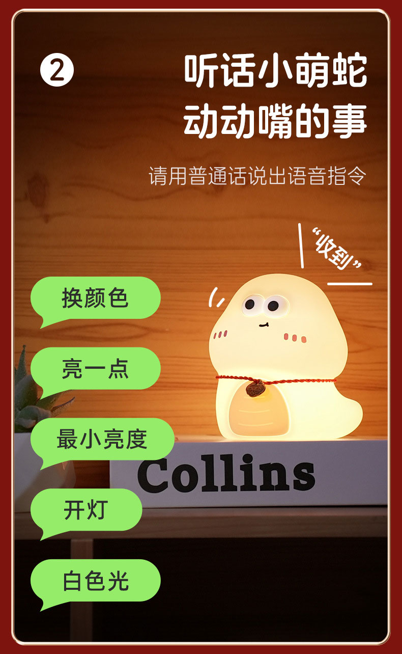 蛇来运转硅胶小夜灯 新品蛇年小白蛇青蛇卧室氛围床头伴睡灯节日礼品