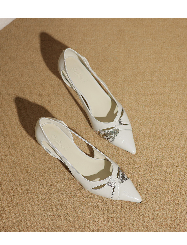 【预售5天】头层牛皮!镂空高跟鞋女新款尖头细跟单鞋女奶白真皮中跟气质ZF&25087
