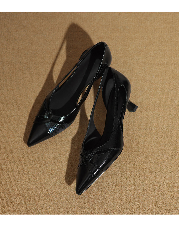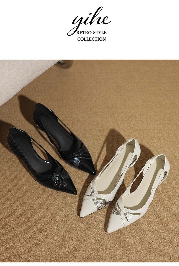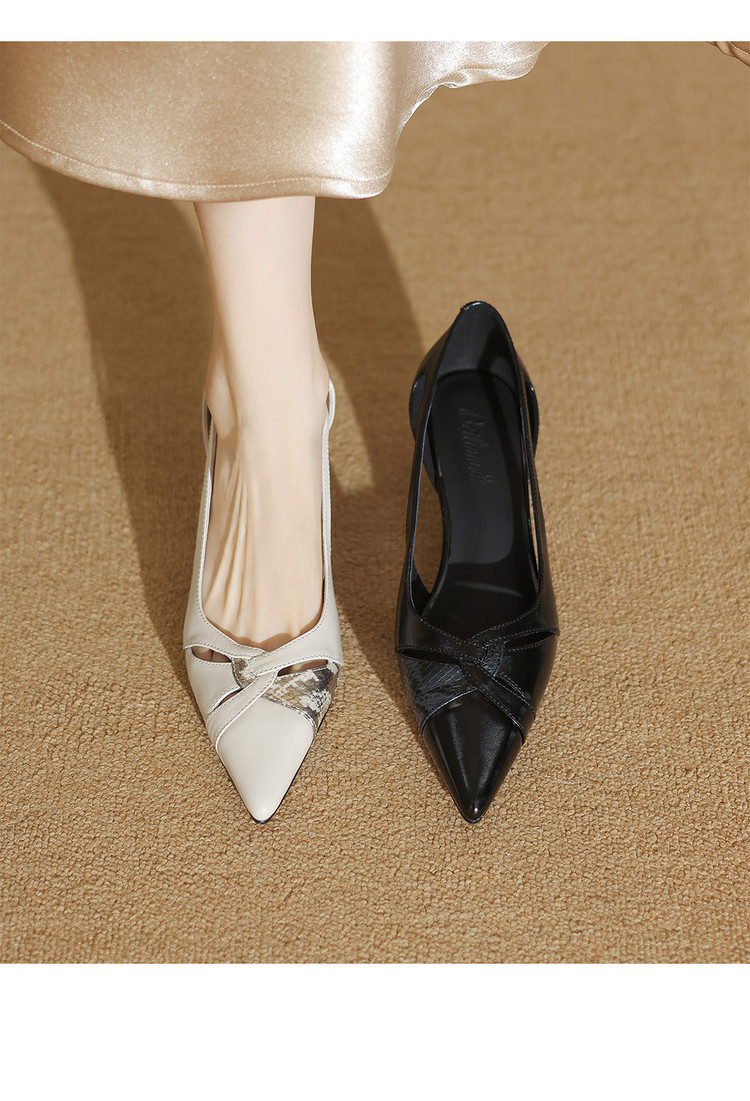 【预售5天】绝美侧空小高跟鞋女低跟中跟真皮时尚气质尖头单鞋MBJR&A6908