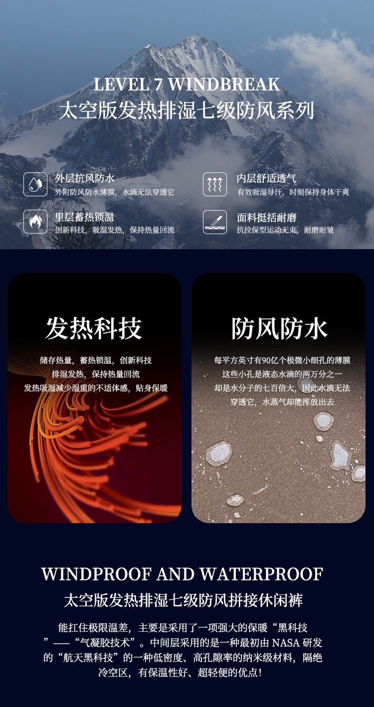 【孤品捡漏】【男款】韩版【男款抽绳卫裤】秋冬防风防水显瘦纳米绒保暖蓄热收脚长裤H224060158