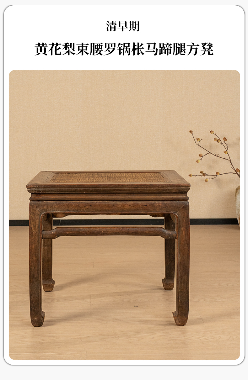 清早期 黄花梨束腰罗锅枨马蹄腿方凳