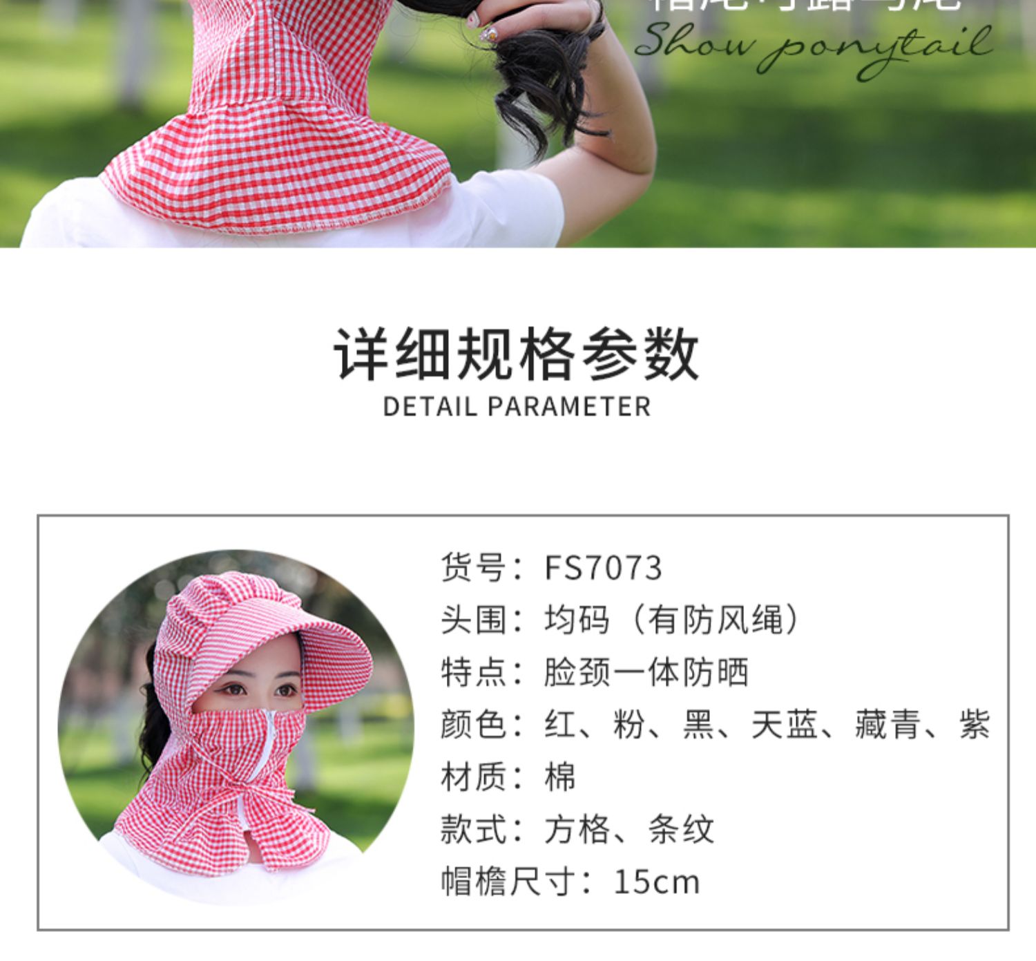 FS7074帽子遮阳帽女士防晒紫外线大沿骑车护脸户外可折叠夏季妈妈太阳帽