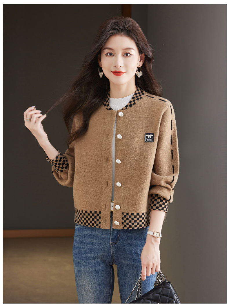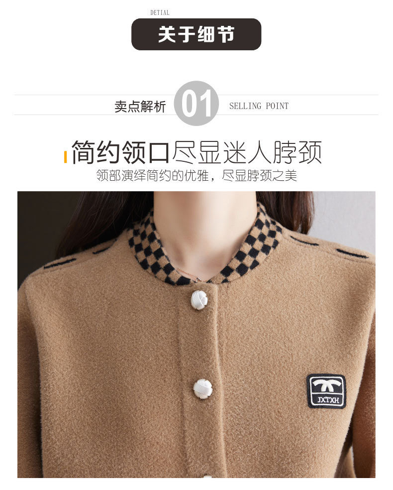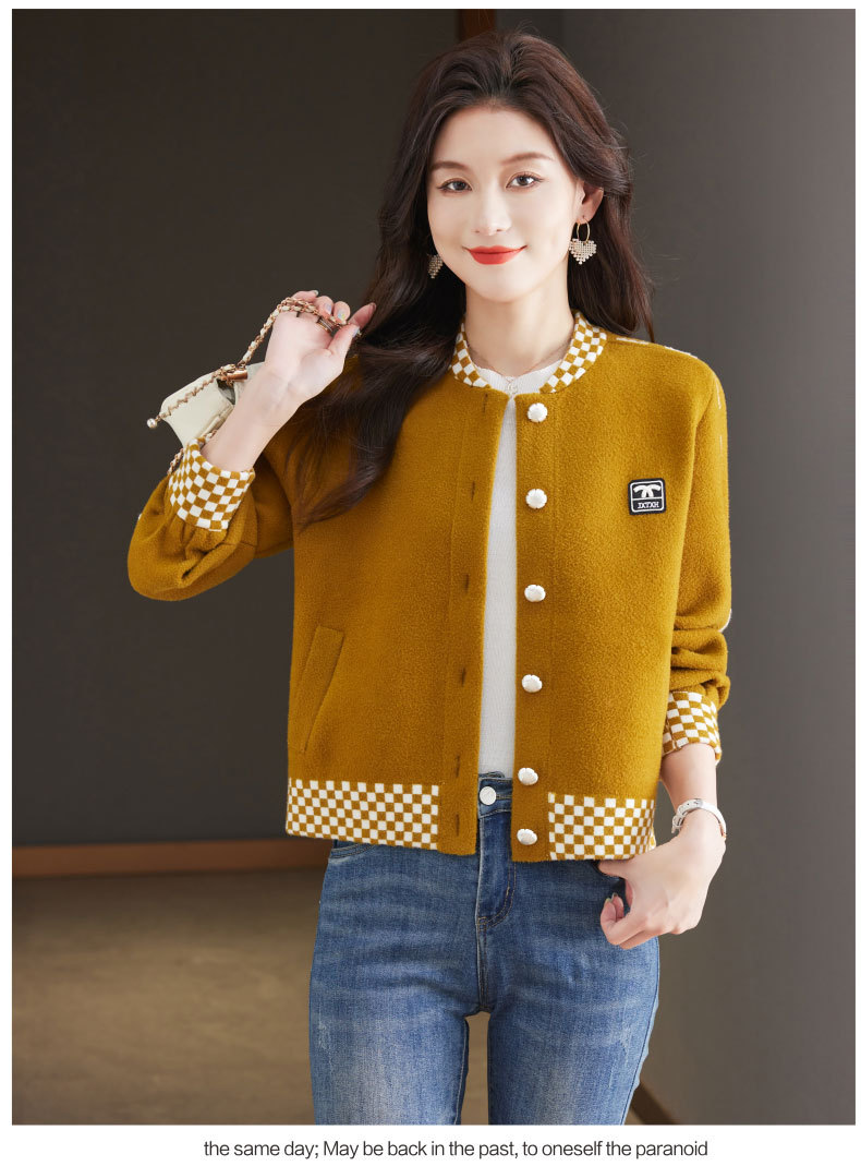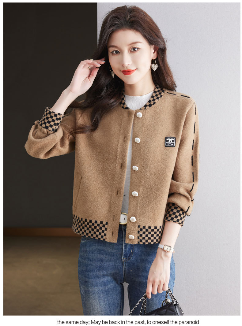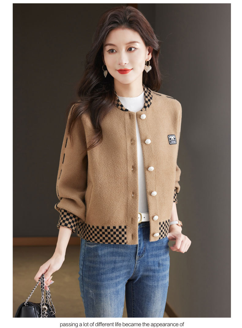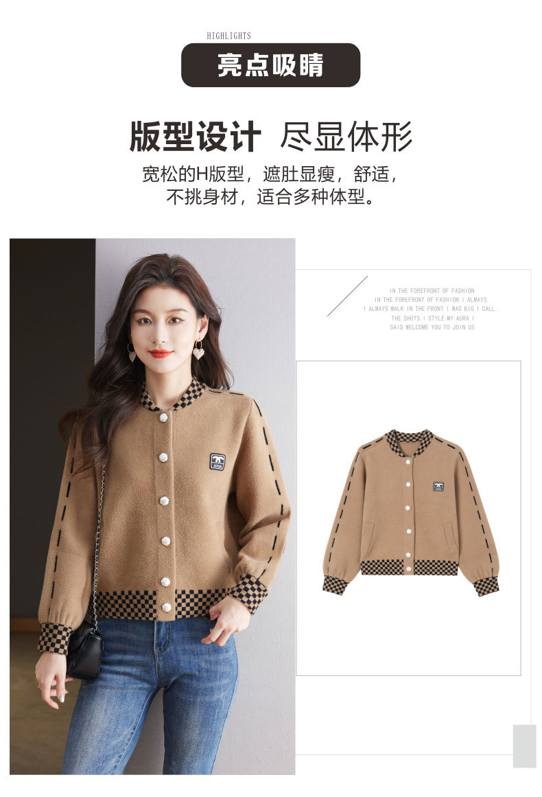 CC-17-2090毛呢外套女春秋2024新款韩版宽松小个子短款休闲立领夹克呢子上衣