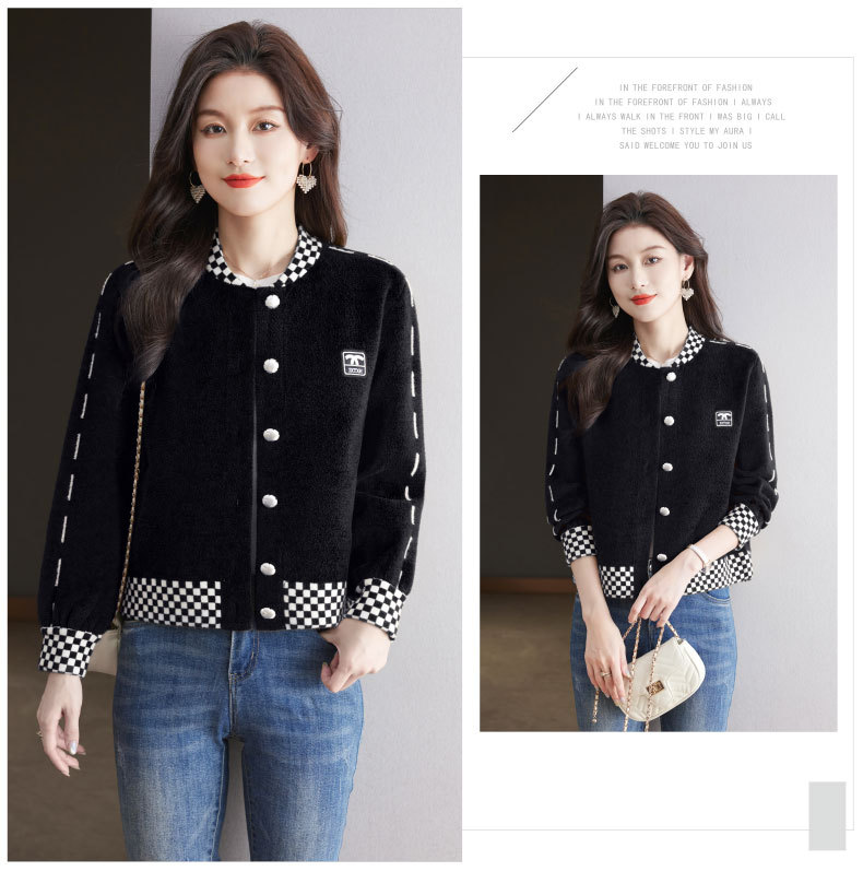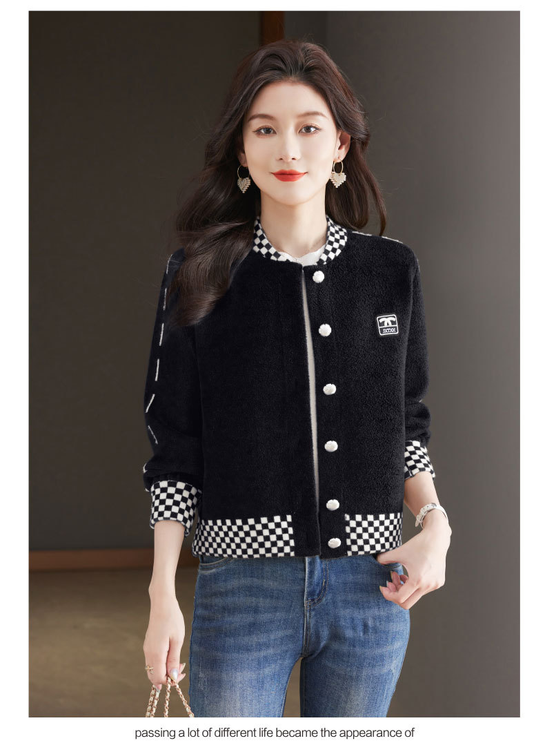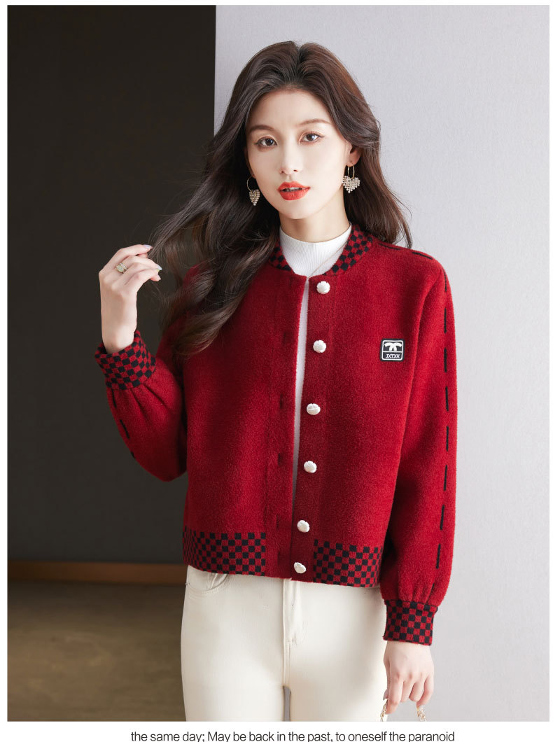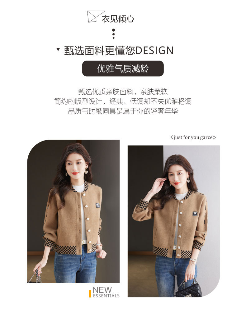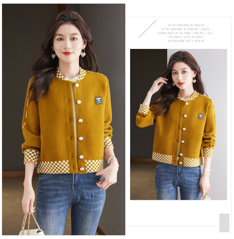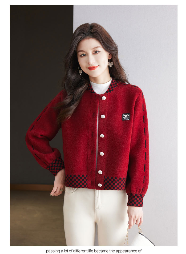 CC-17-2090毛呢外套女春秋2024新款韩版宽松小个子短款休闲立领夹克呢子上衣