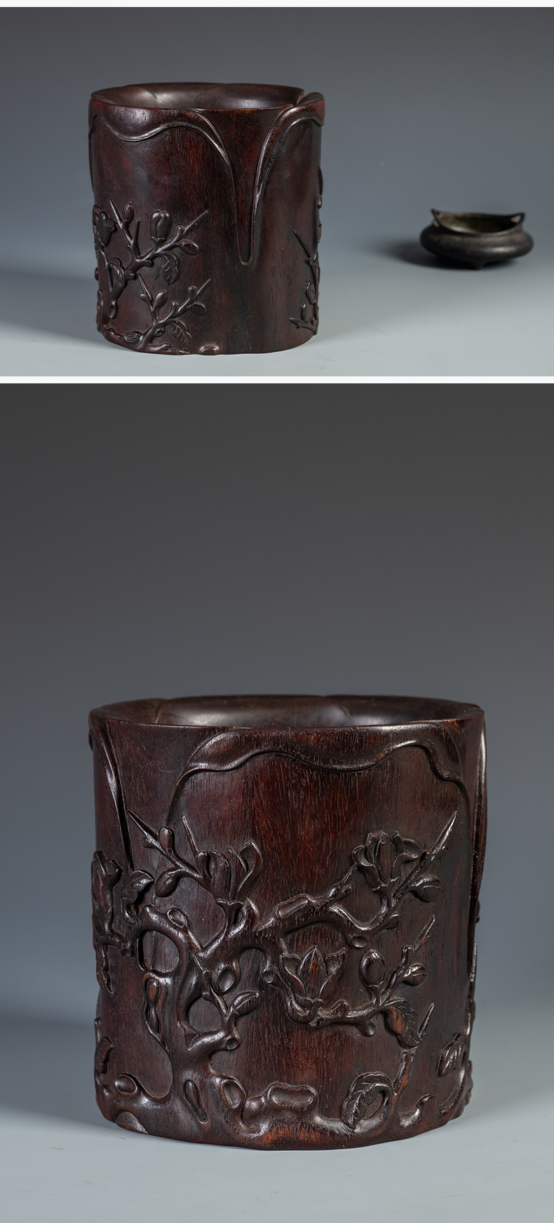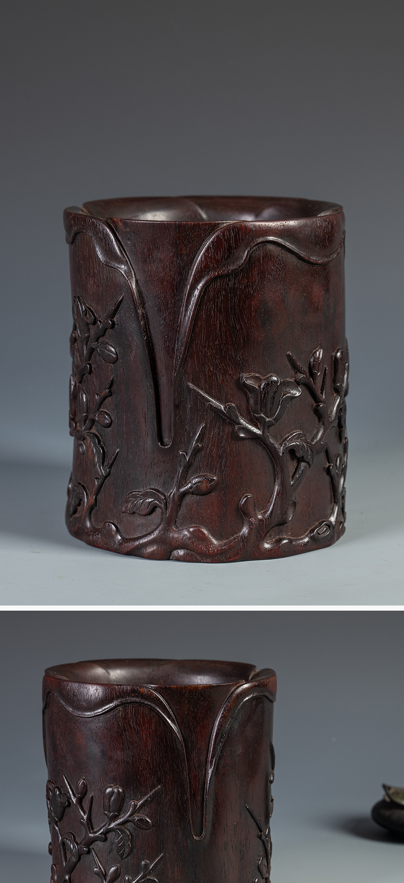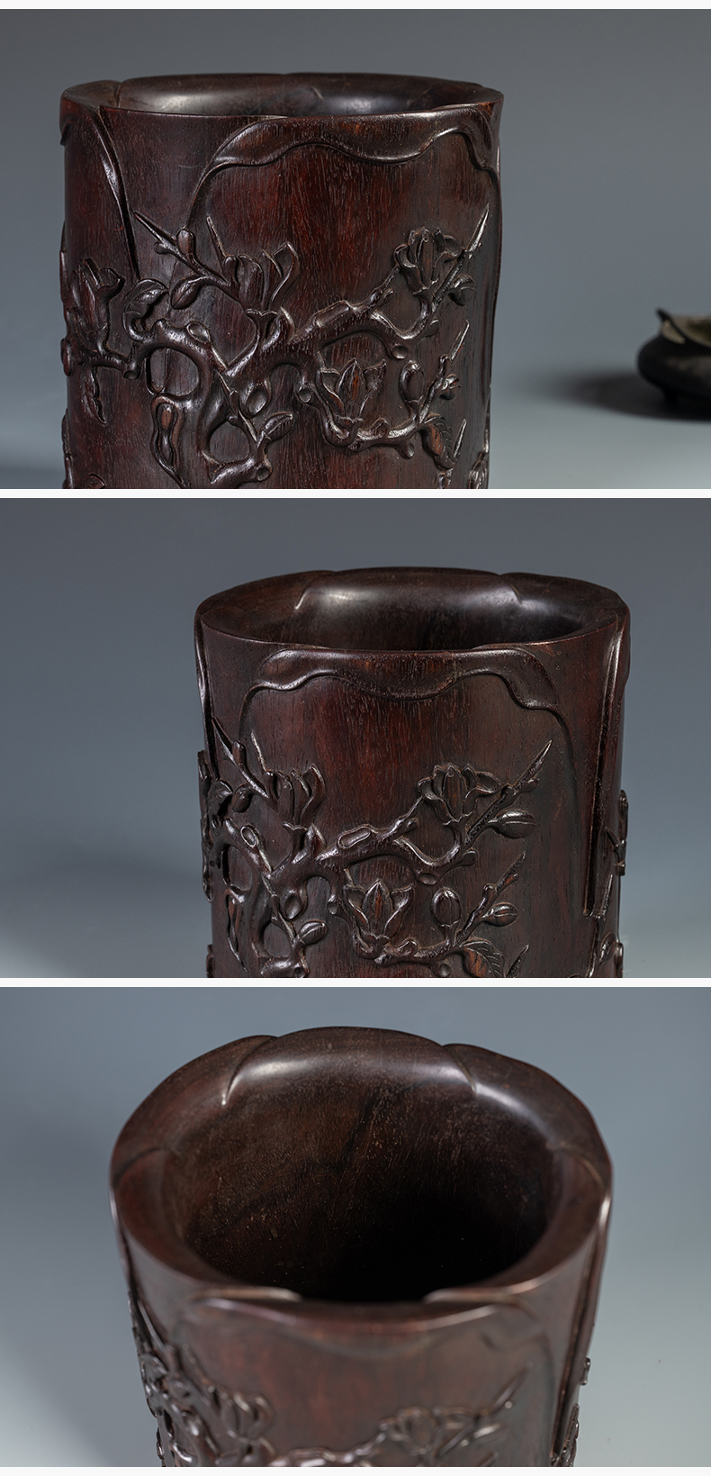 二十世纪 红木螭龙纹带围栏三层架格(一对)