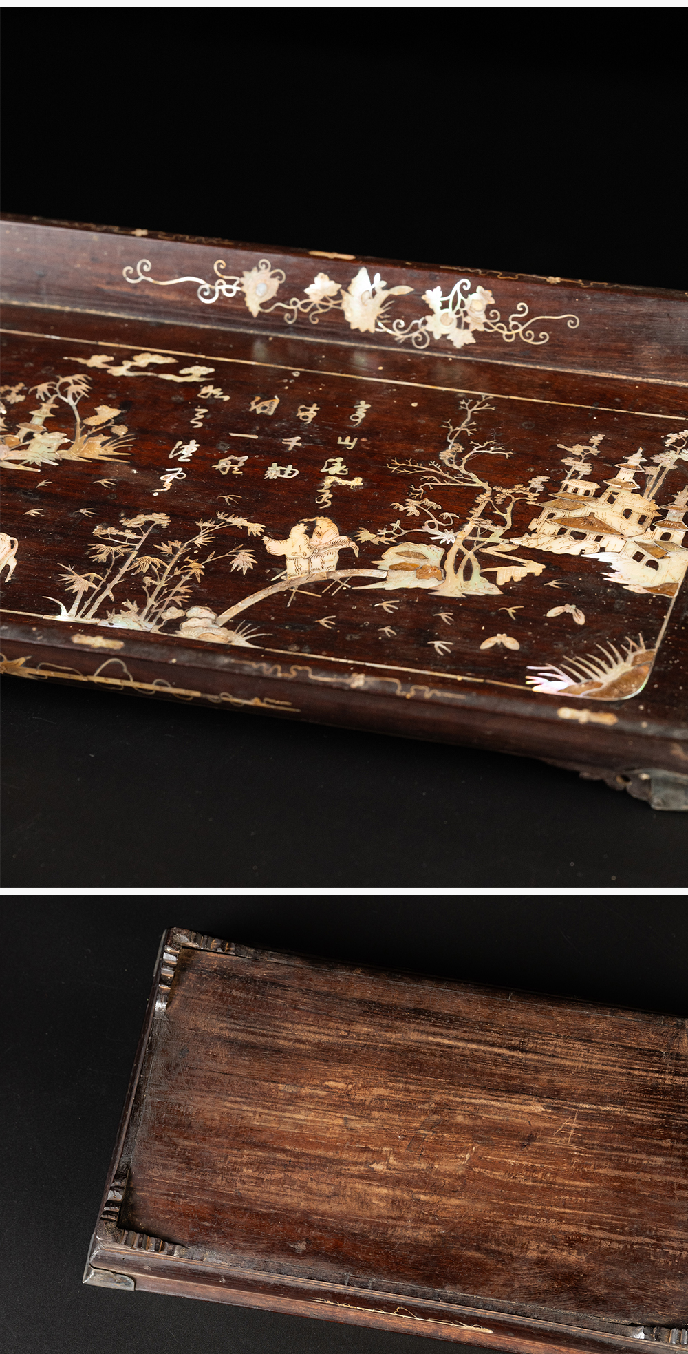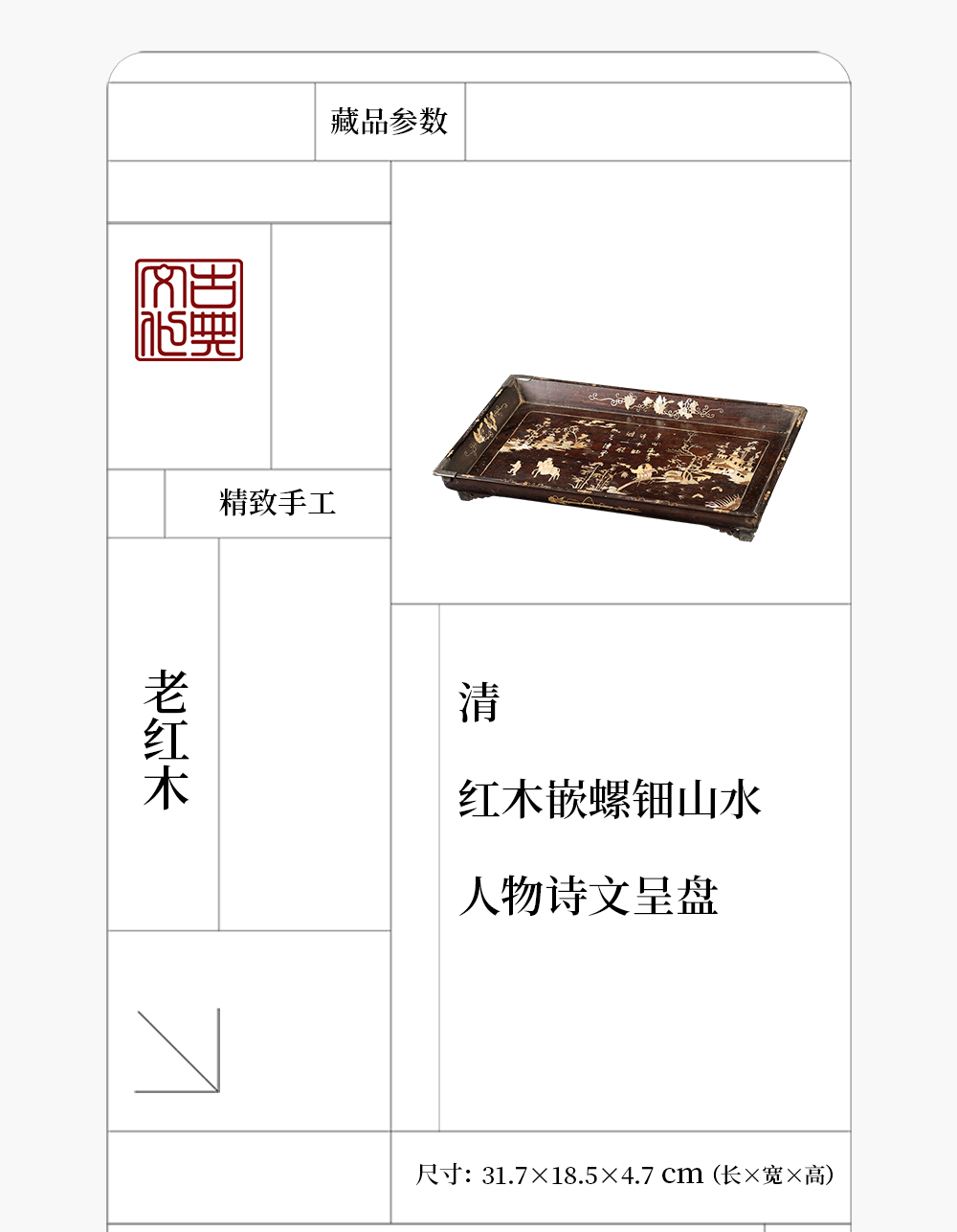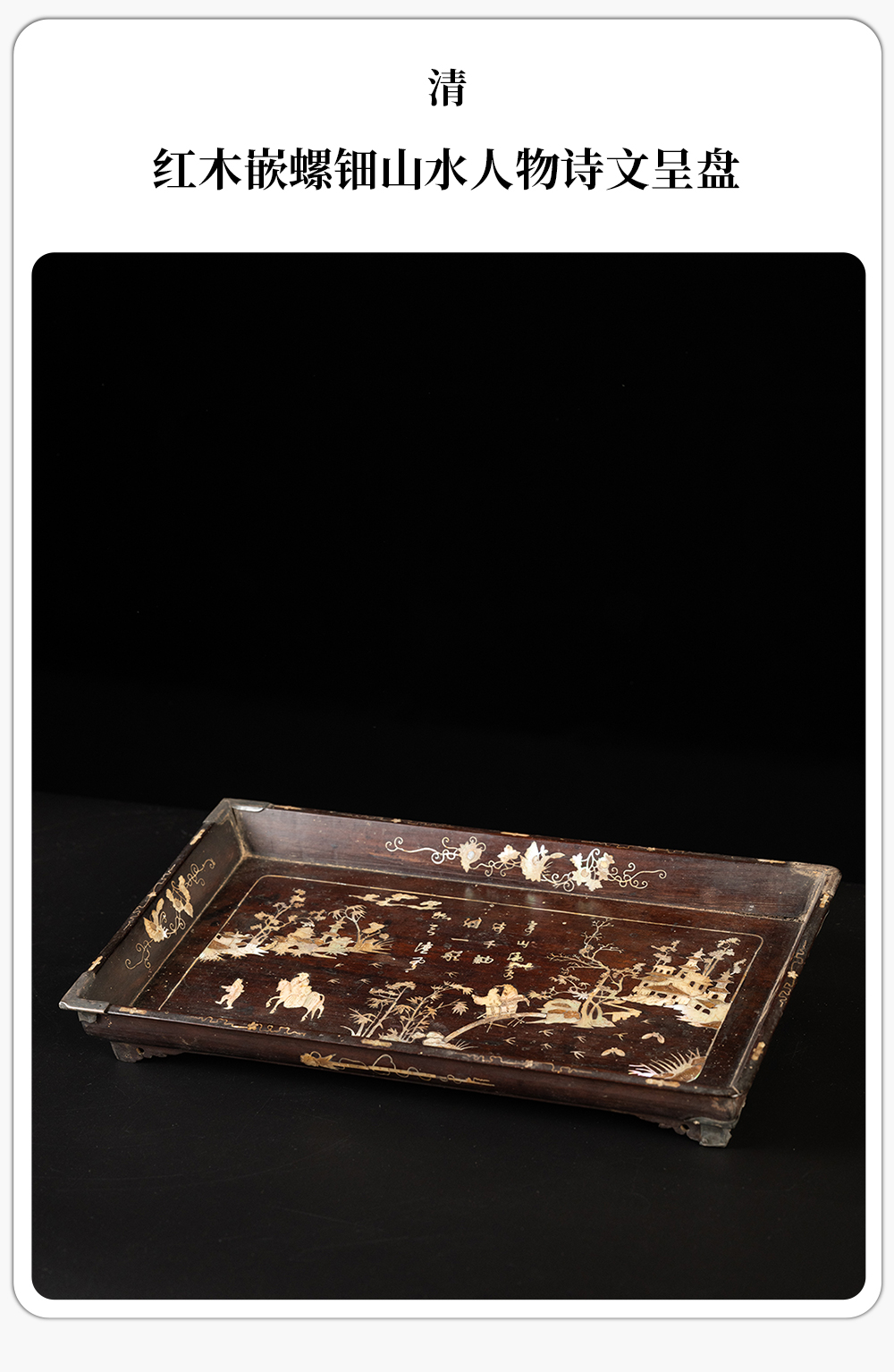 清 红木嵌螺钿山水人物诗文呈盘