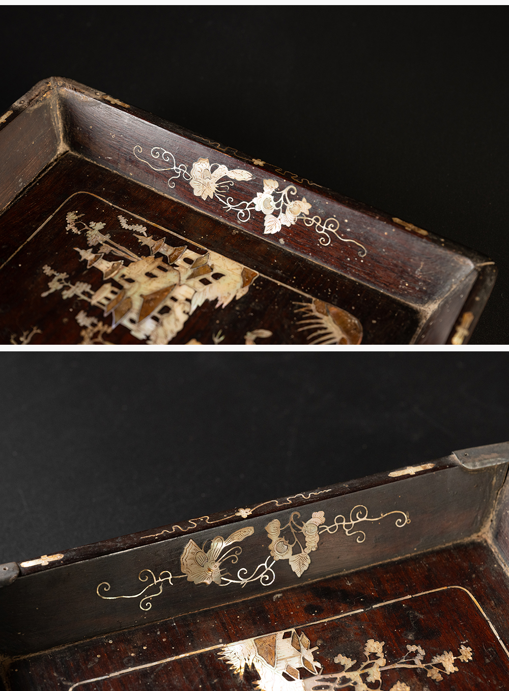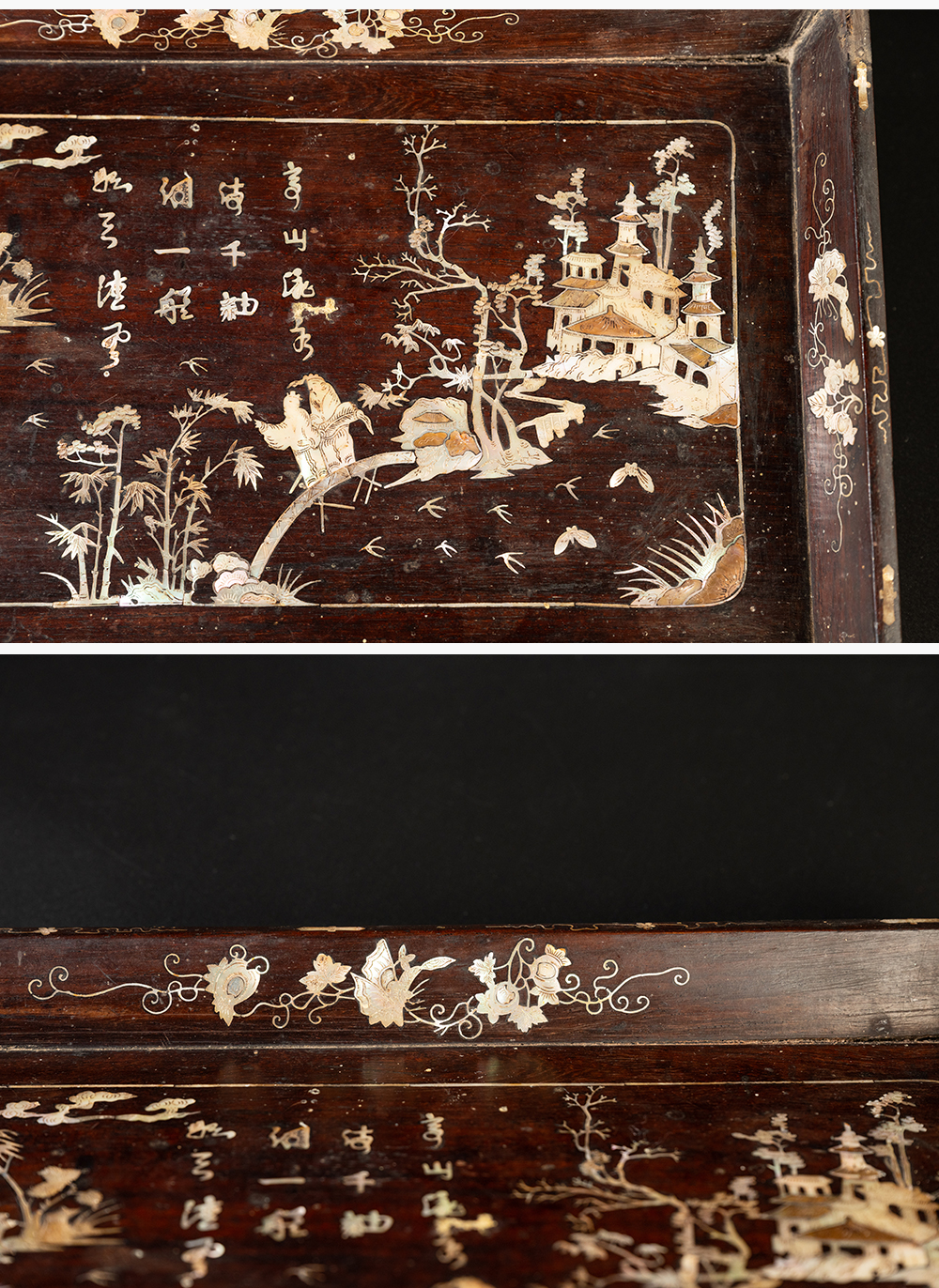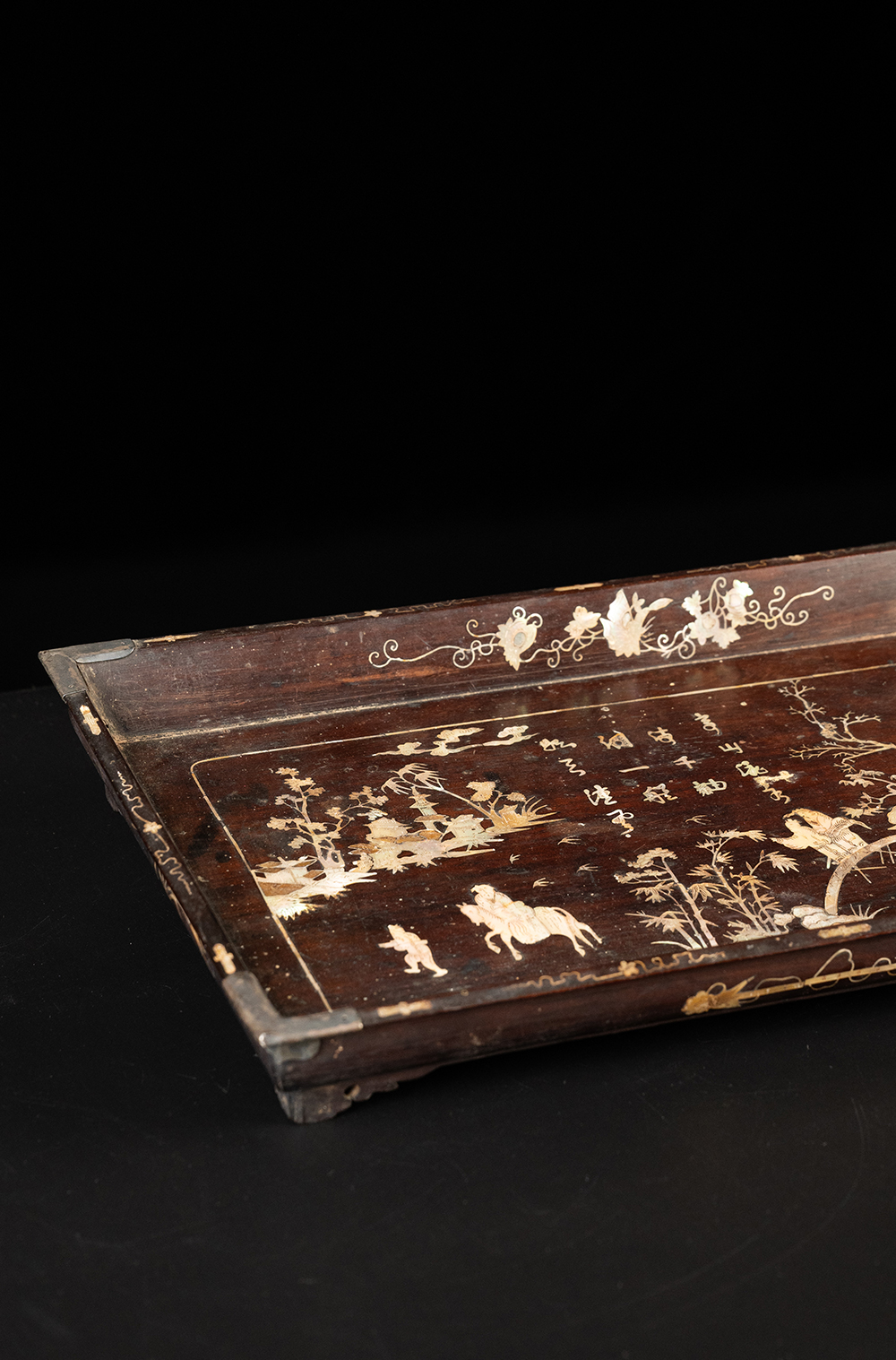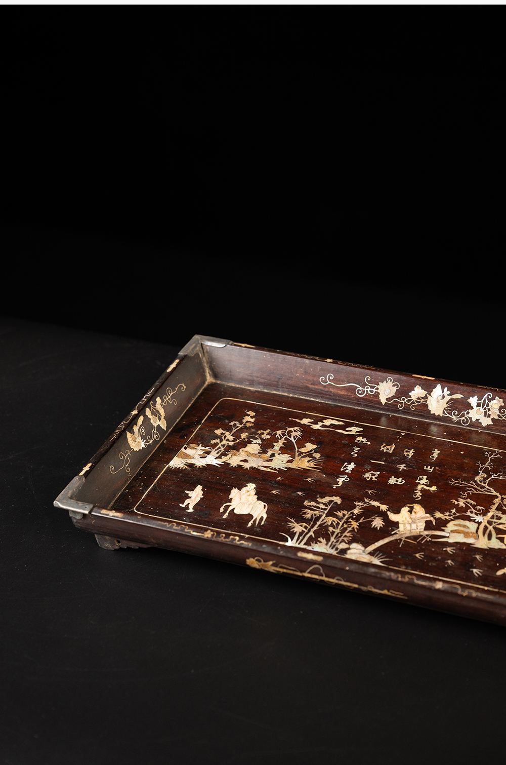 清 红木嵌螺钿山水人物诗文呈盘
