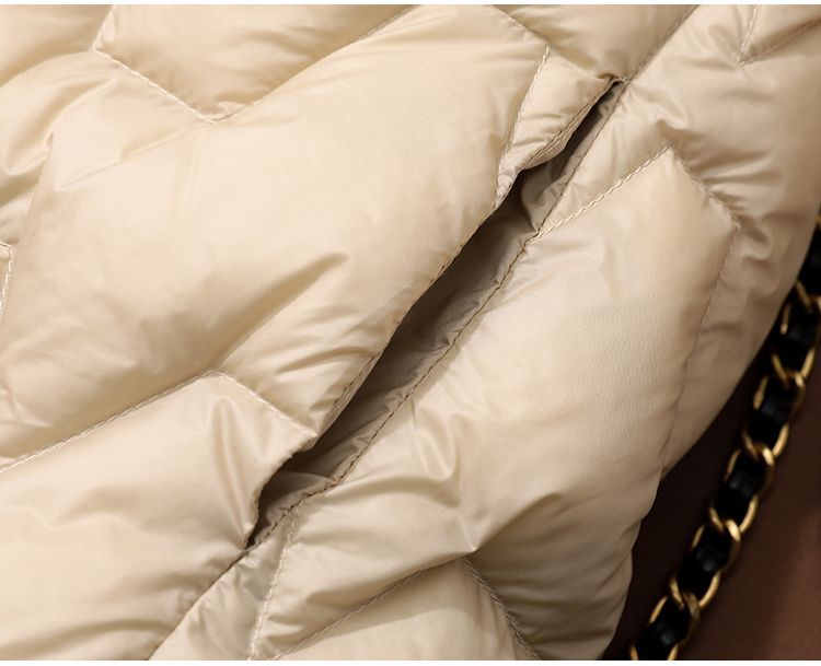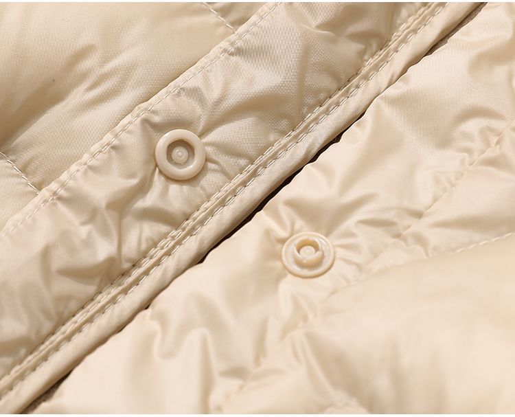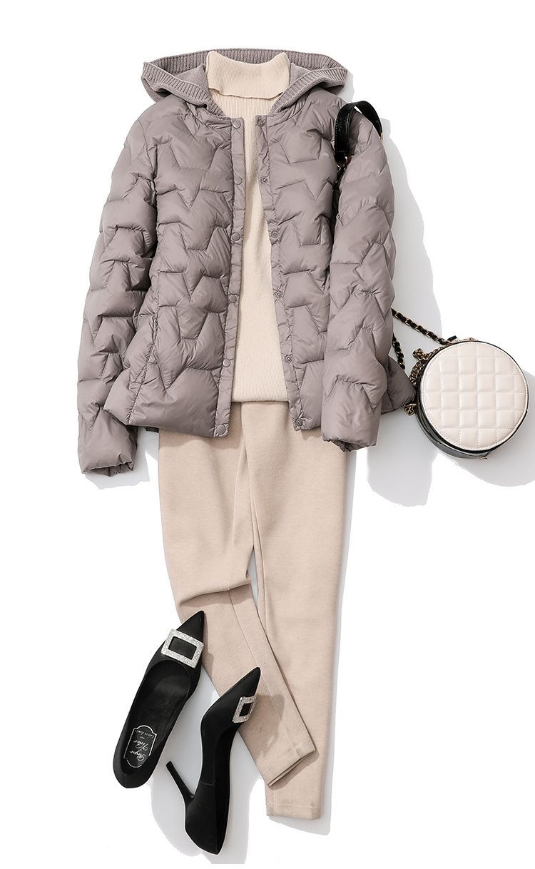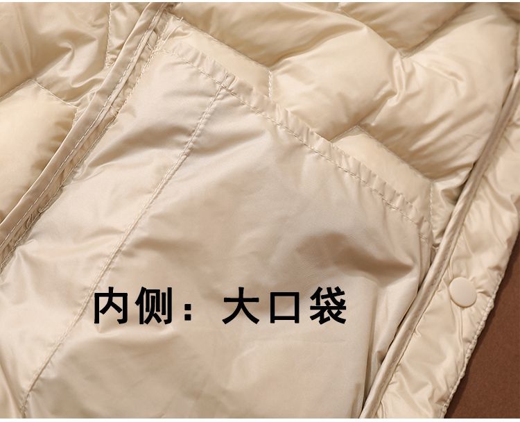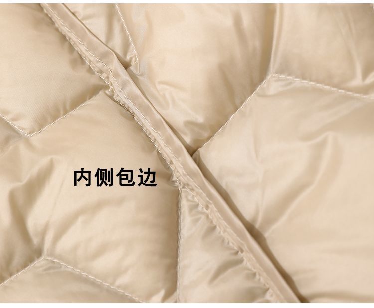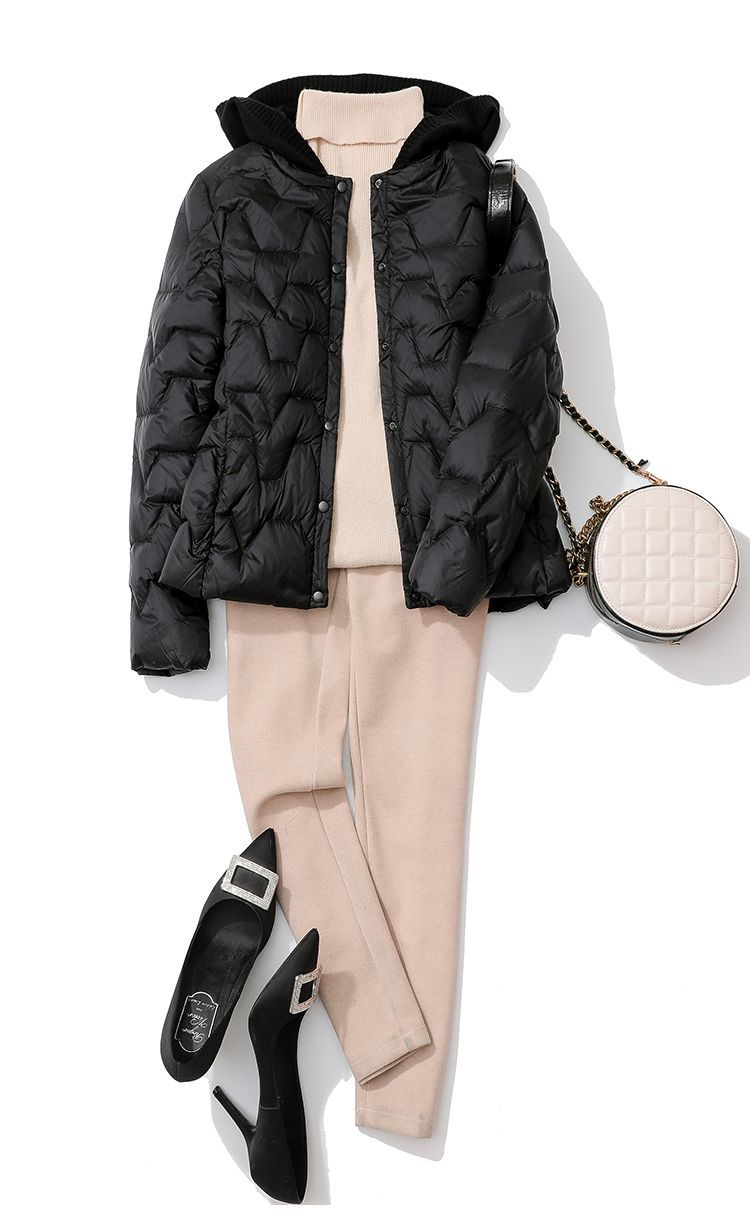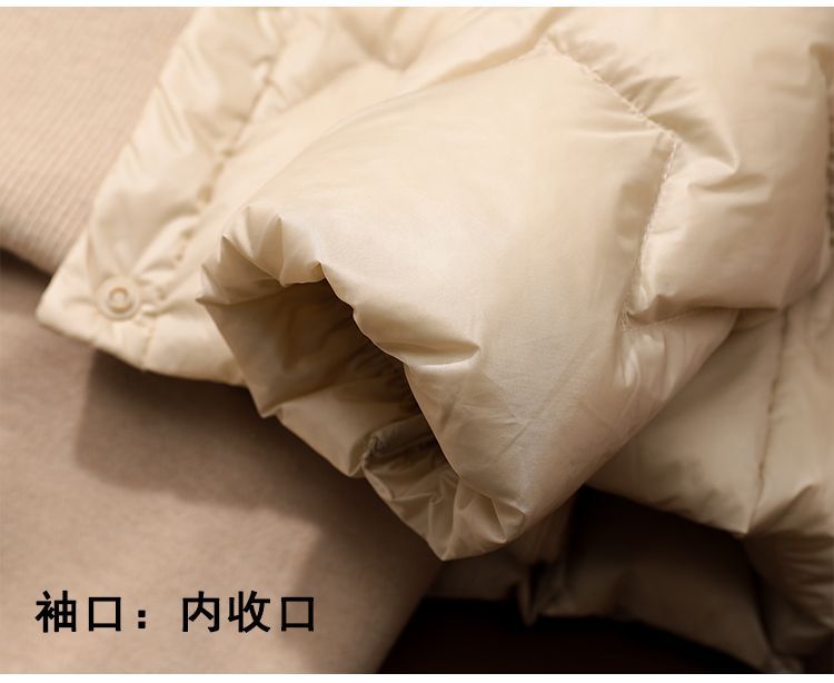 丁摩~秋冬轻薄连帽羽绒服女短款拼接针织帽时尚洋气内搭轻便修身外套VOP