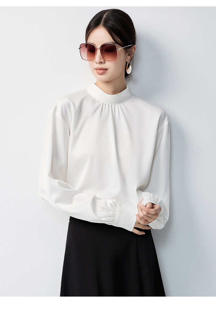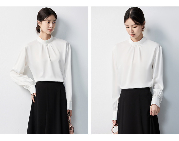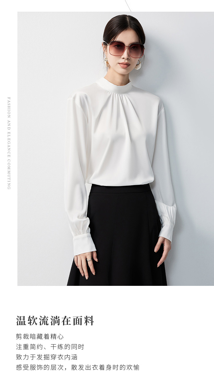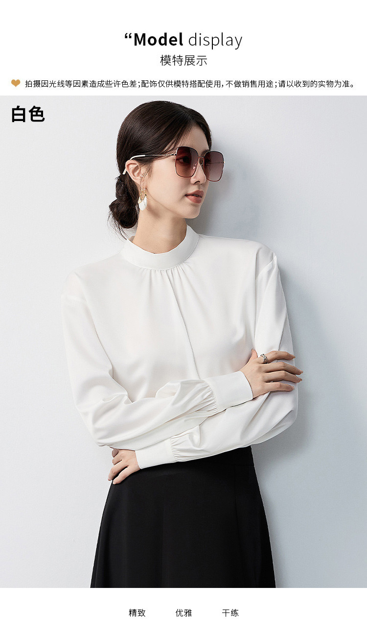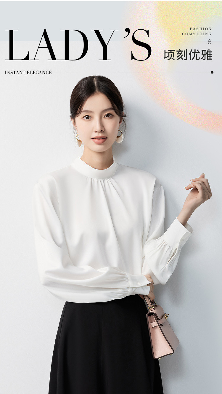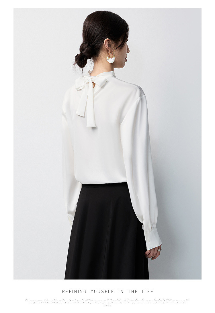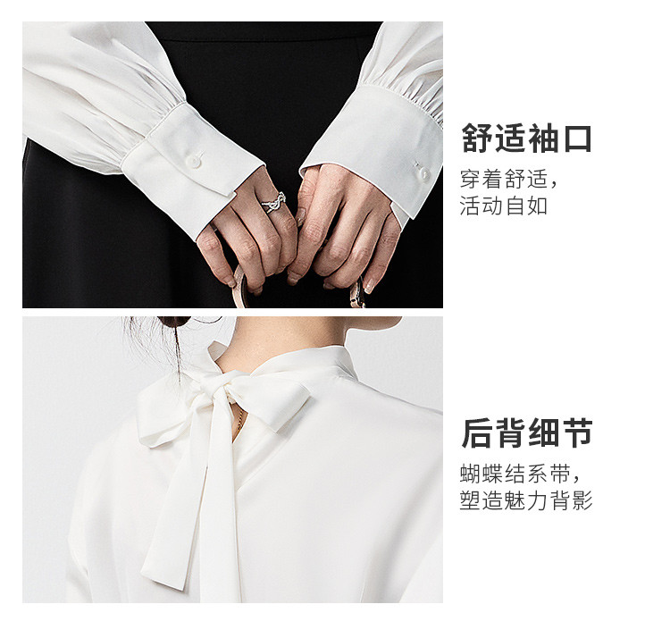 【蝴蝶结系带】罗蒙女士长袖衬衫百搭圆领优雅气质时尚通勤衬衣女
