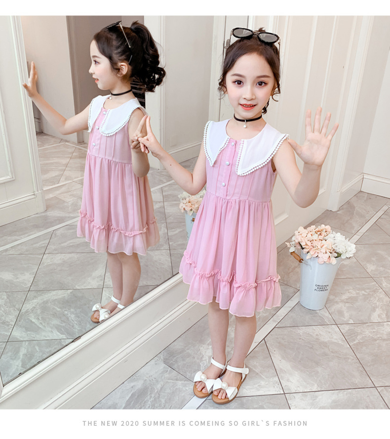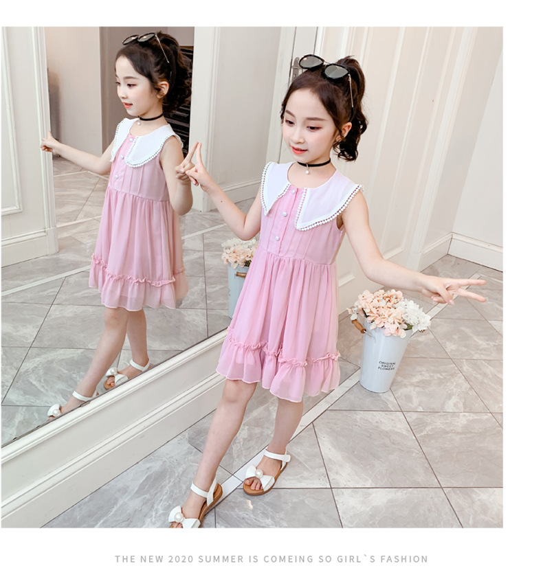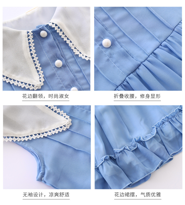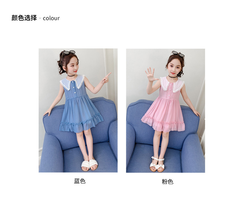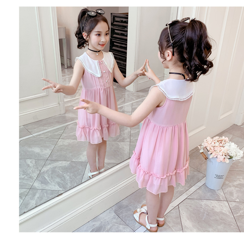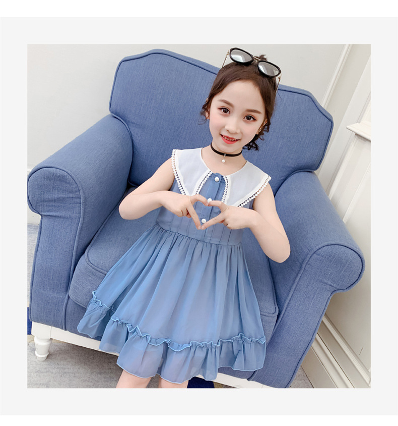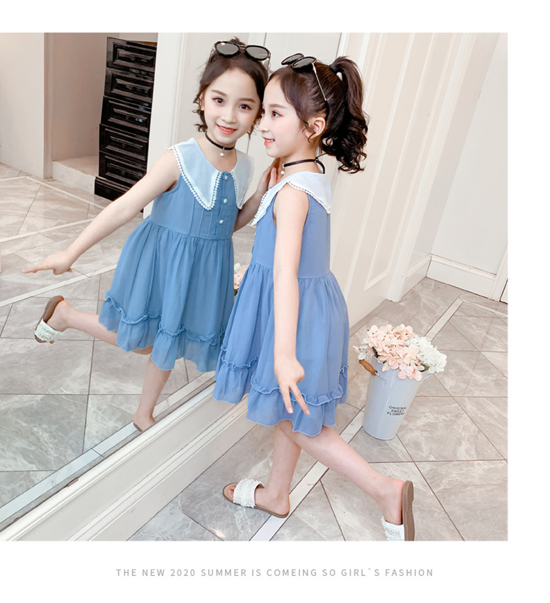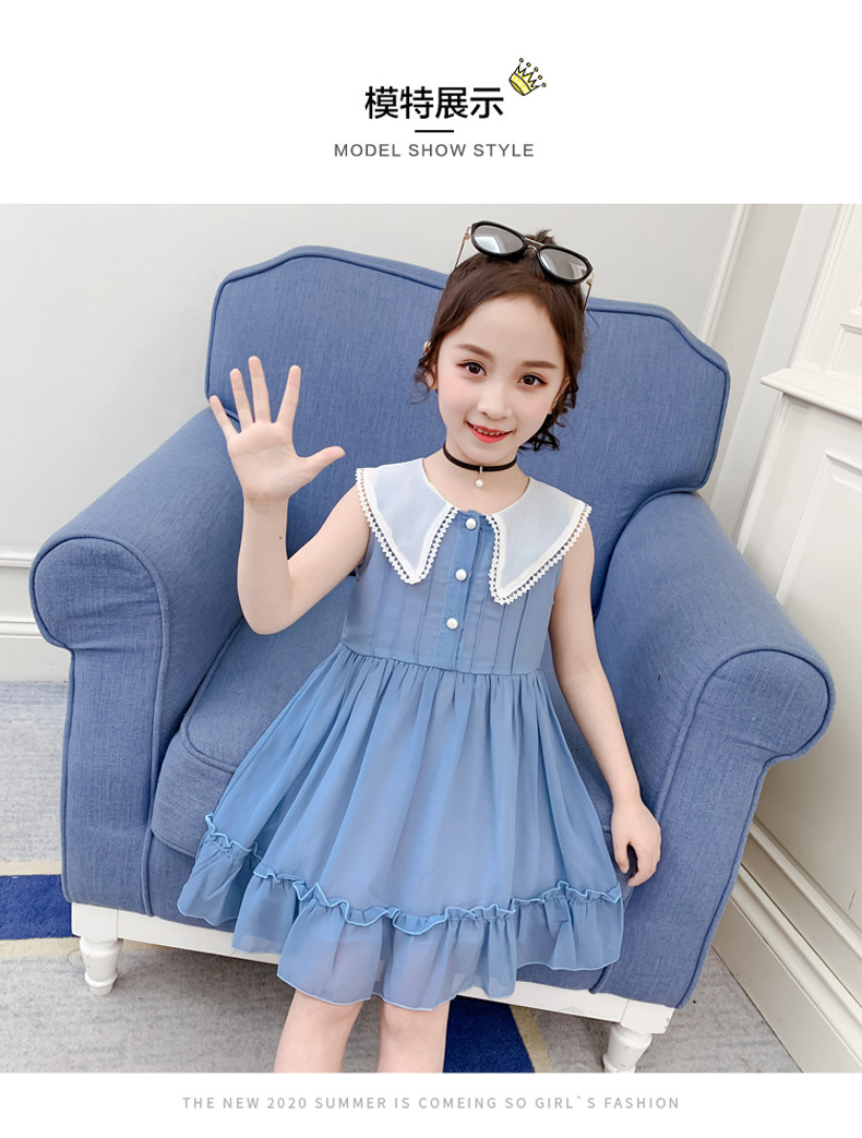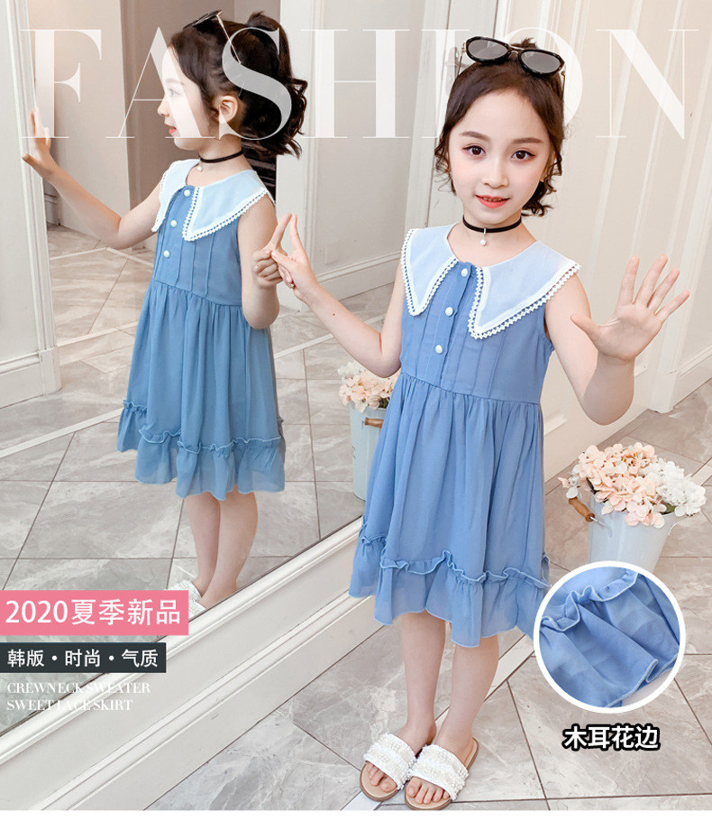 XR-2020新款时尚中大童花边领雪纺裙女孩洋气潮范