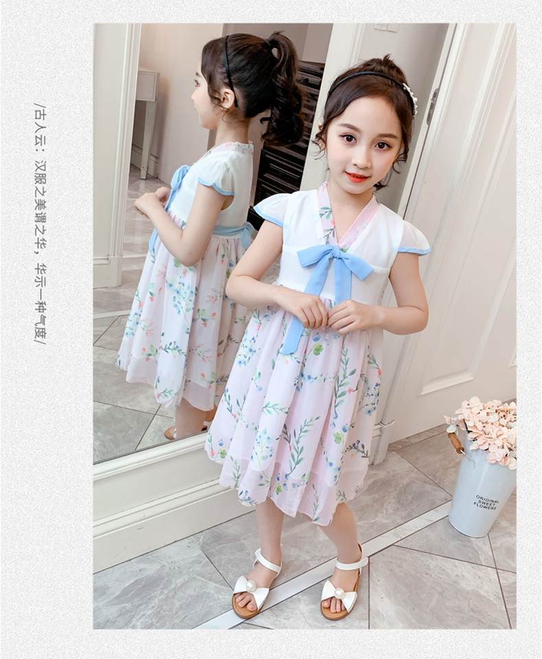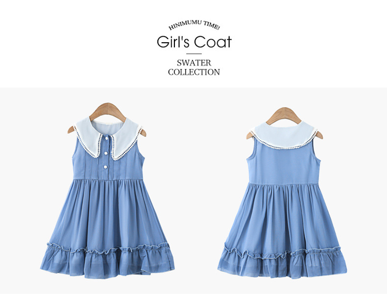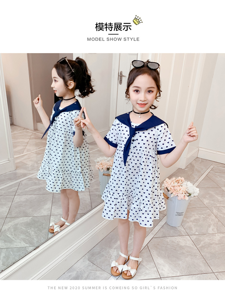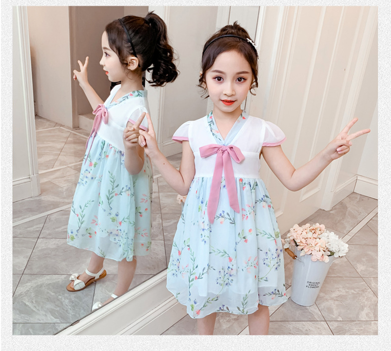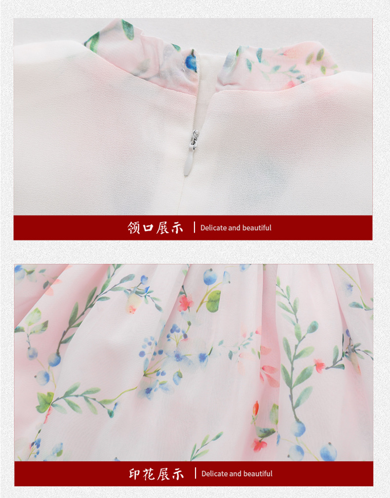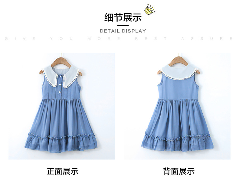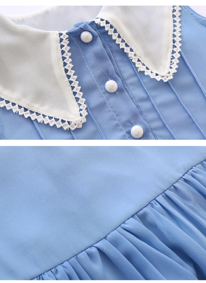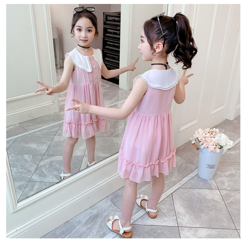 XR-2020新款时尚中大童花边领雪纺裙女孩洋气潮范