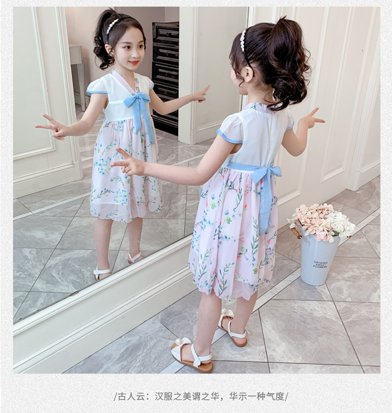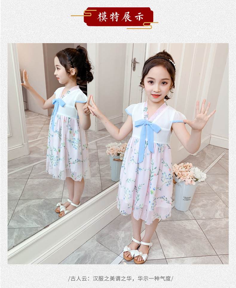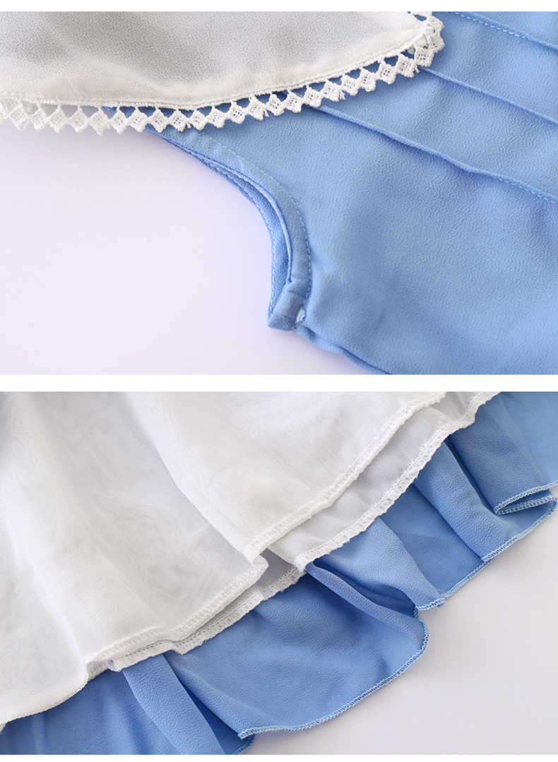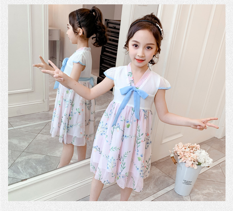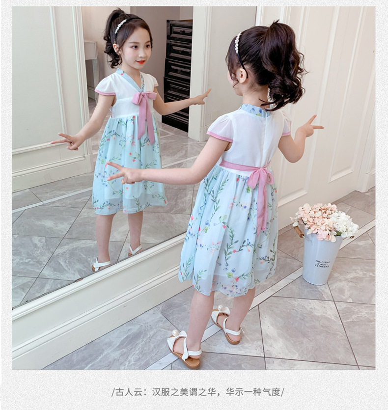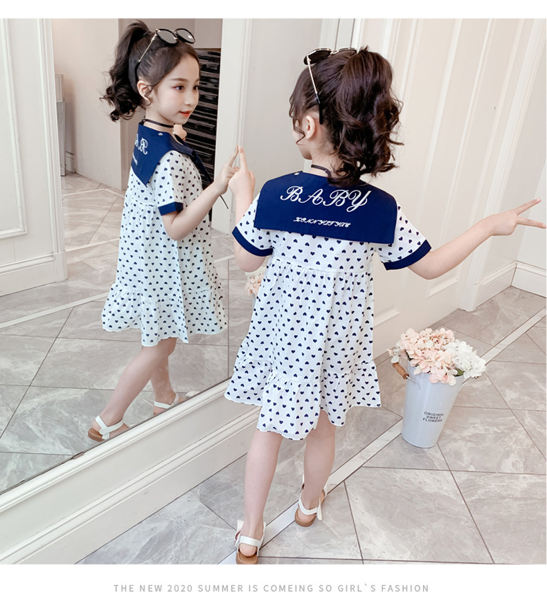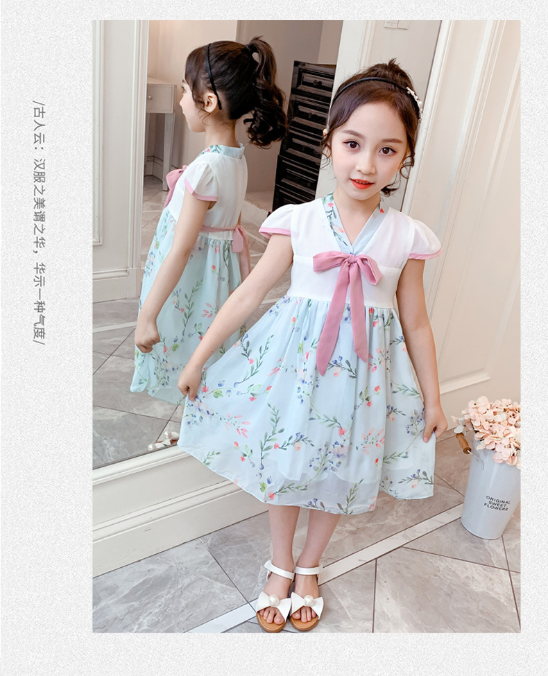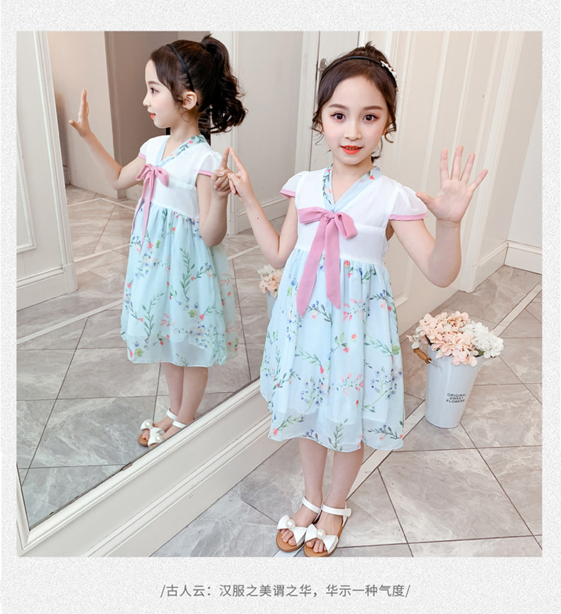 XR-2020新款时尚中大童花边领雪纺裙女孩洋气潮范