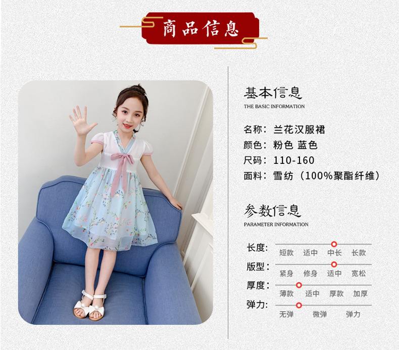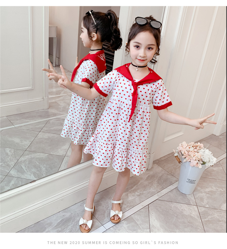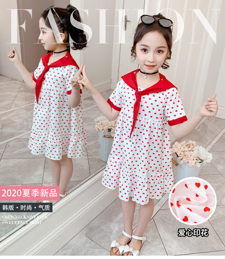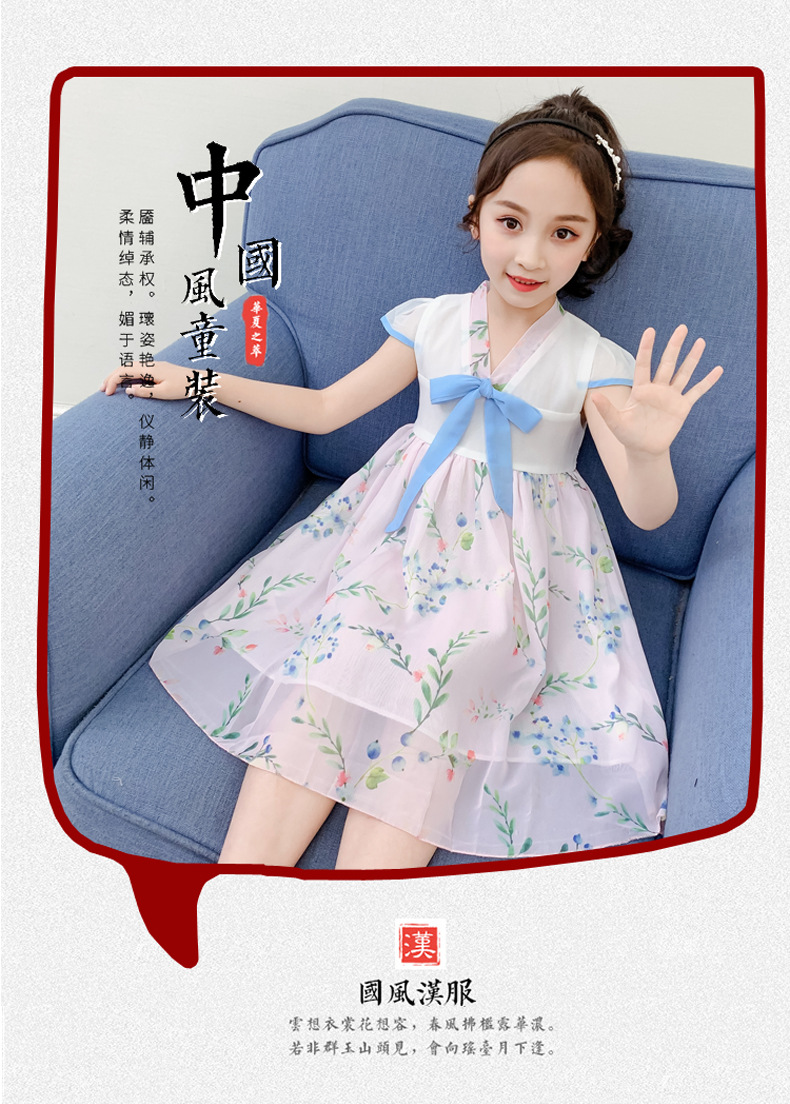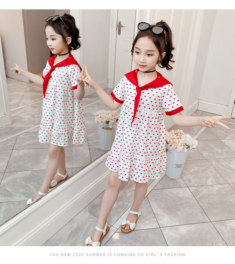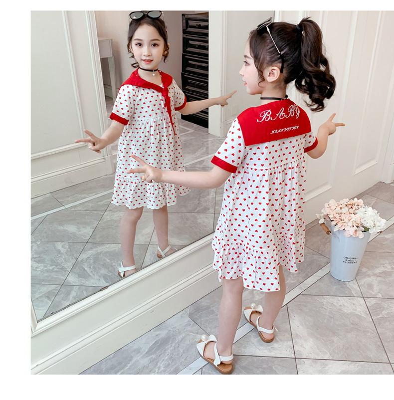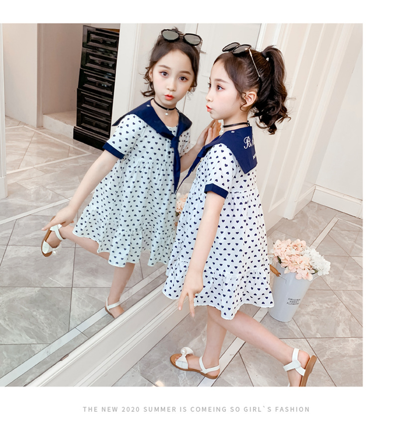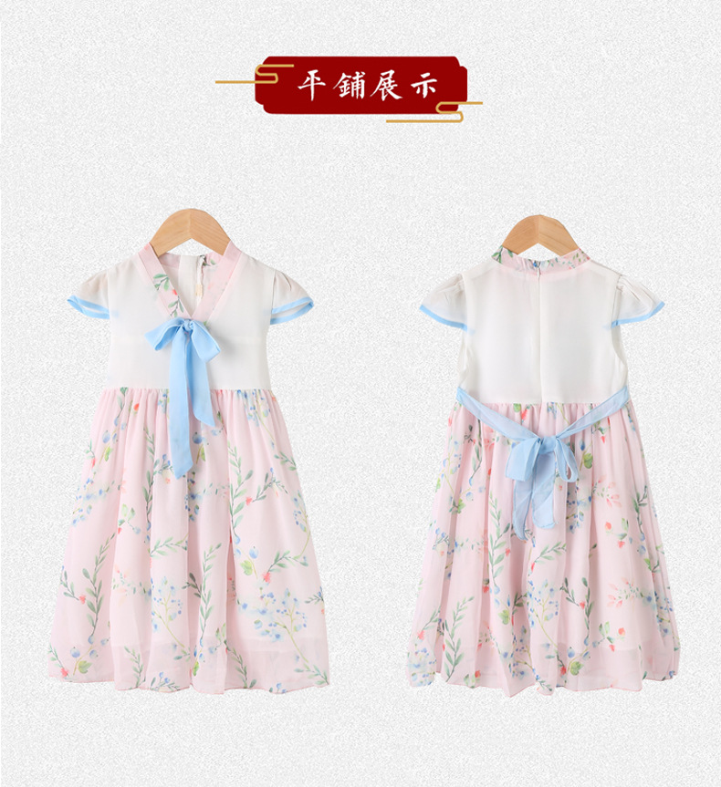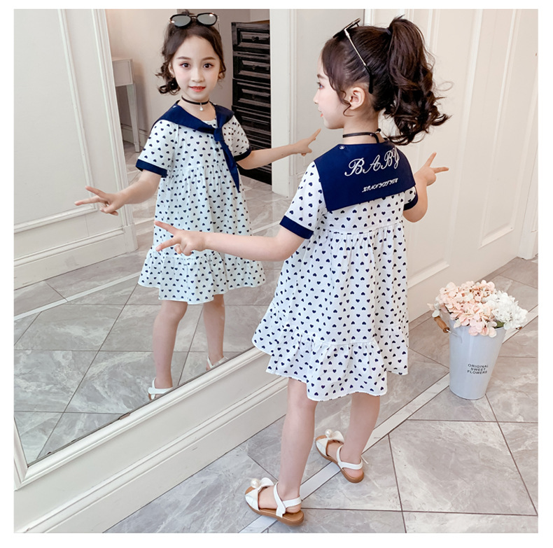 XR-2020新款时尚中大童花边领雪纺裙女孩洋气潮范