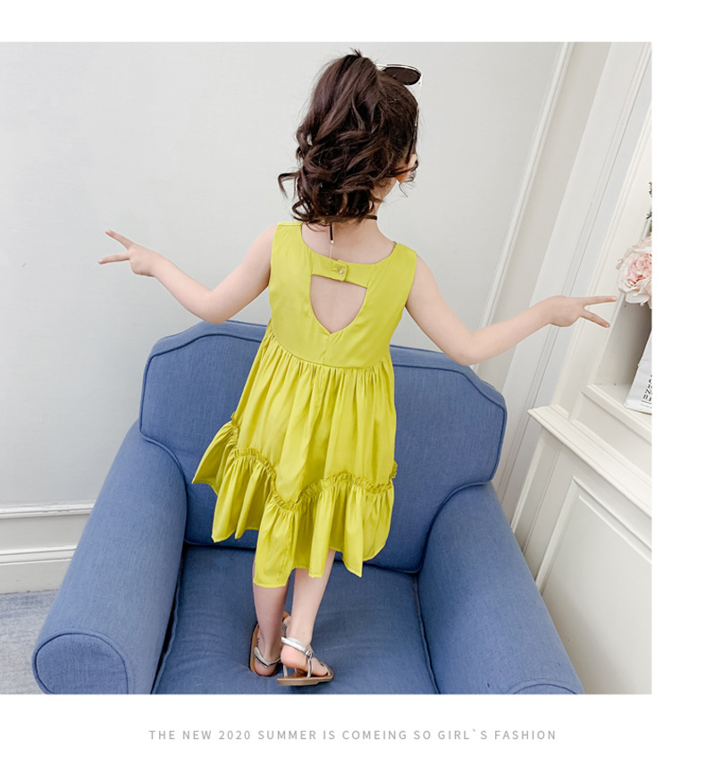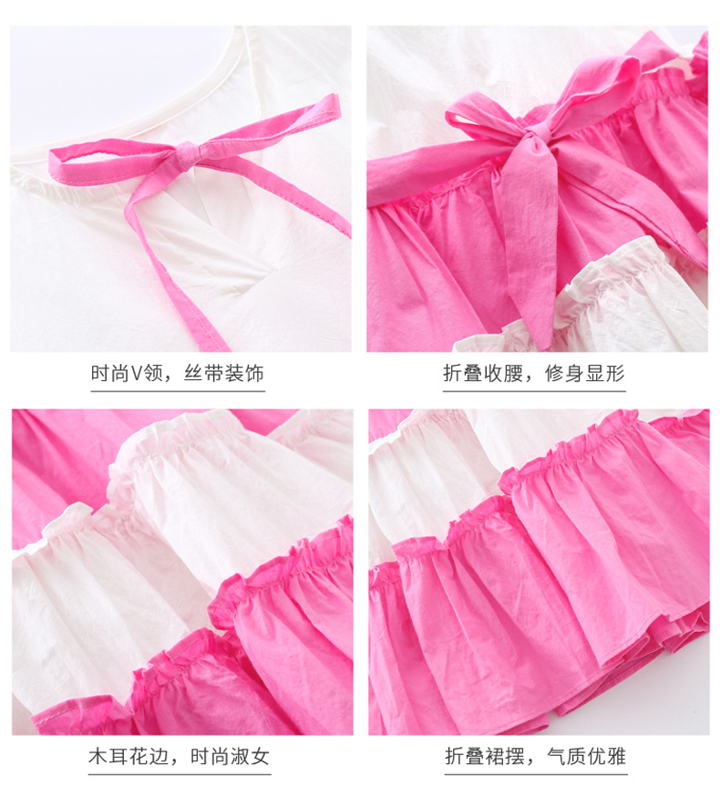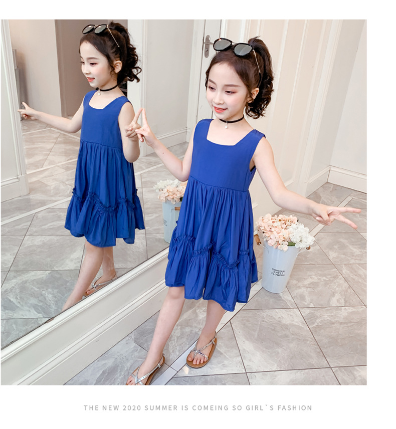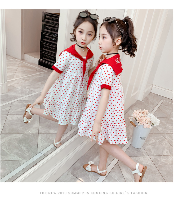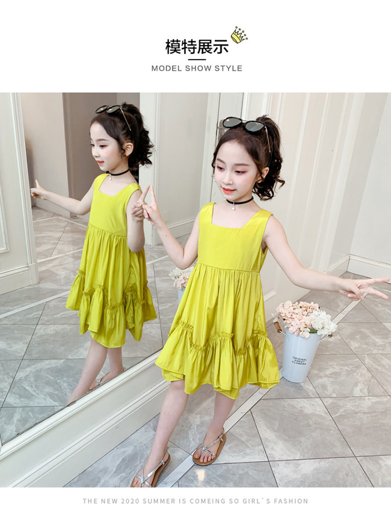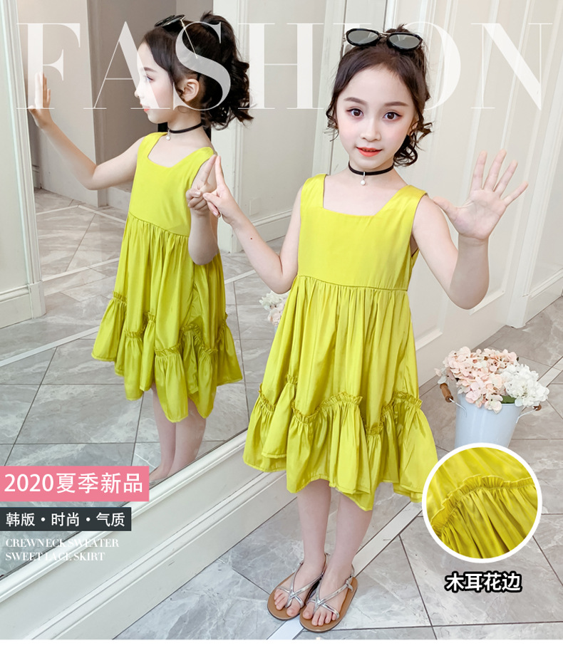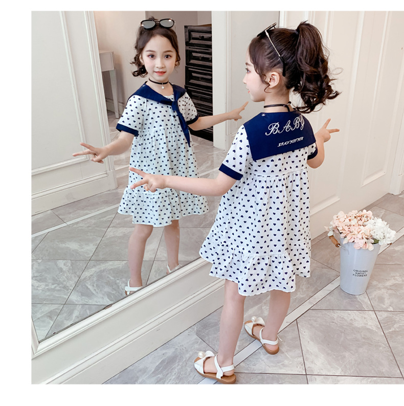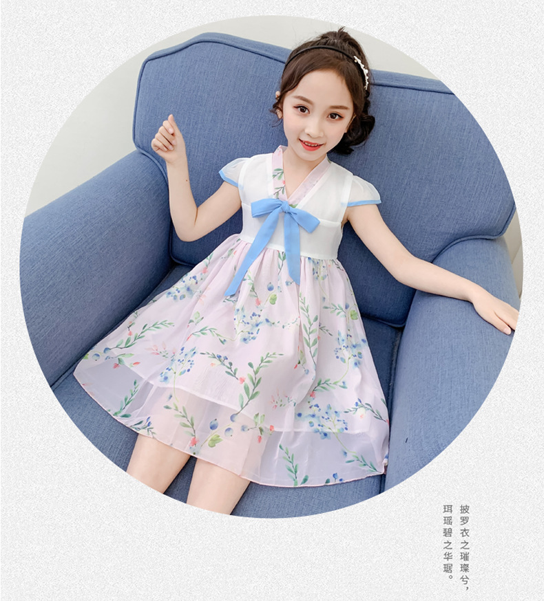 XR-2020新款时尚中大童花边领雪纺裙女孩洋气潮范