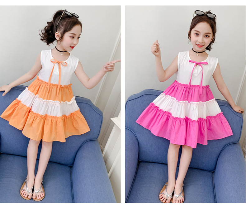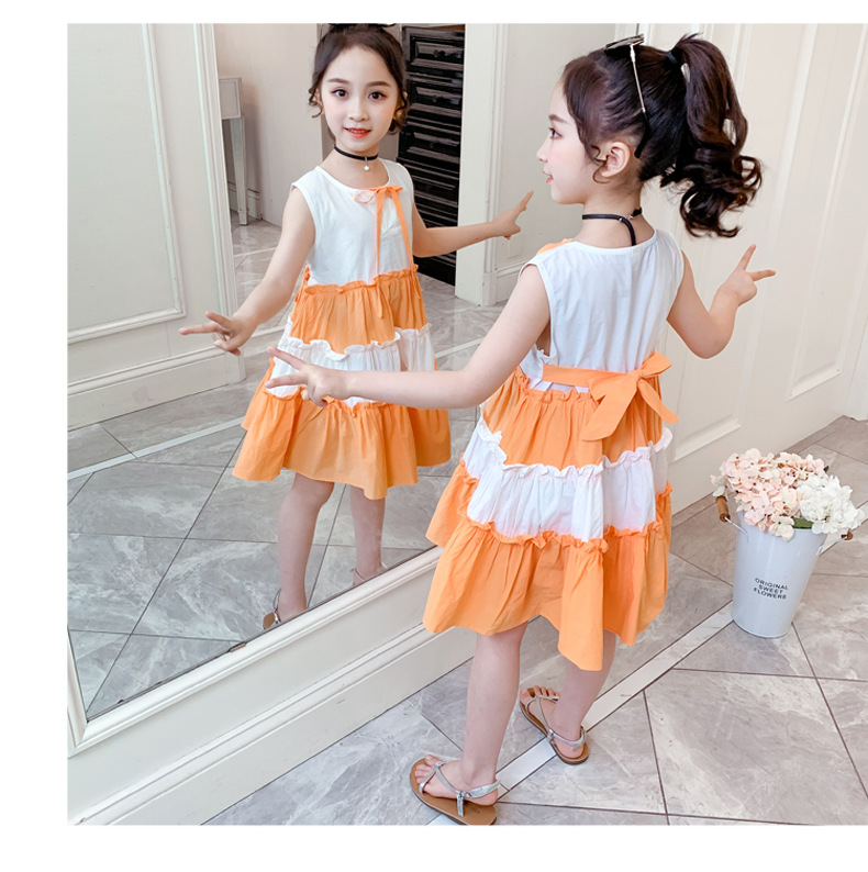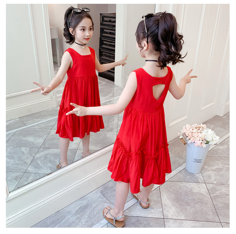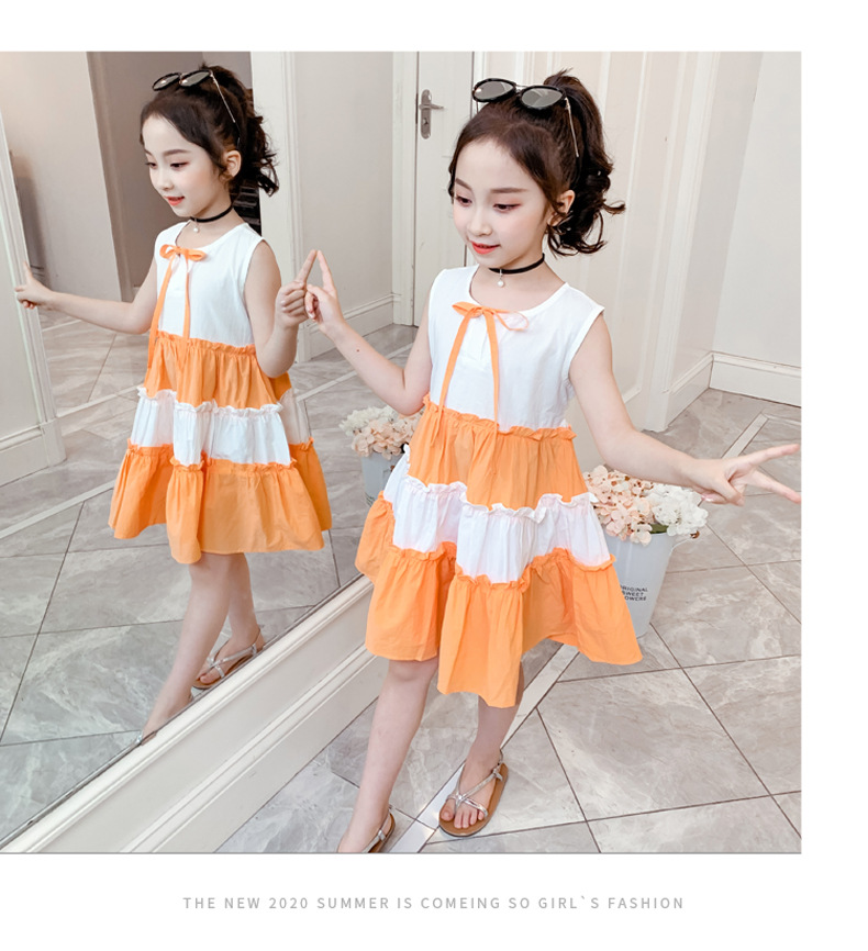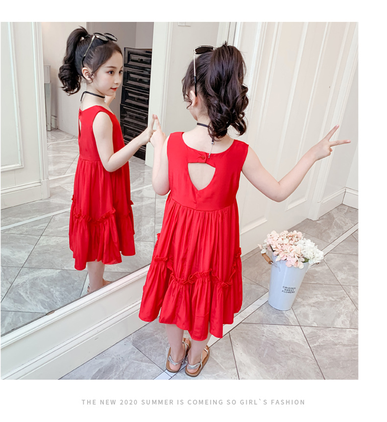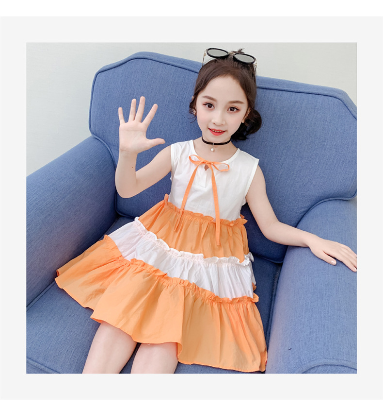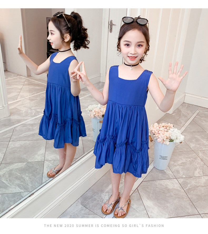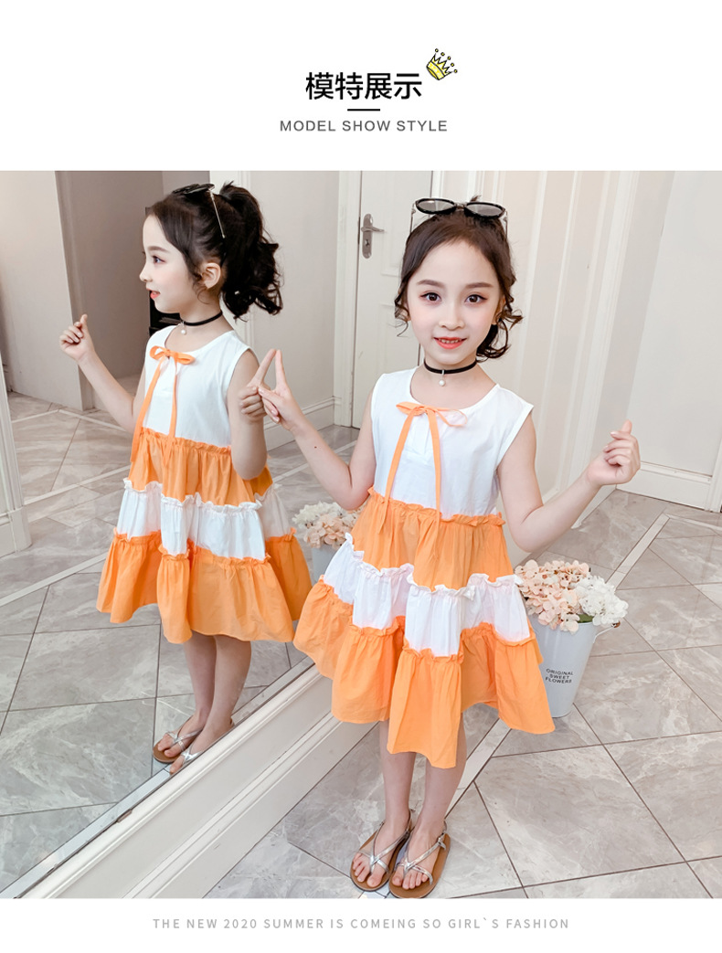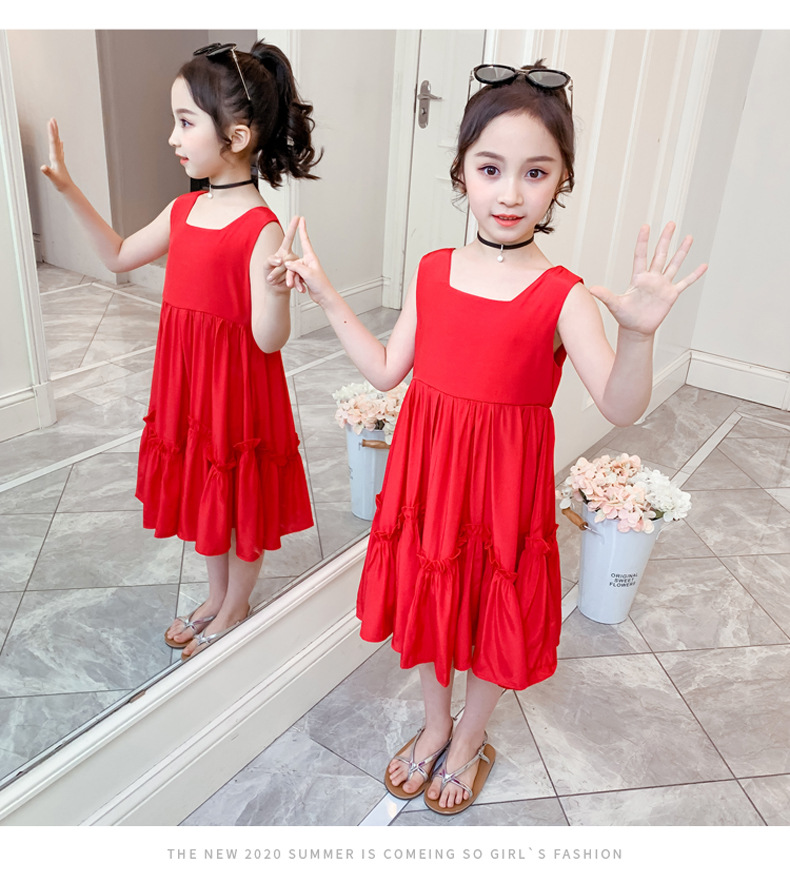 XR-2020新款时尚中大童花边领雪纺裙女孩洋气潮范