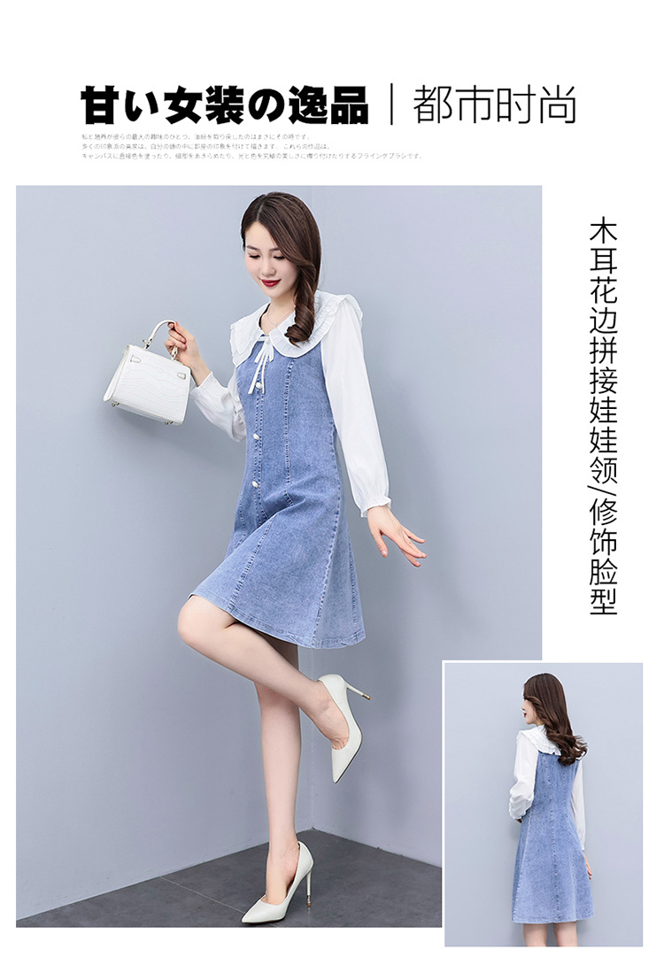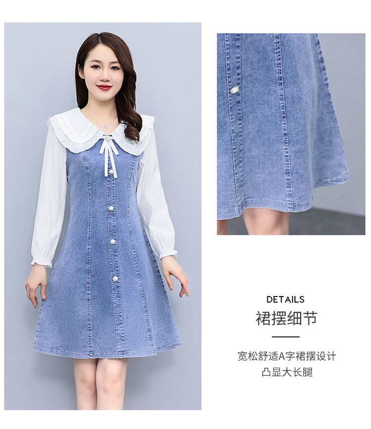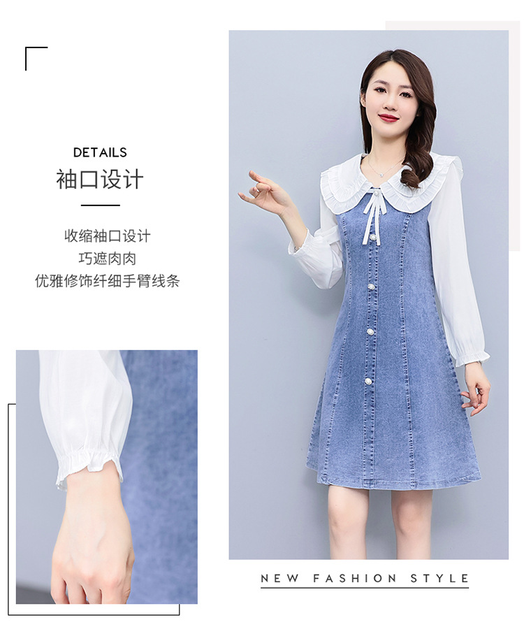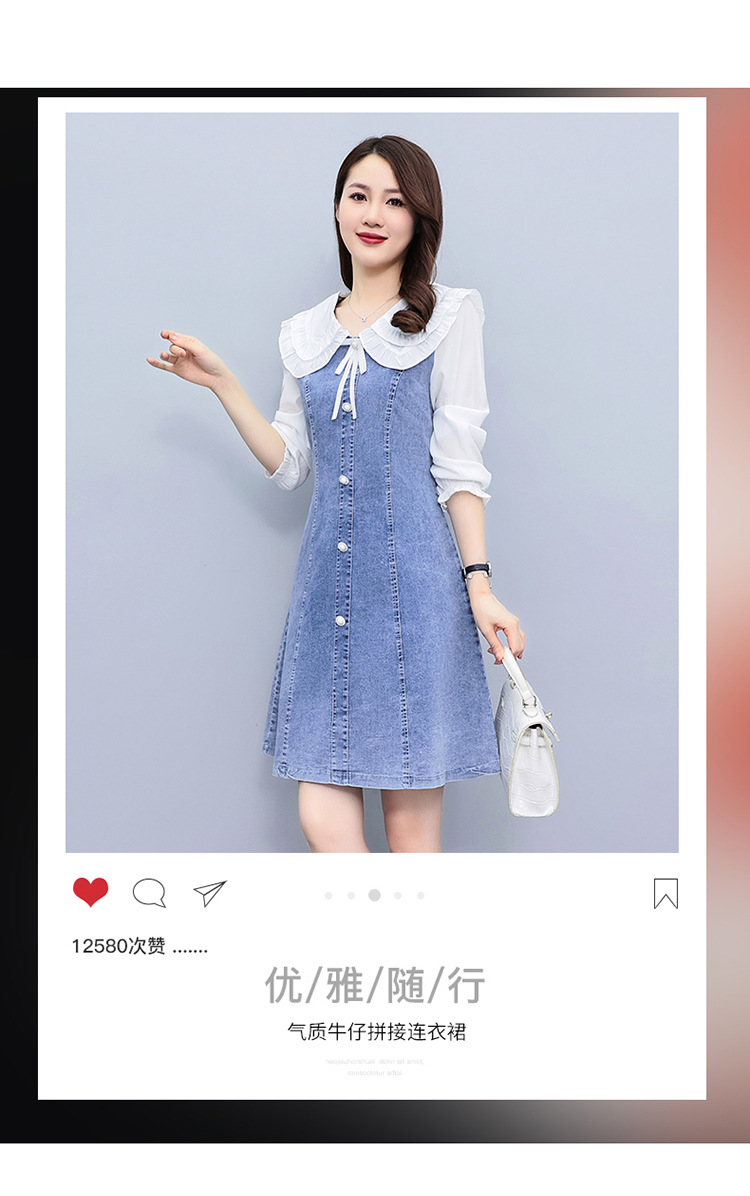 今年流行显瘦小个子薄款秋季长袖拼接牛仔裙HR-WW25189