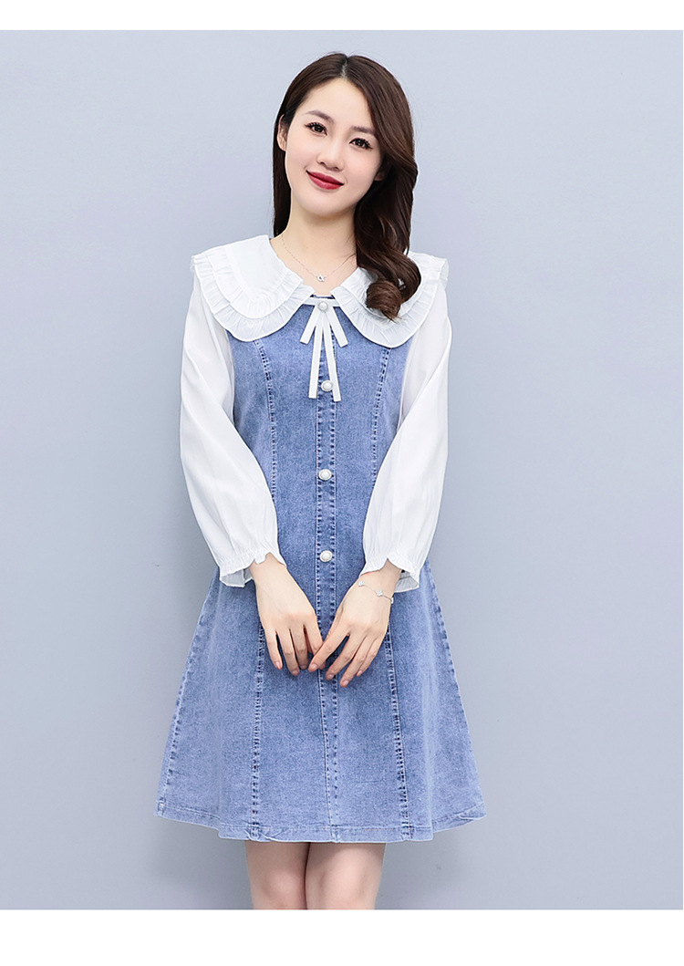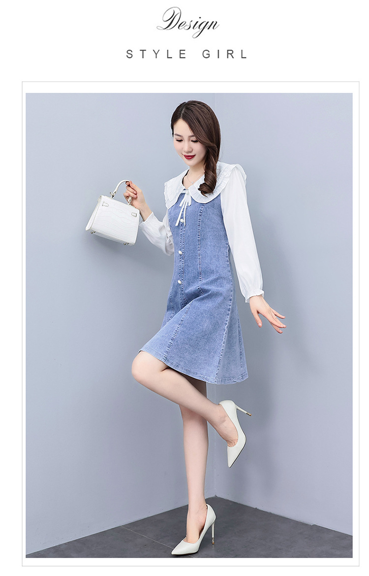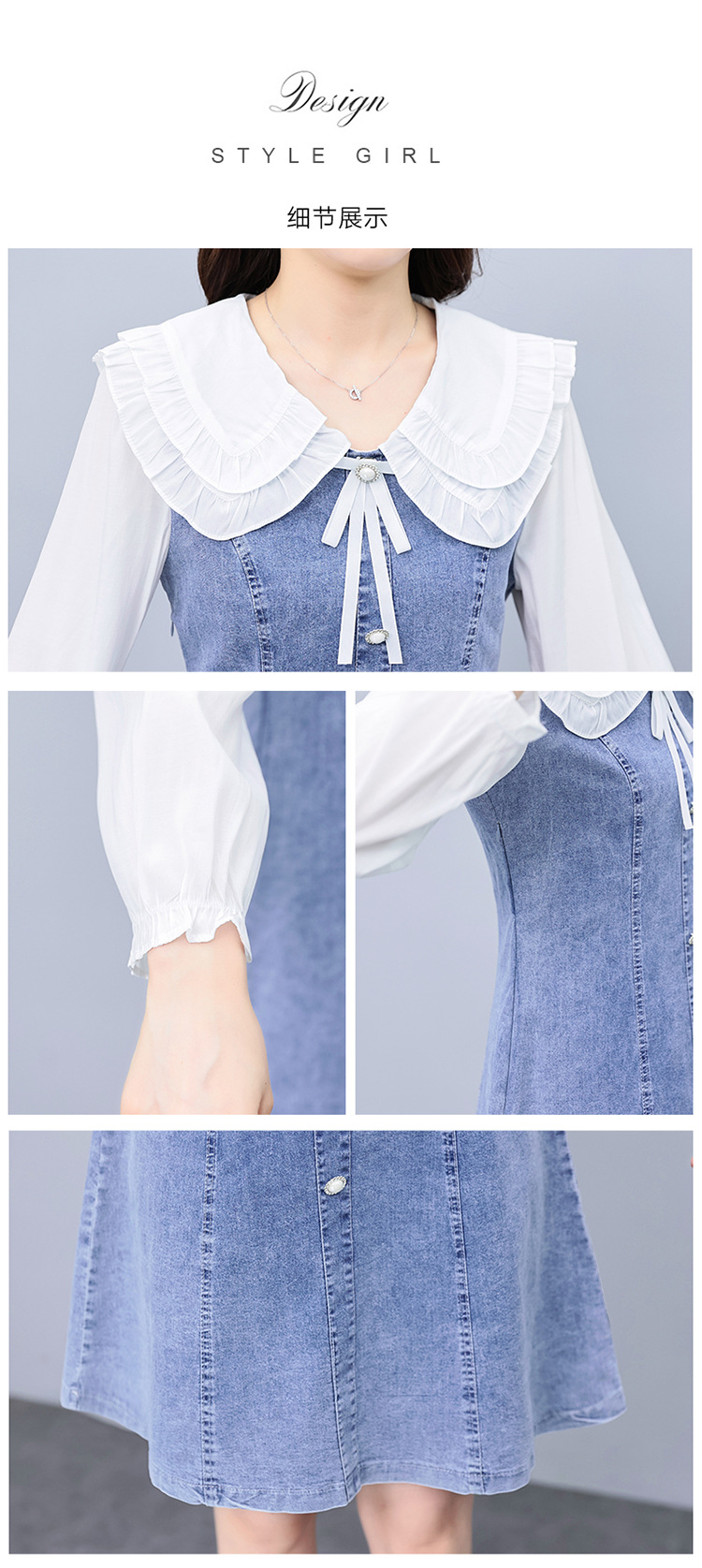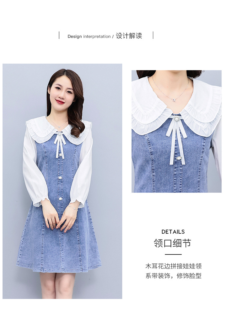 今年流行显瘦小个子薄款秋季长袖拼接牛仔裙HR-WW25189