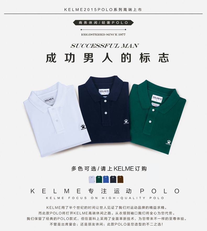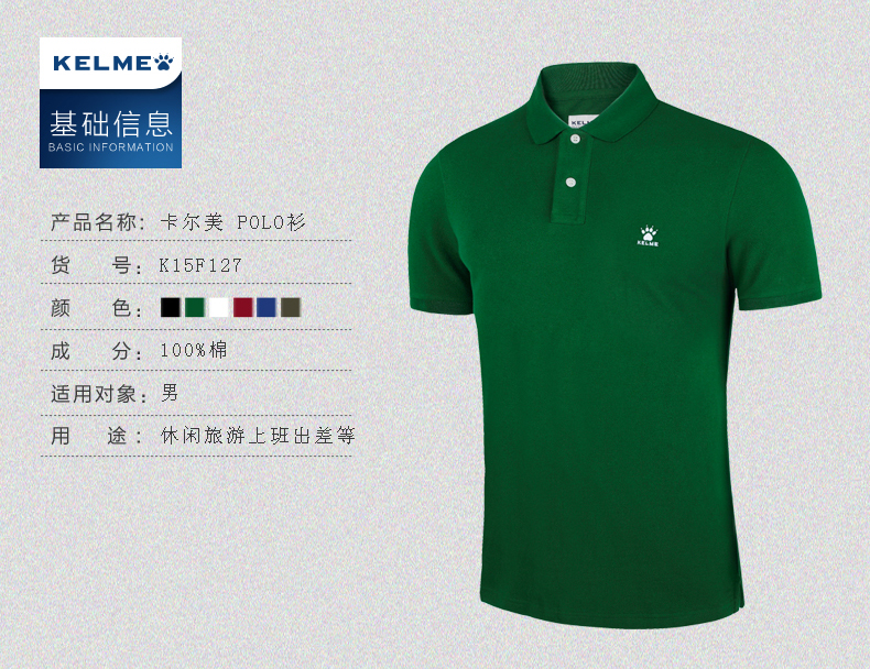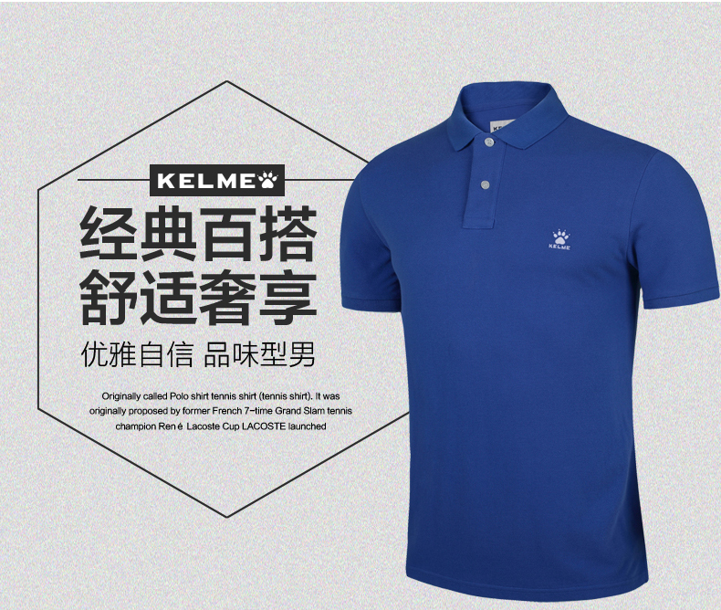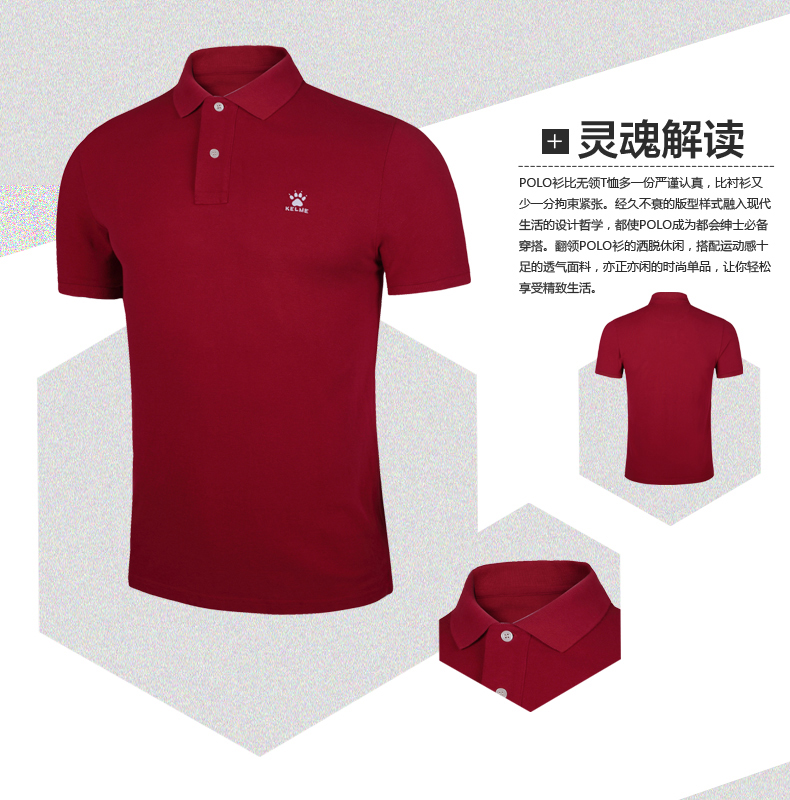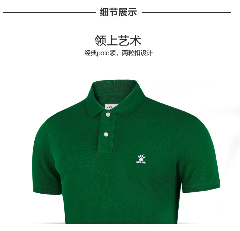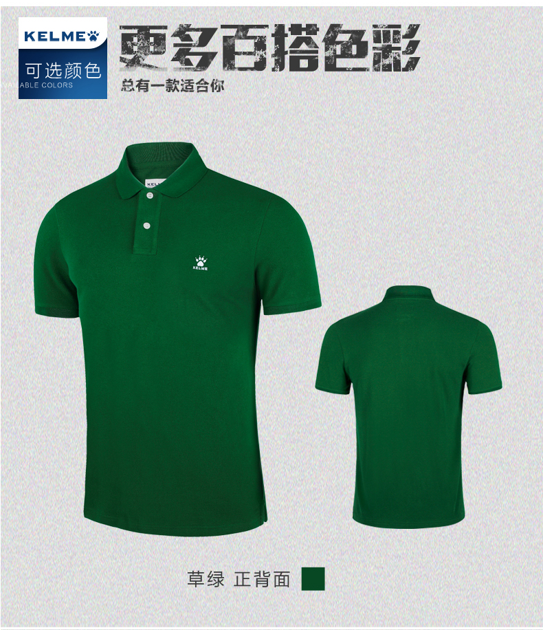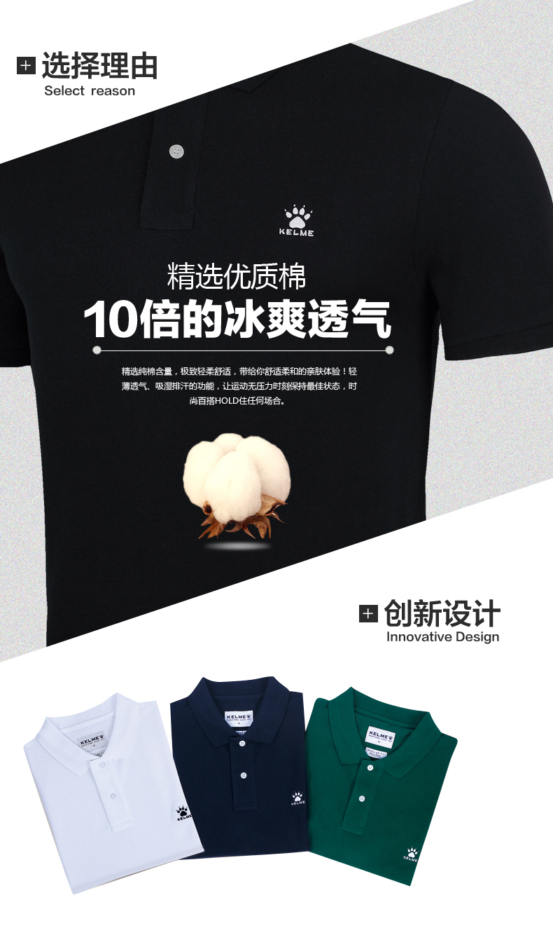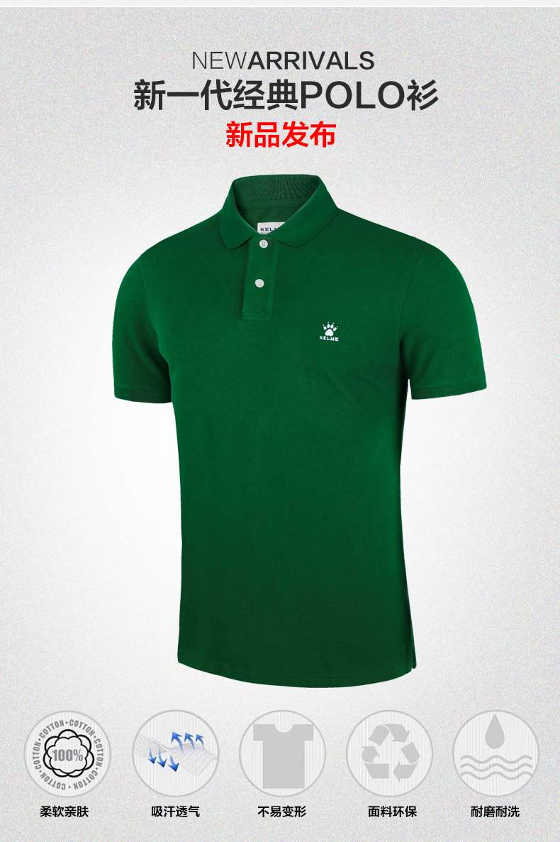 KELME卡尔美 夏季男士短袖纯棉纯色运动POLO衫翻领修身保罗T恤