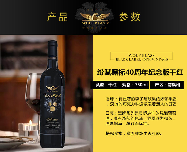 纷赋黑牌红葡萄酒(1箱6瓶装)澳洲原瓶进口红酒