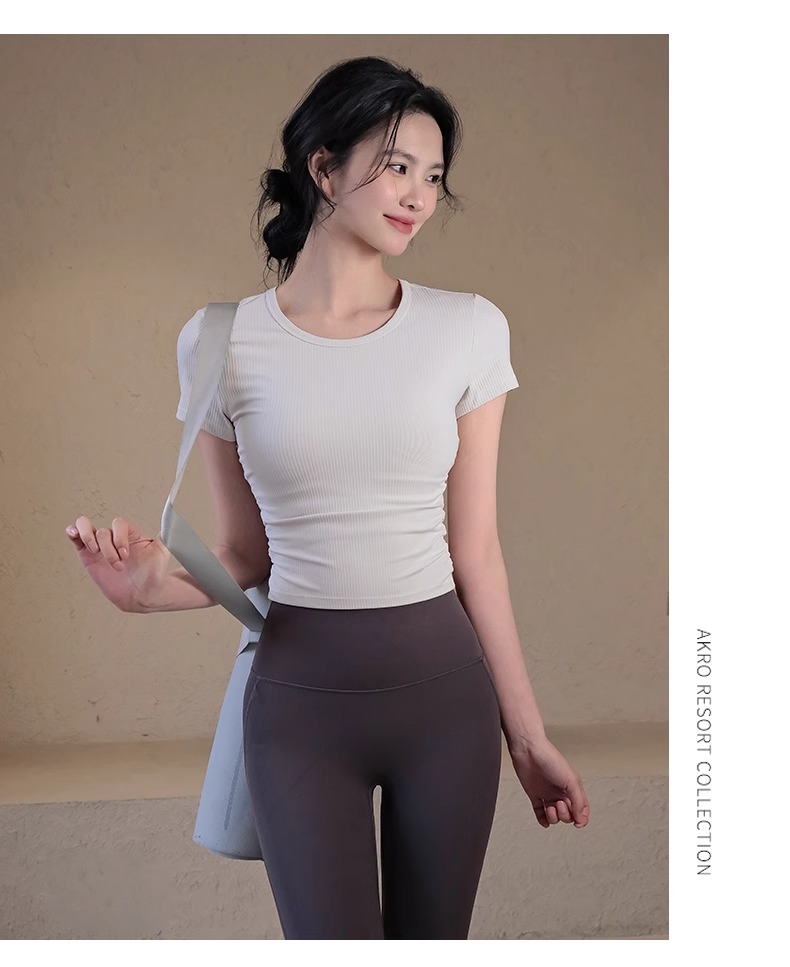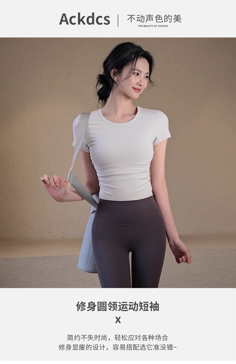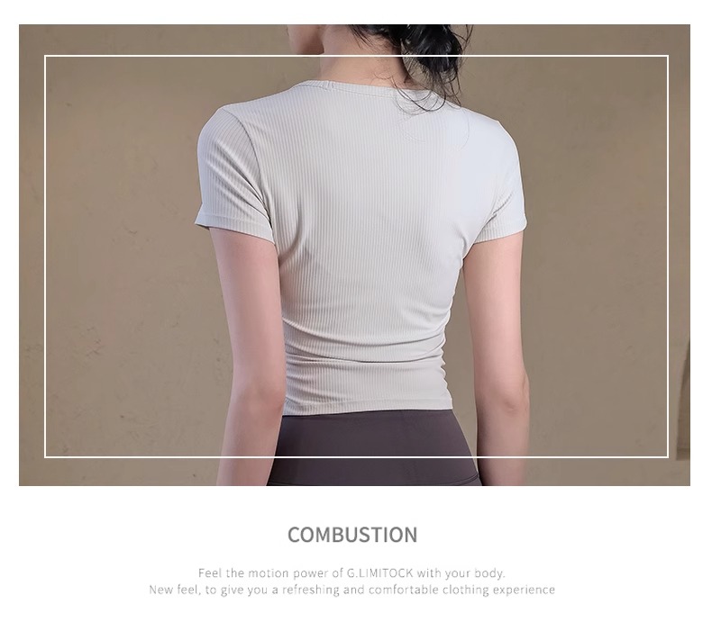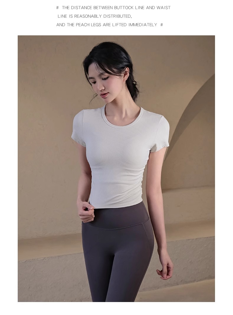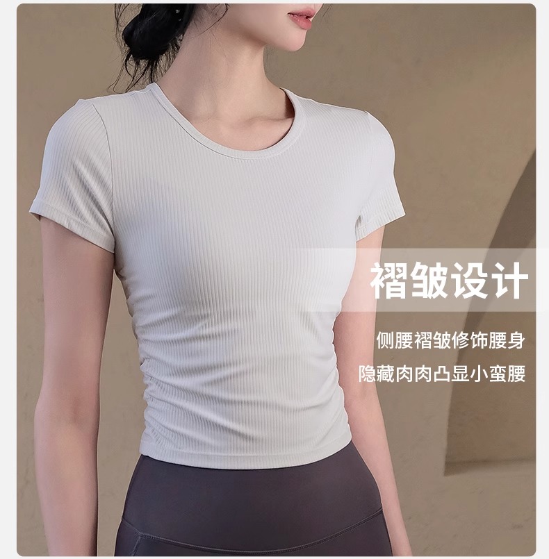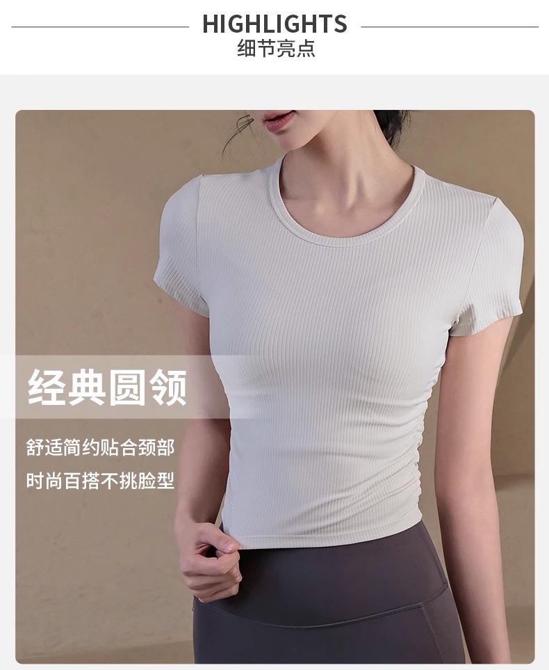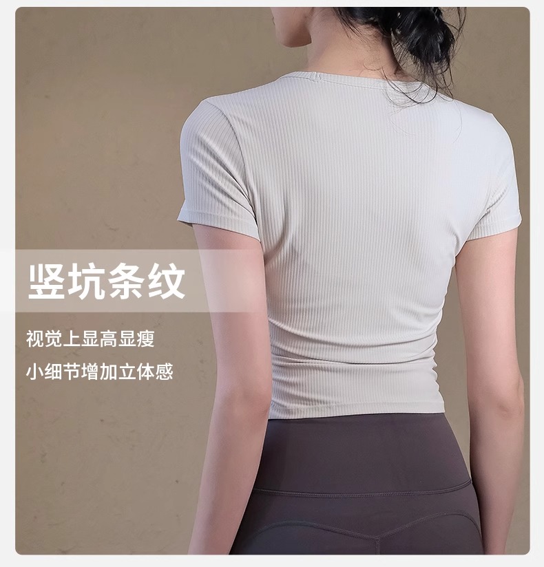 跃牌【瑜堂系列】条纹运动短袖t恤女新款透气健身短袖夏季显瘦瑜伽服上衣JYTD001