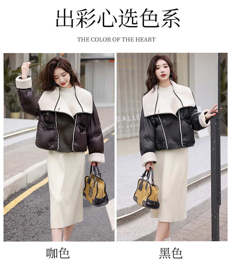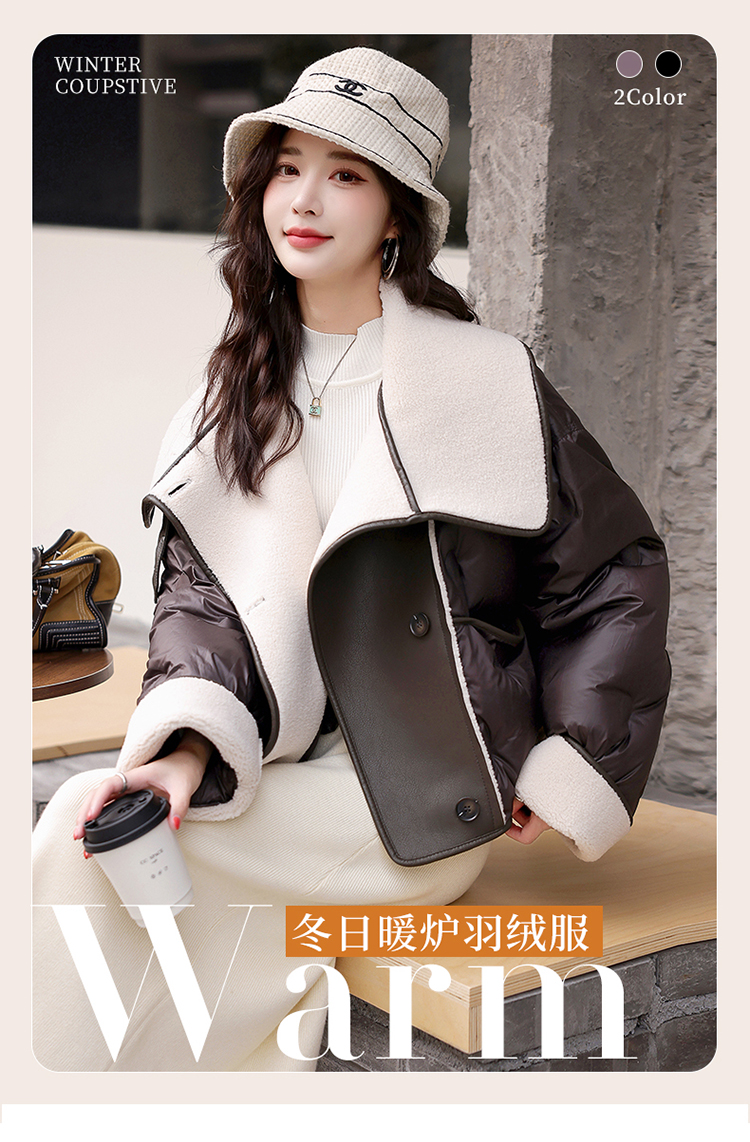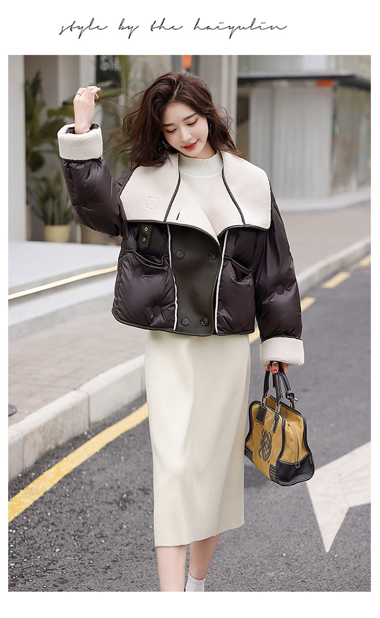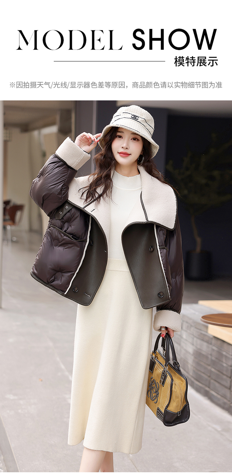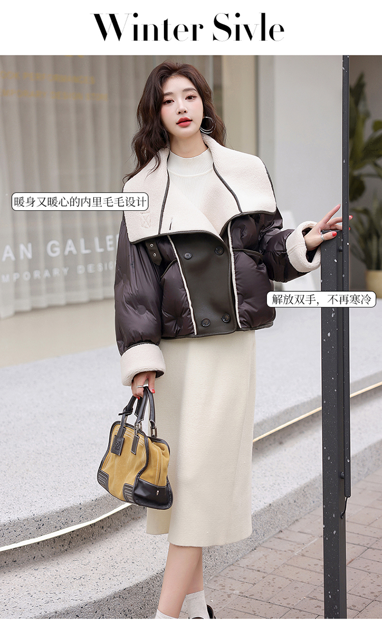 冬季新款,大翻领拼接皮衣保暖防风90羽绒服短外套HR-GYGM2398