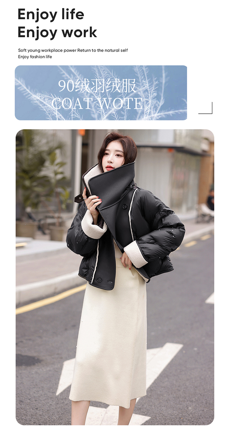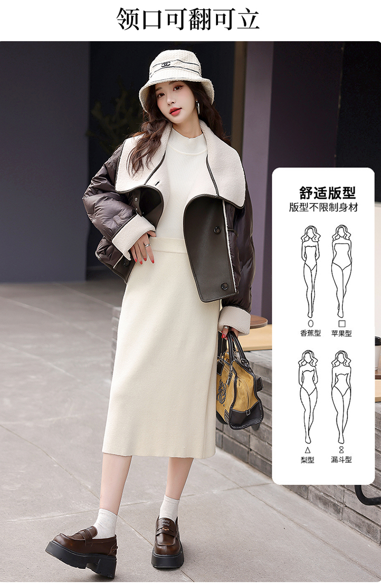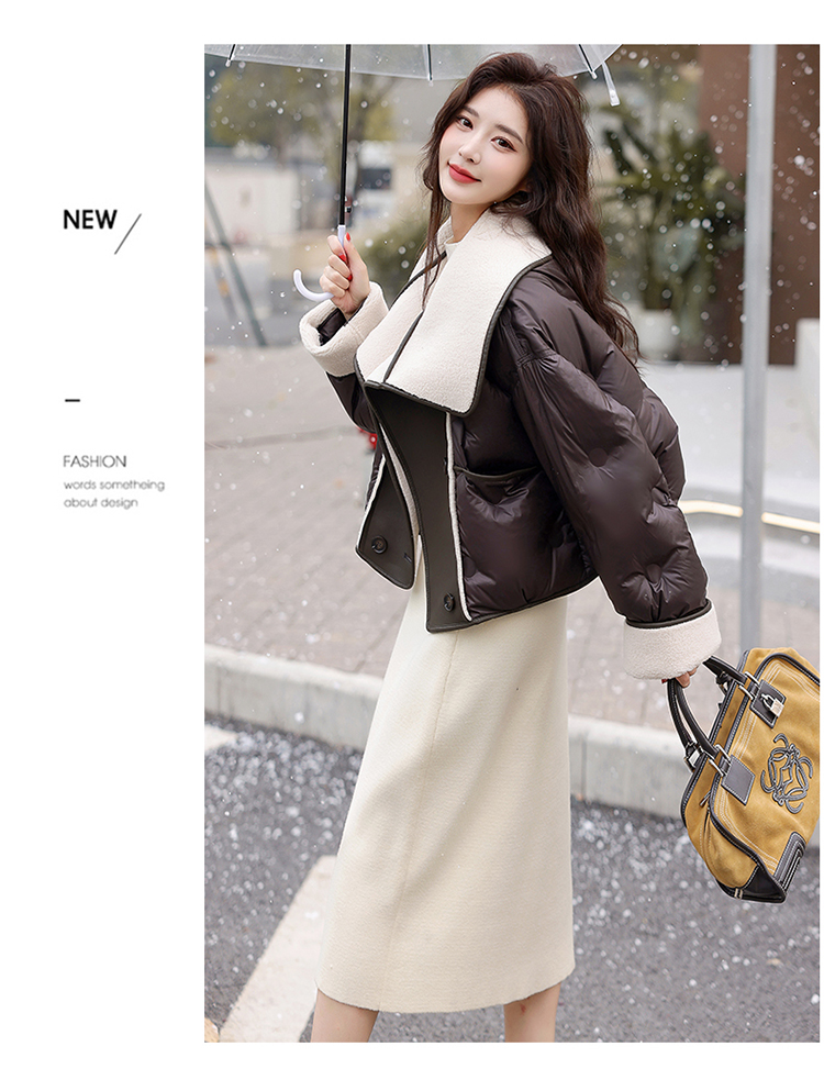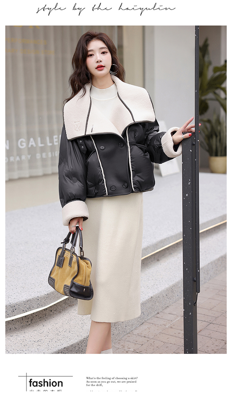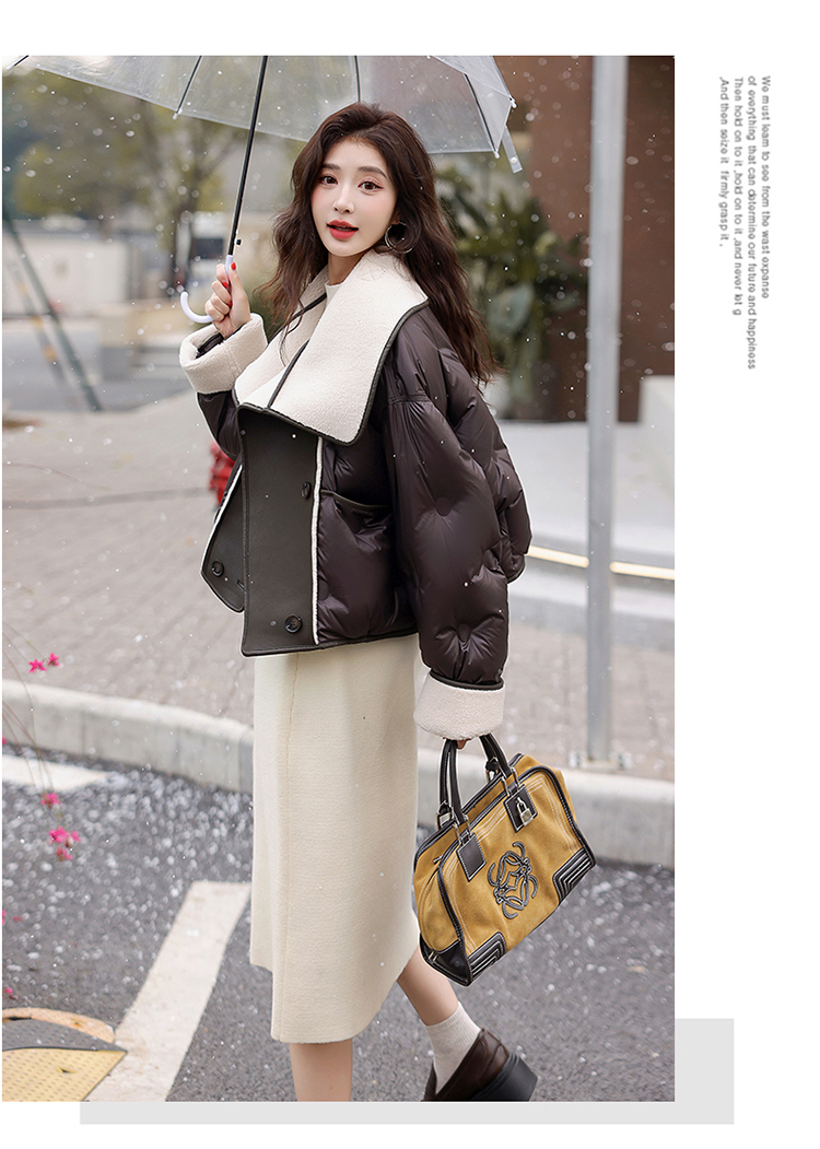 冬季新款,大翻领拼接皮衣保暖防风90羽绒服短外套HR-GYGM2398