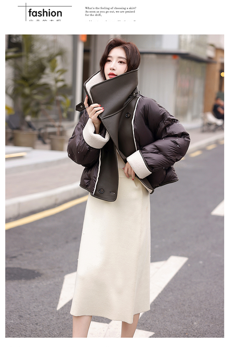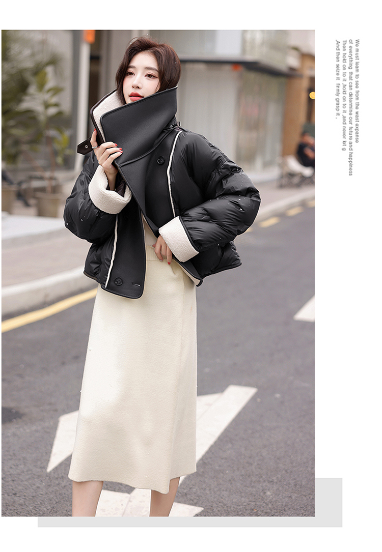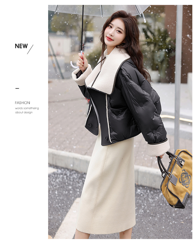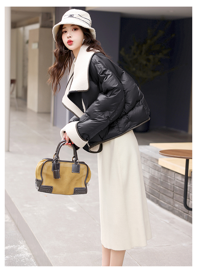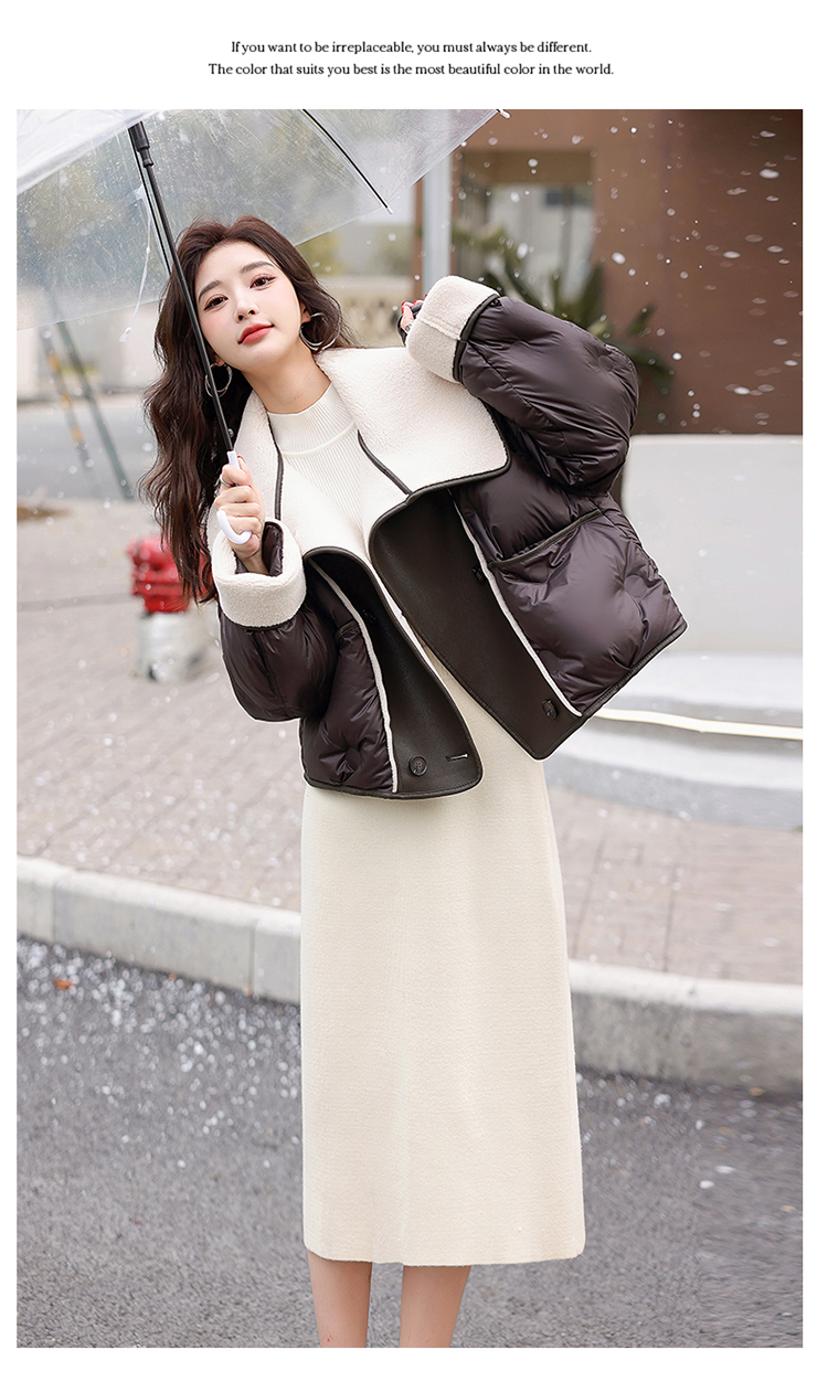 冬季新款,大翻领拼接皮衣保暖防风90羽绒服短外套HR-GYGM2398