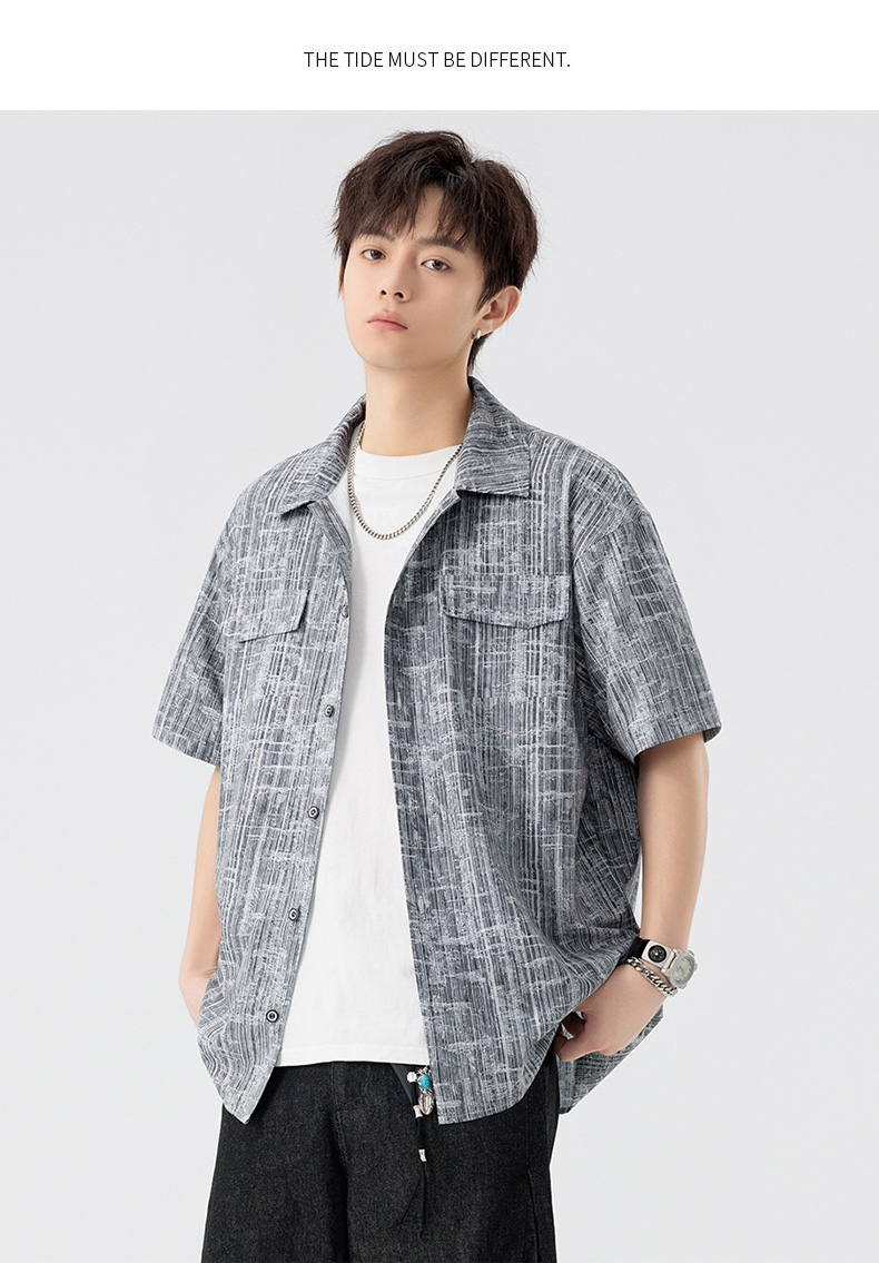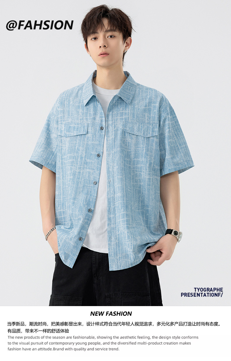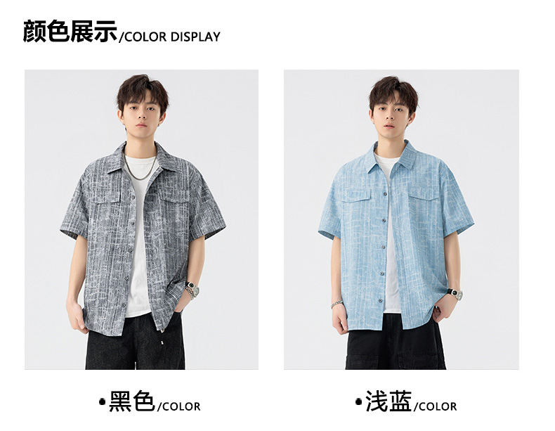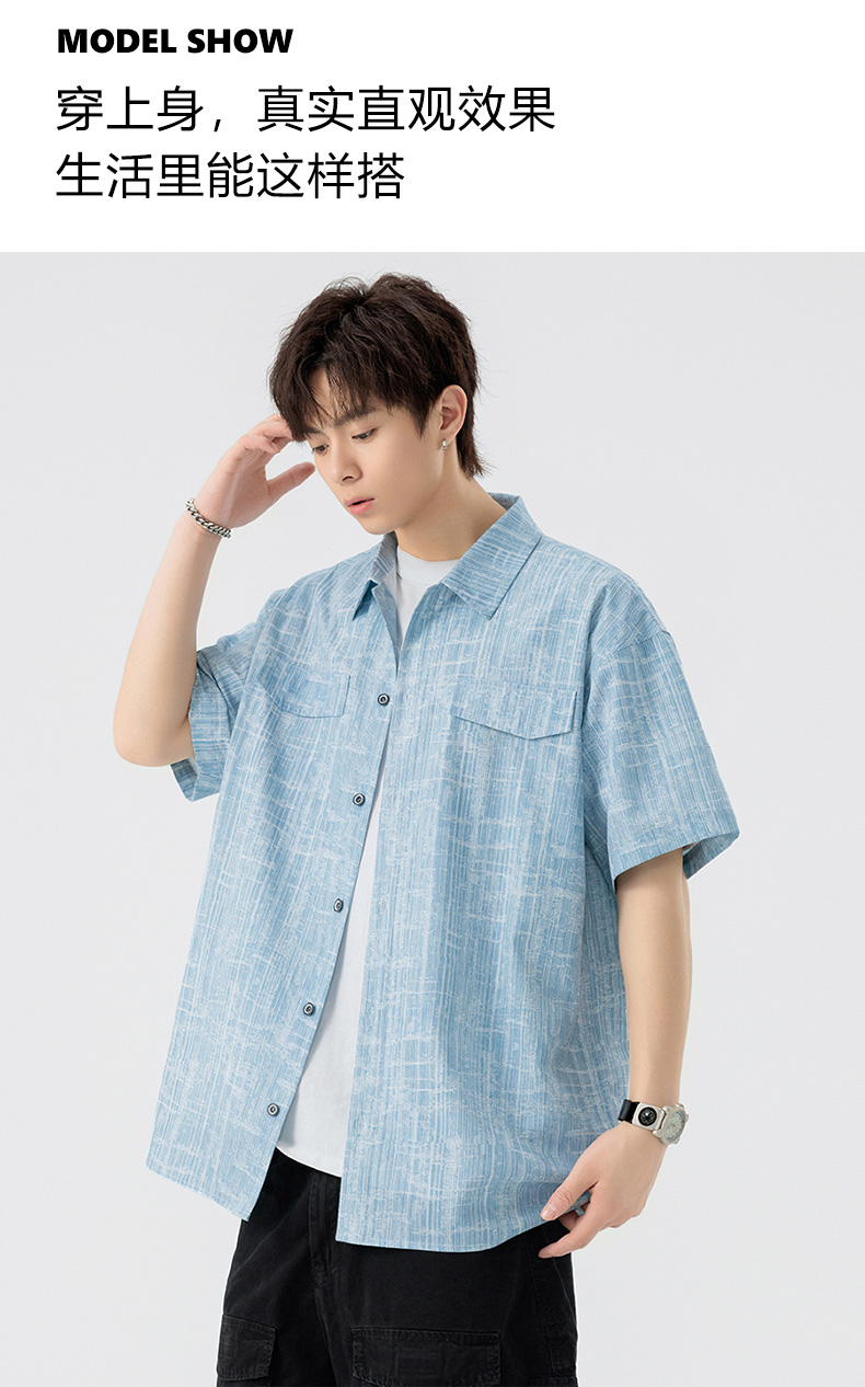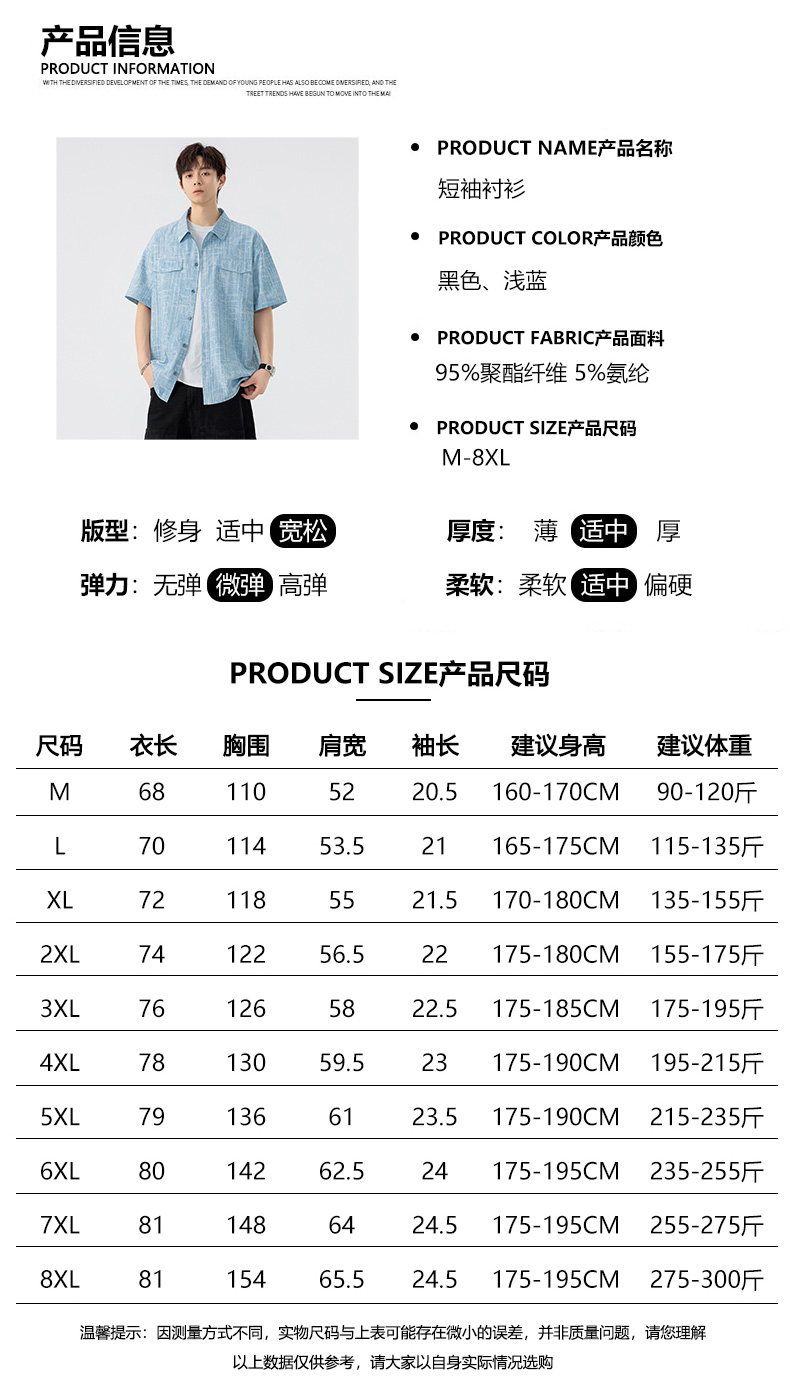 【DSL】大依优型大码翻领短袖衬衫夏季加肥加大肥佬休闲宽松透气弹力男装上衣潮款 商品图7