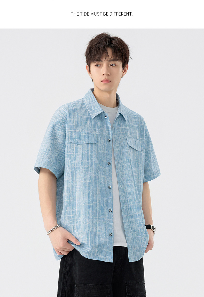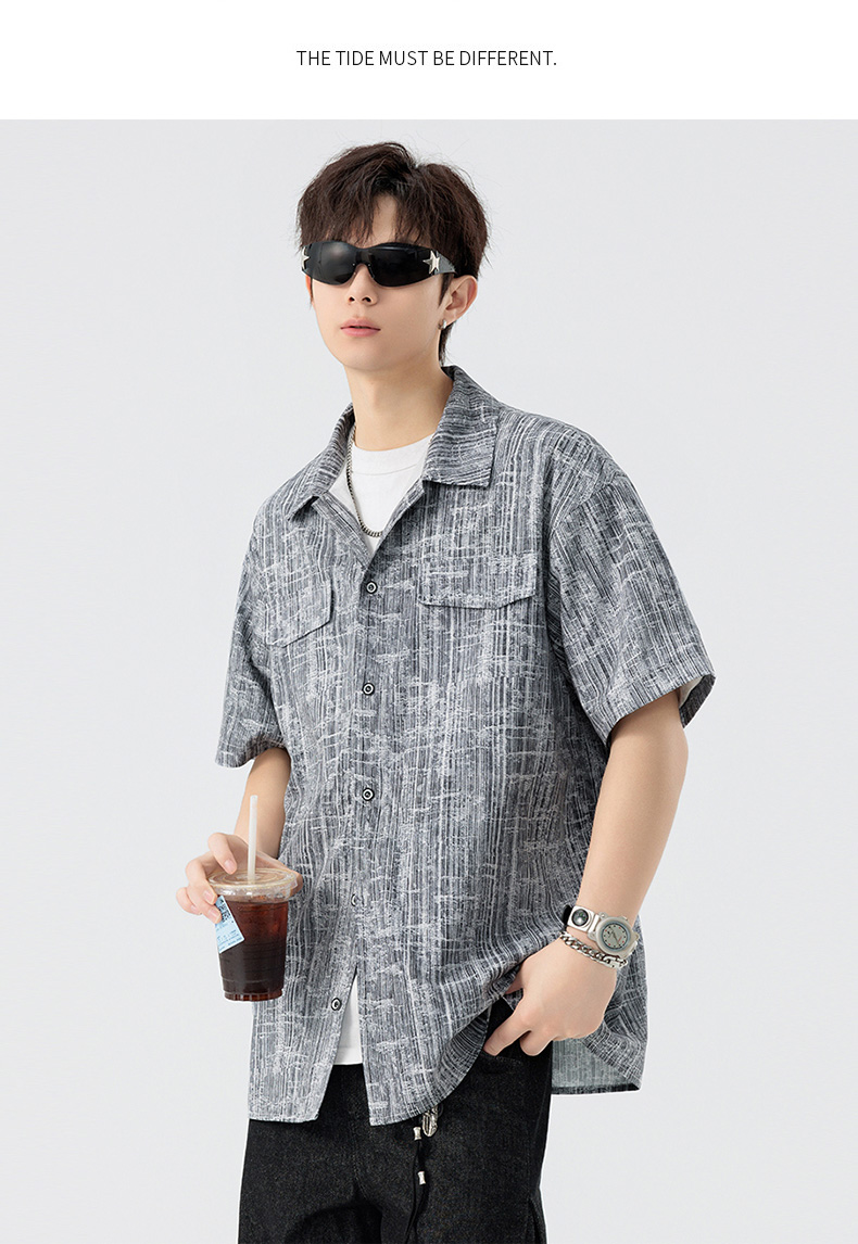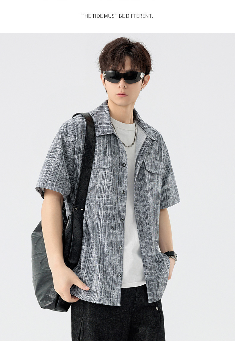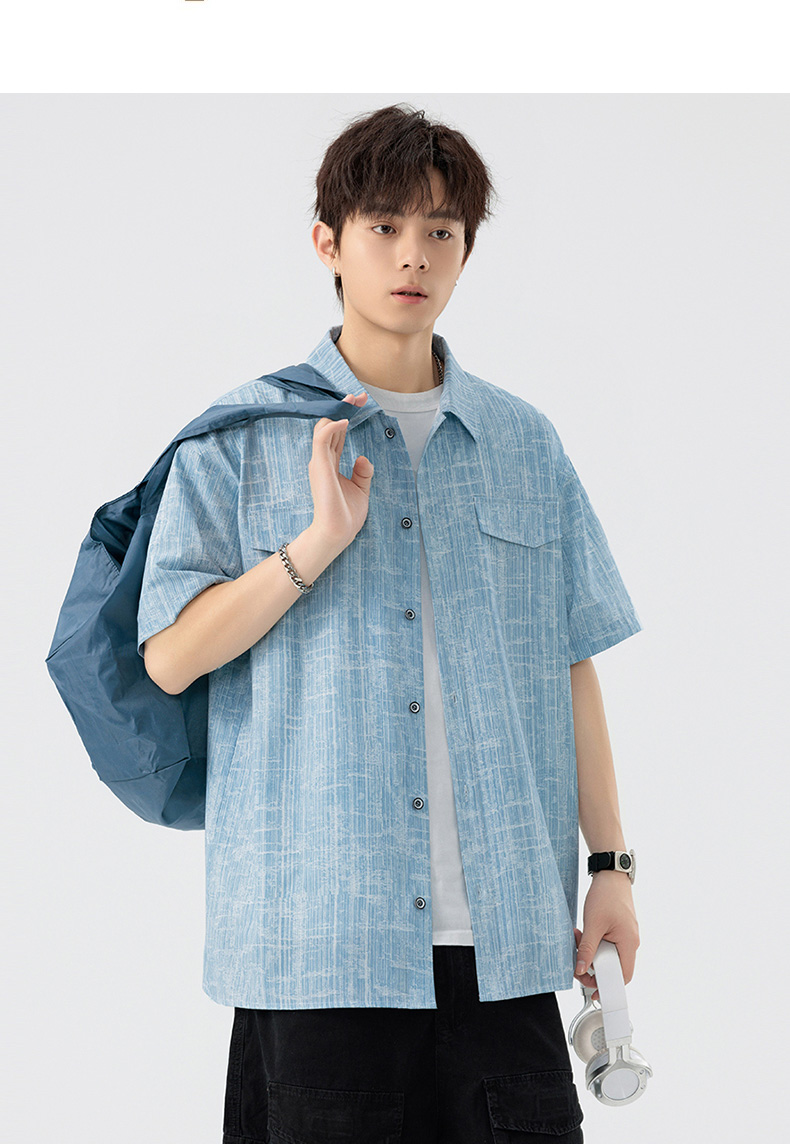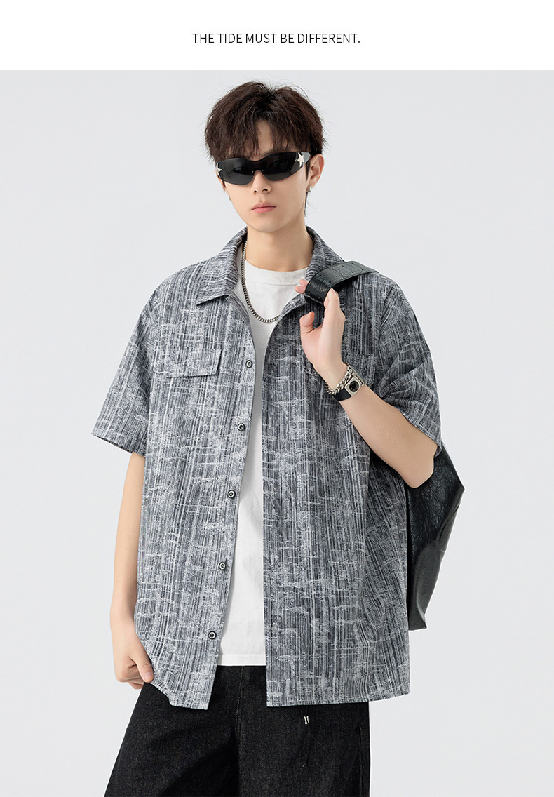 【DSL】大依优型大码翻领短袖衬衫夏季加肥加大肥佬休闲宽松透气弹力男装上衣潮款 商品图7