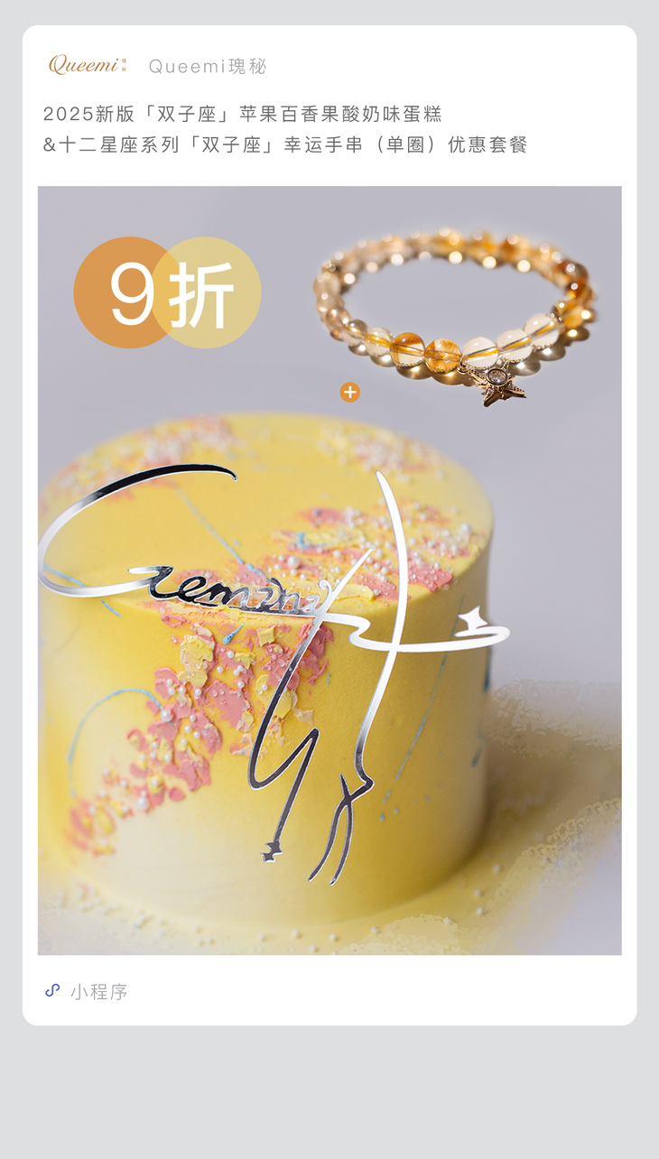 9折优惠,即将下架!2025新版「双子座」 苹果百香果酸奶味蛋糕&「双子座」手串
