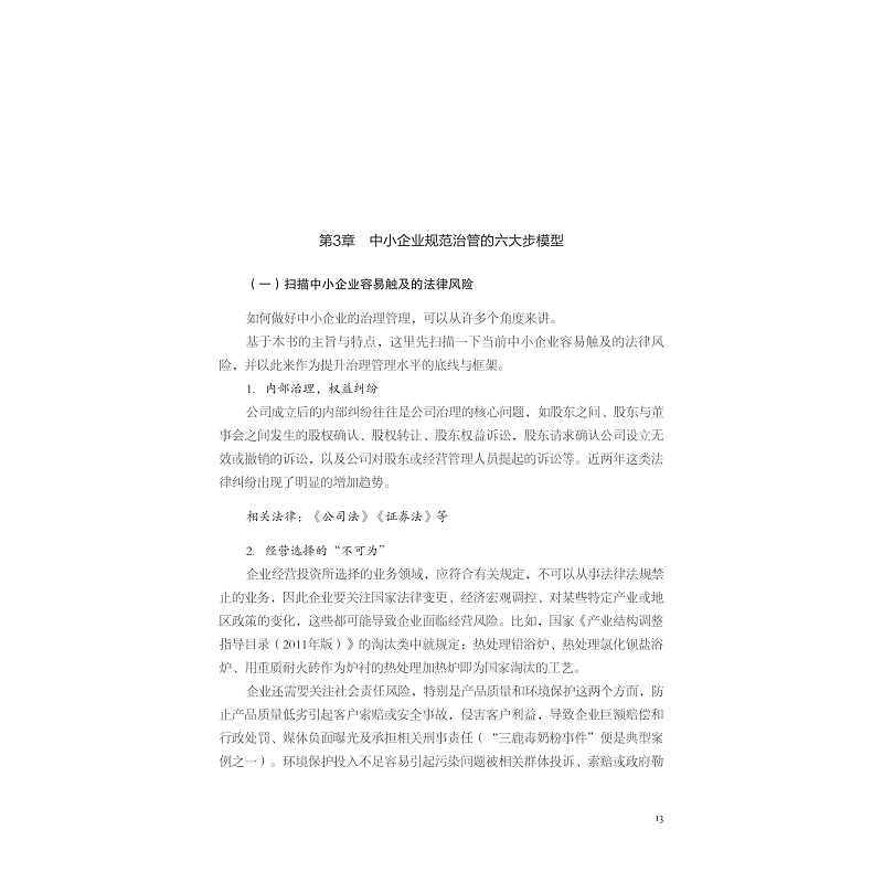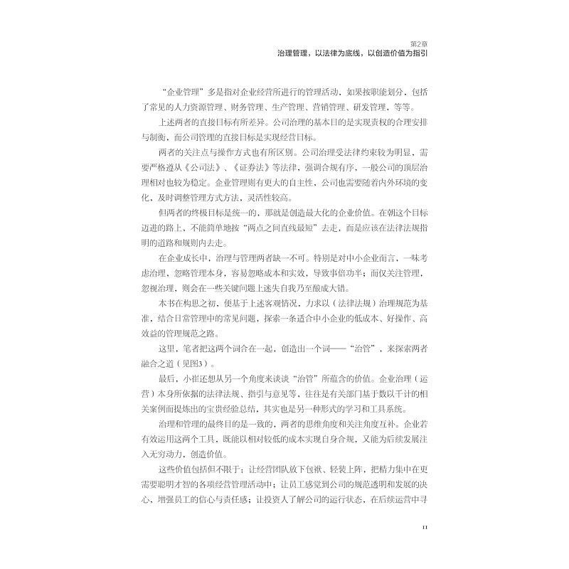 企业运营管理是一个系统的问题,要想同时玩转“规范”、“成本”、“发展”等多球,正确的决策与行为往往应该综合考虑法律、管理、资本等多个领域。在当前依法治国被提到极高层面、社会经济转型愈演愈烈、多层次资本市场建设加快等背景下,作为社会重要基石之一的广大中小企业,究竟如何在法律法规框架下,基于自身实际,开展规范的治理、管理以及转型,最终提升公司价值,这是非常有价值和实用的课题,也正是本书内容的重点所在。