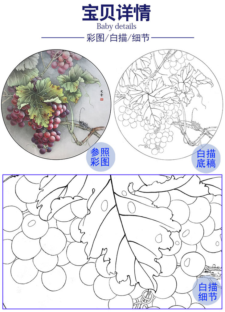 於文普工笔花鸟葡萄小品白描底稿-WP03