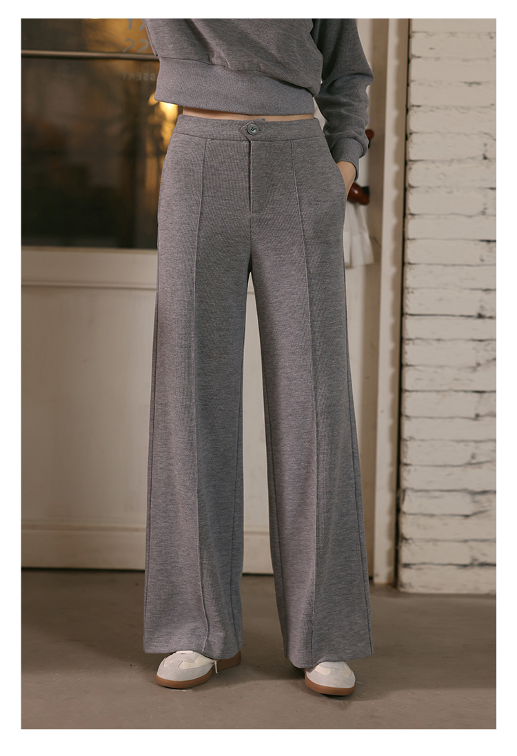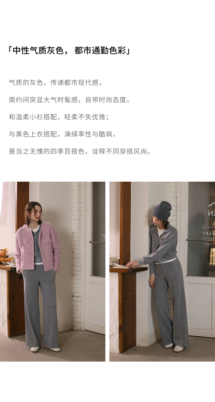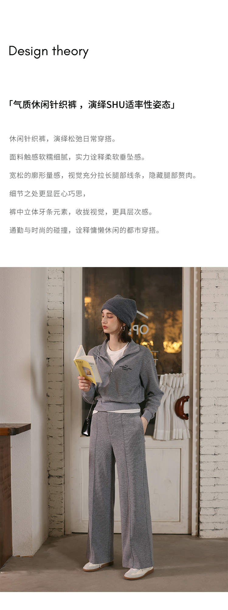 HeyDress灰色休闲裤女秋冬高腰宽松显瘦垂感针织阔腿裤百搭运动裤