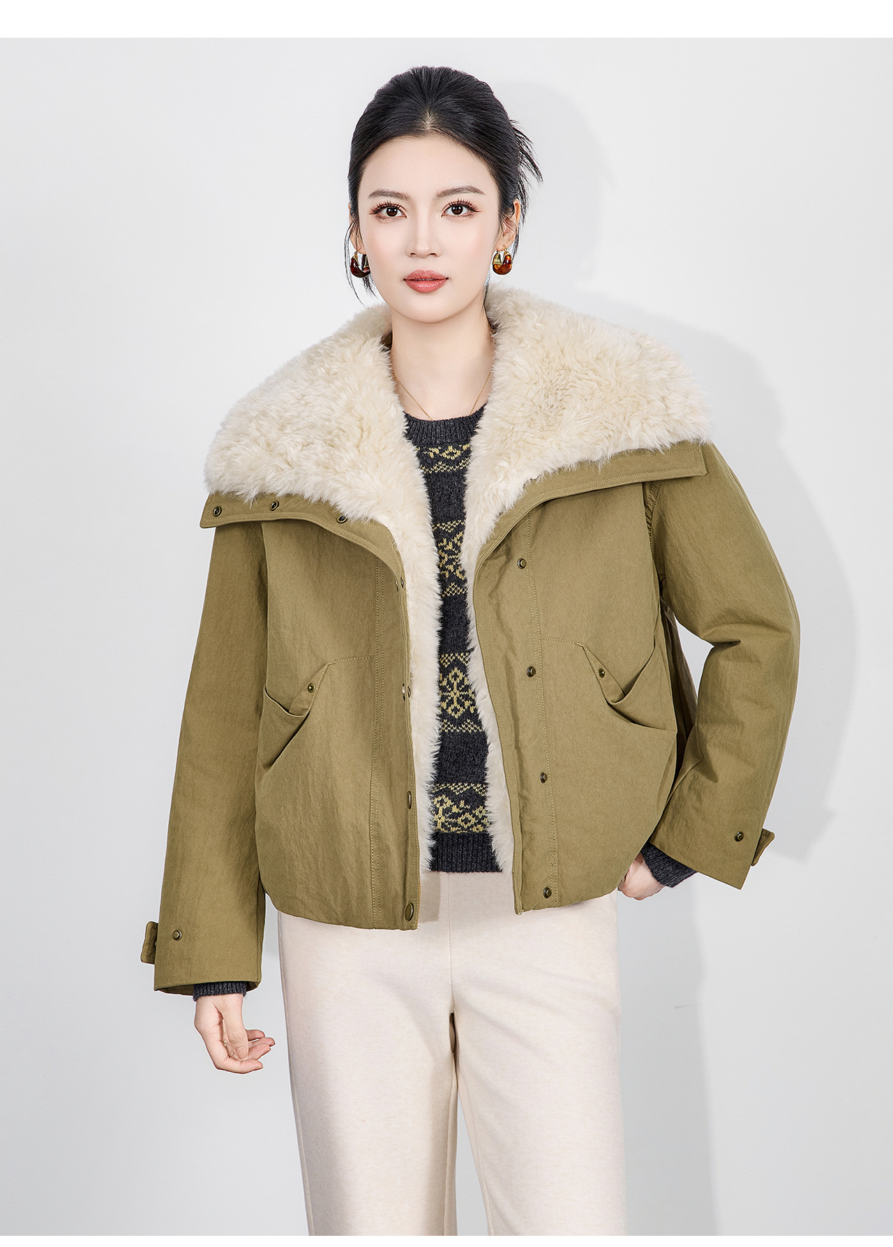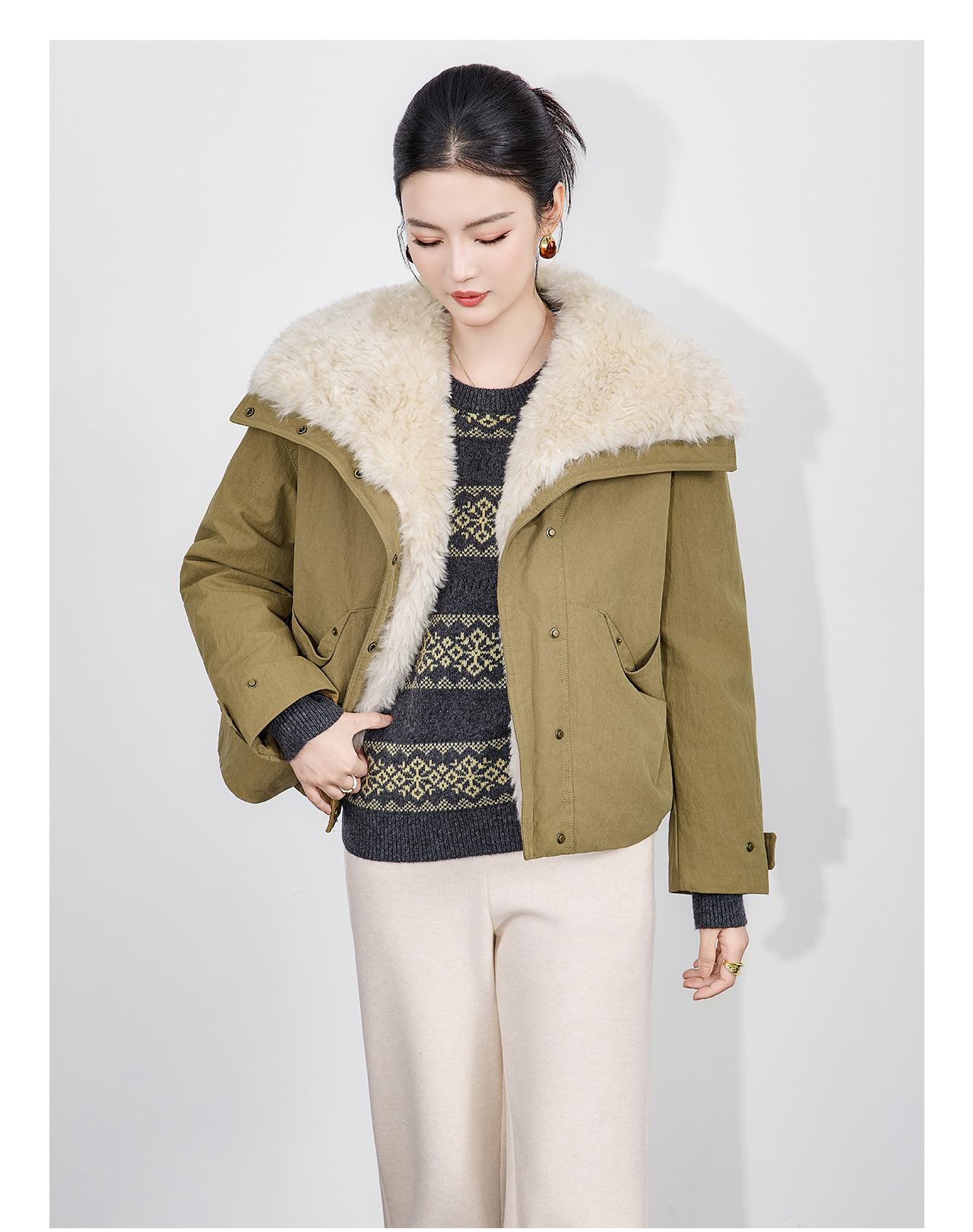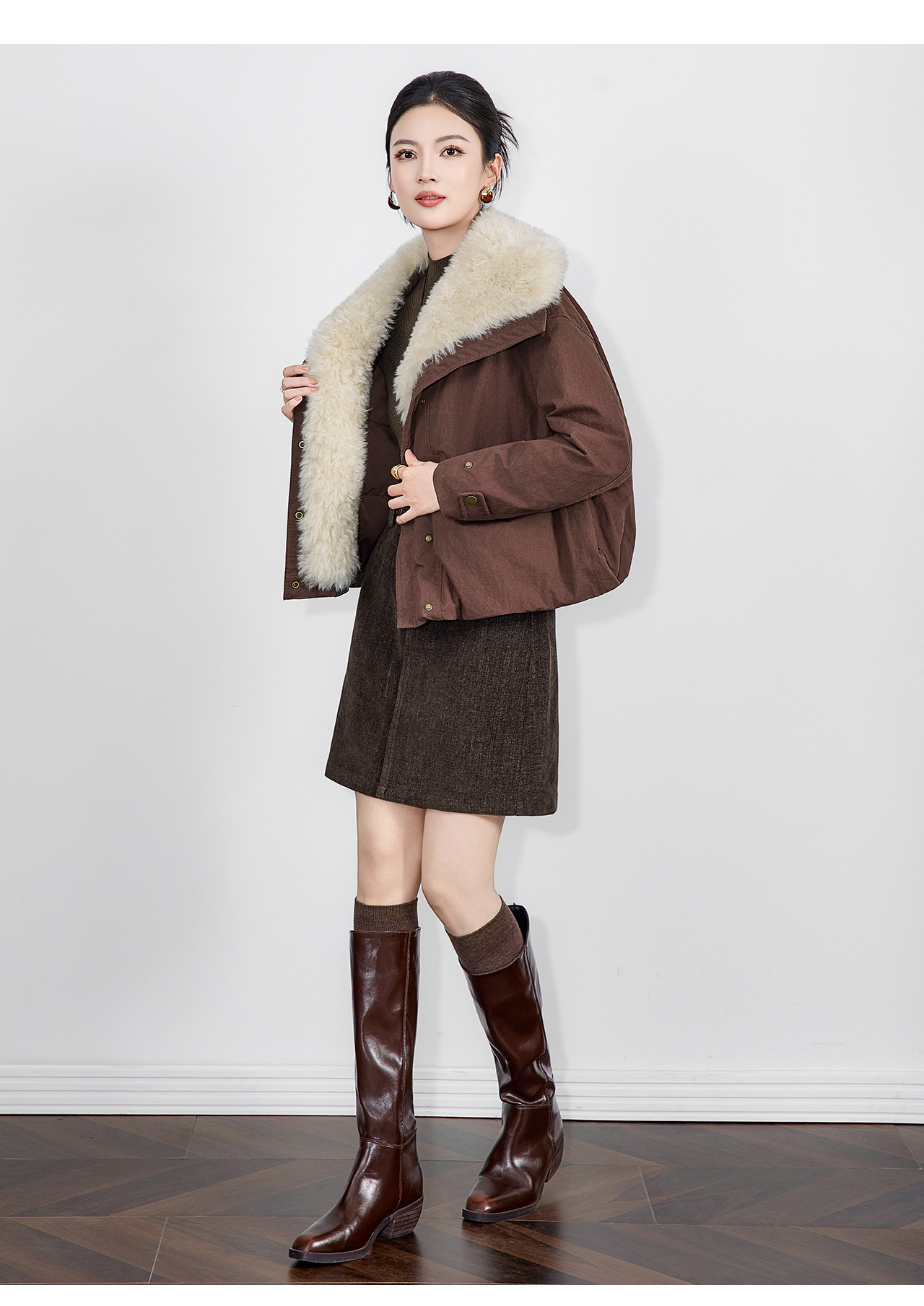 「高货wl」全新升级【铂金会员441/天猫589/差价148】(10037)洛诗琳复古毛翻领拼接羽绒服2025秋冬短款保暖加厚外套
