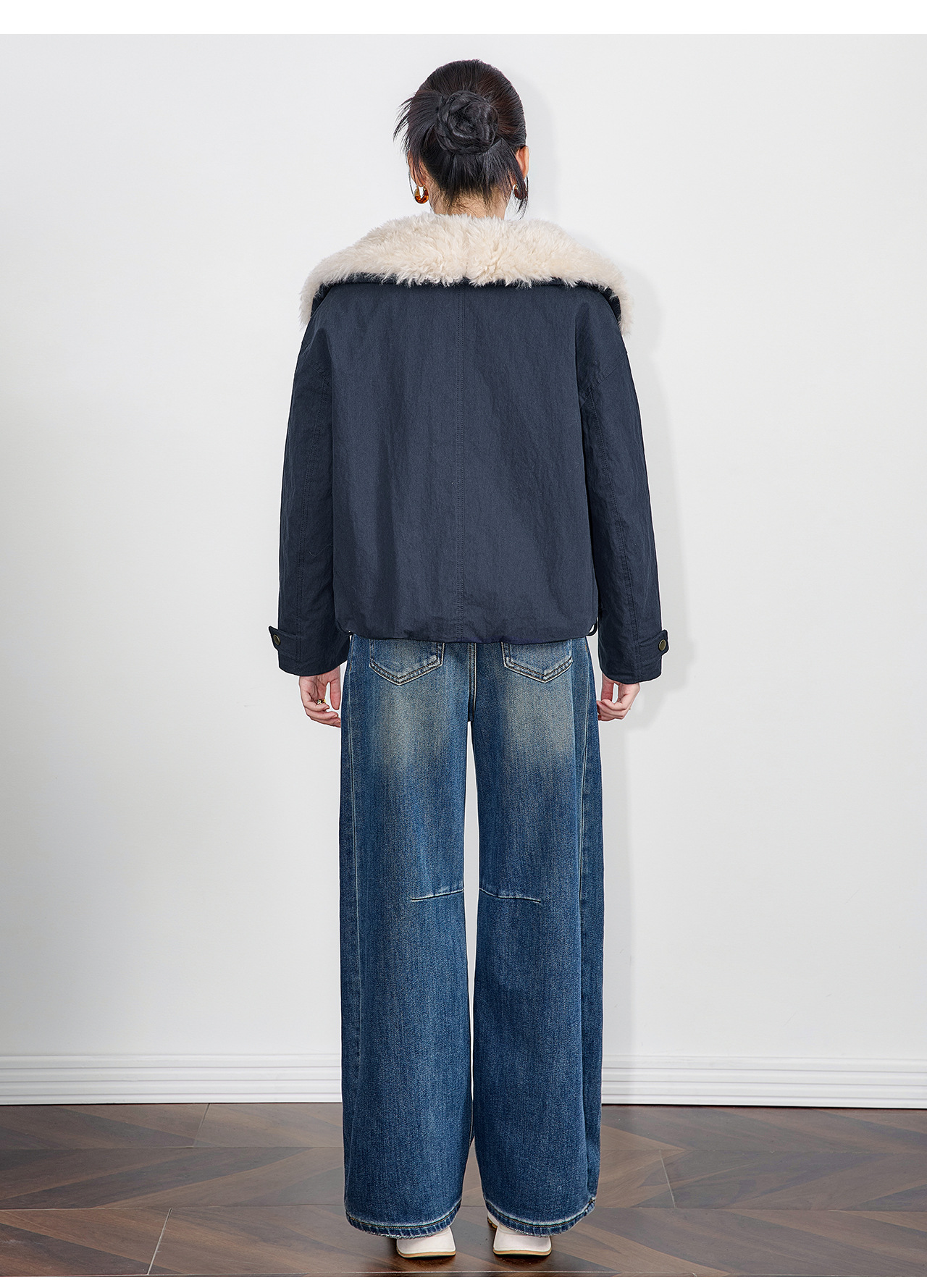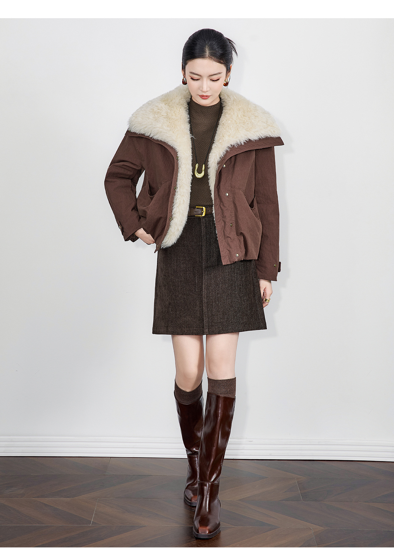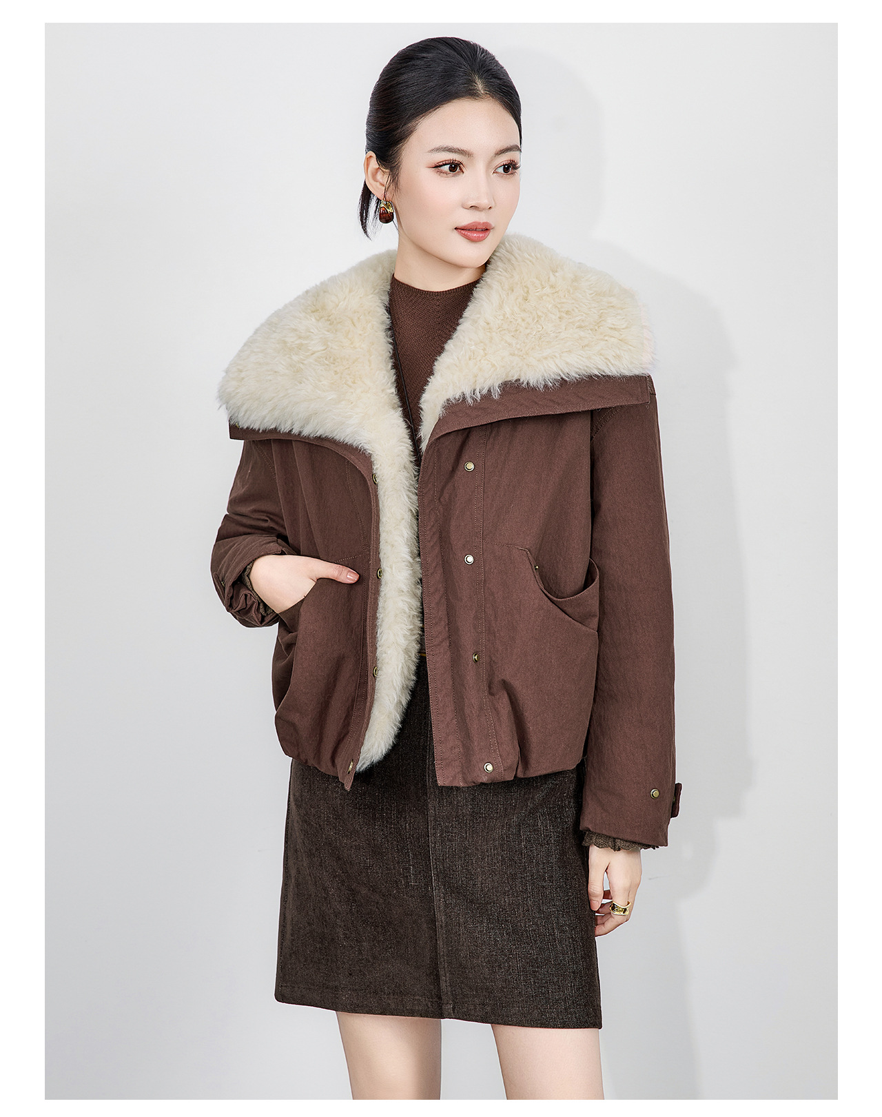 「高货wl」全新升级【铂金会员441/天猫589/差价148】(10037)洛诗琳复古毛翻领拼接羽绒服2025秋冬短款保暖加厚外套